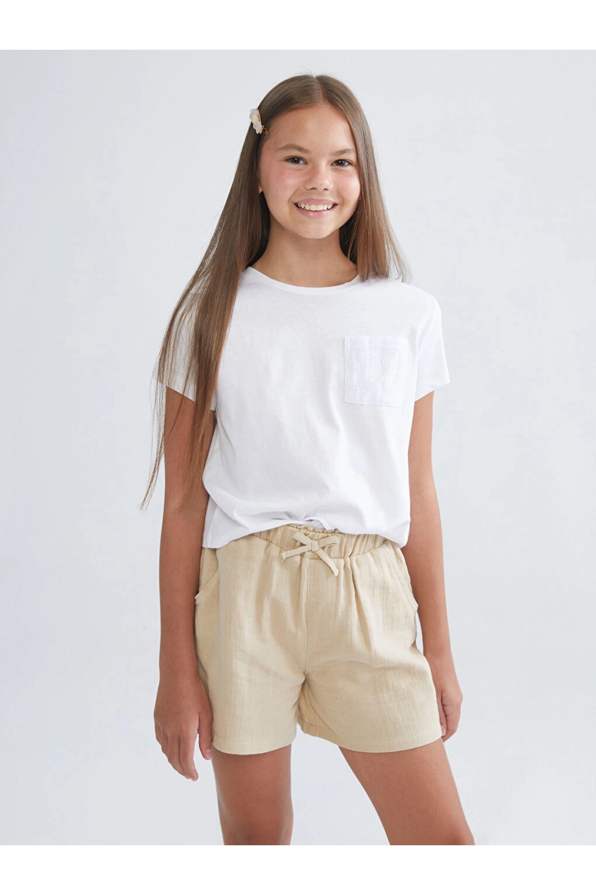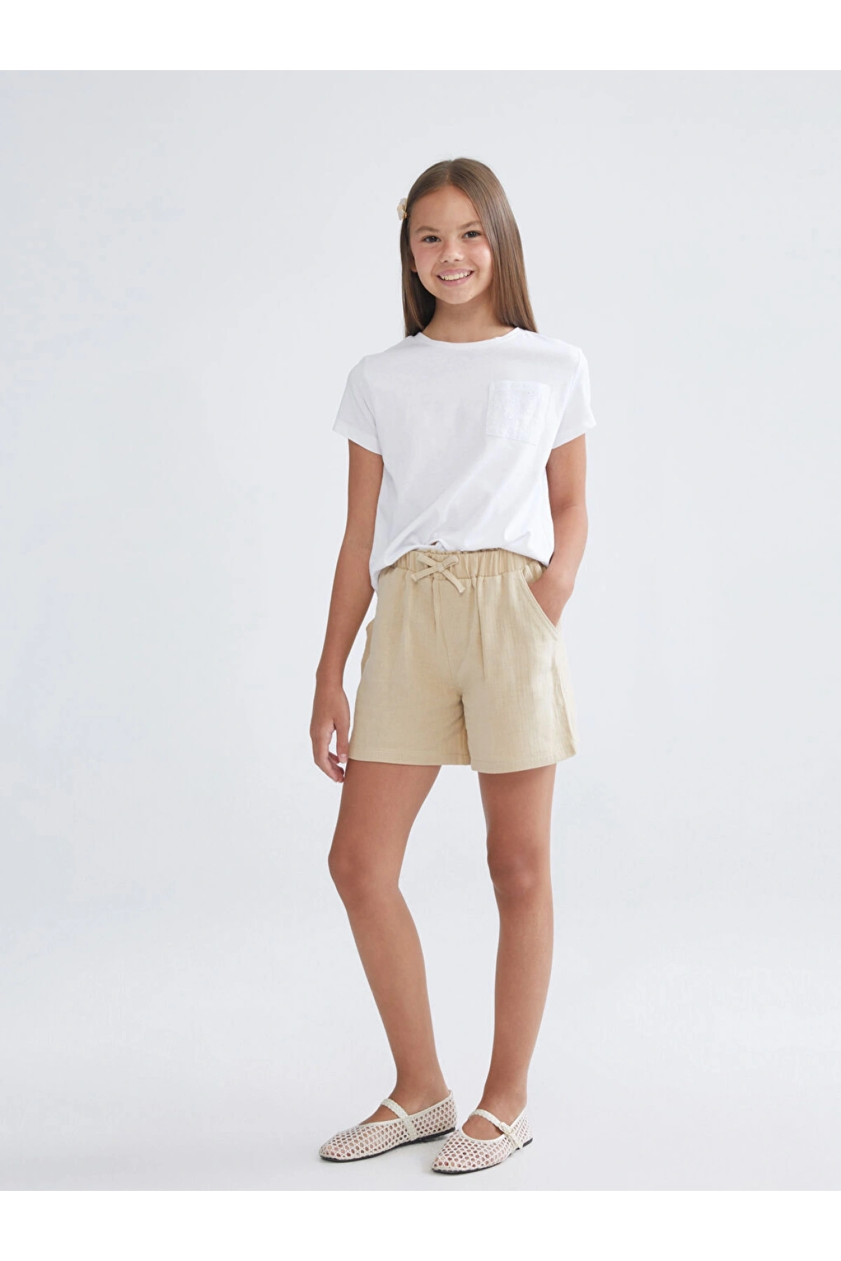 Beli Lastikli Müslin Kız Çocuk Şort