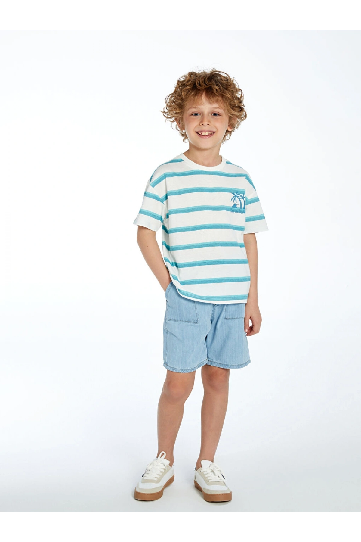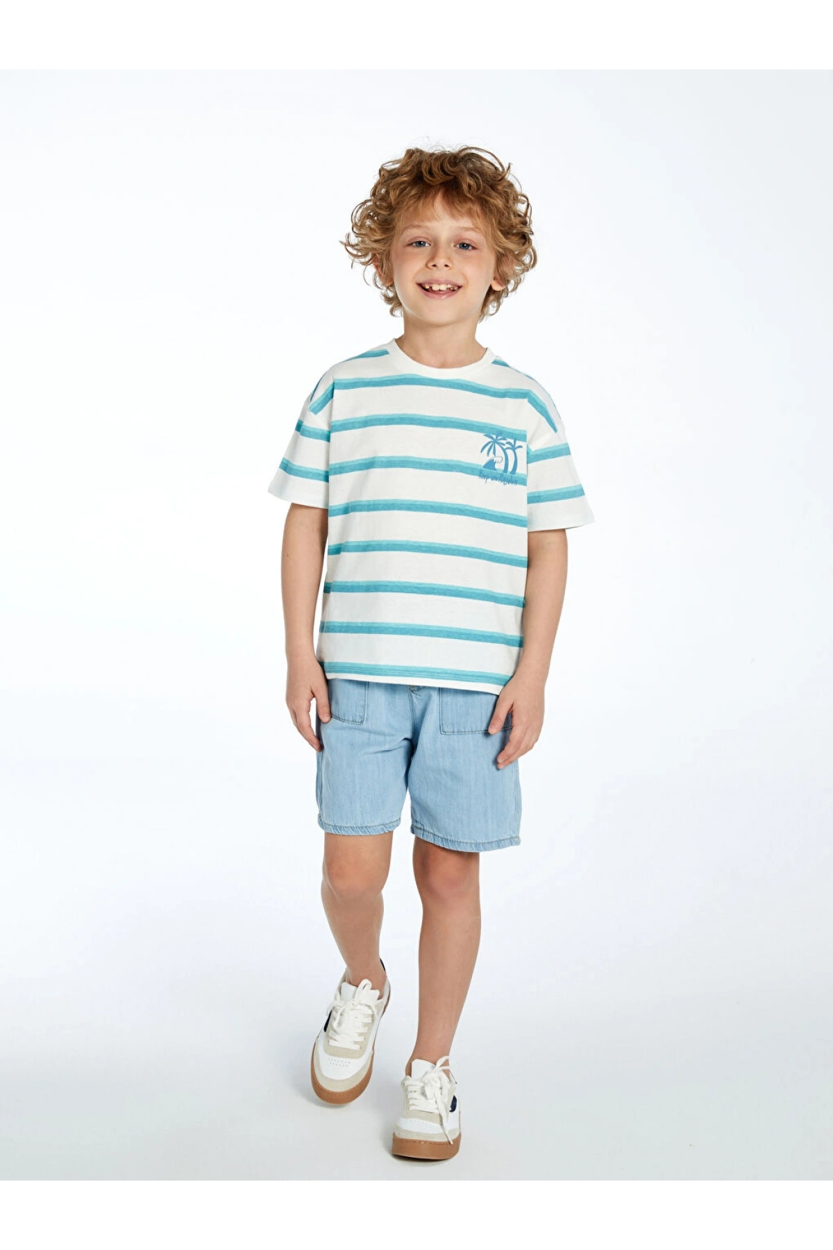 Beli Lastikli Çizgili Erkek Çocuk Şort