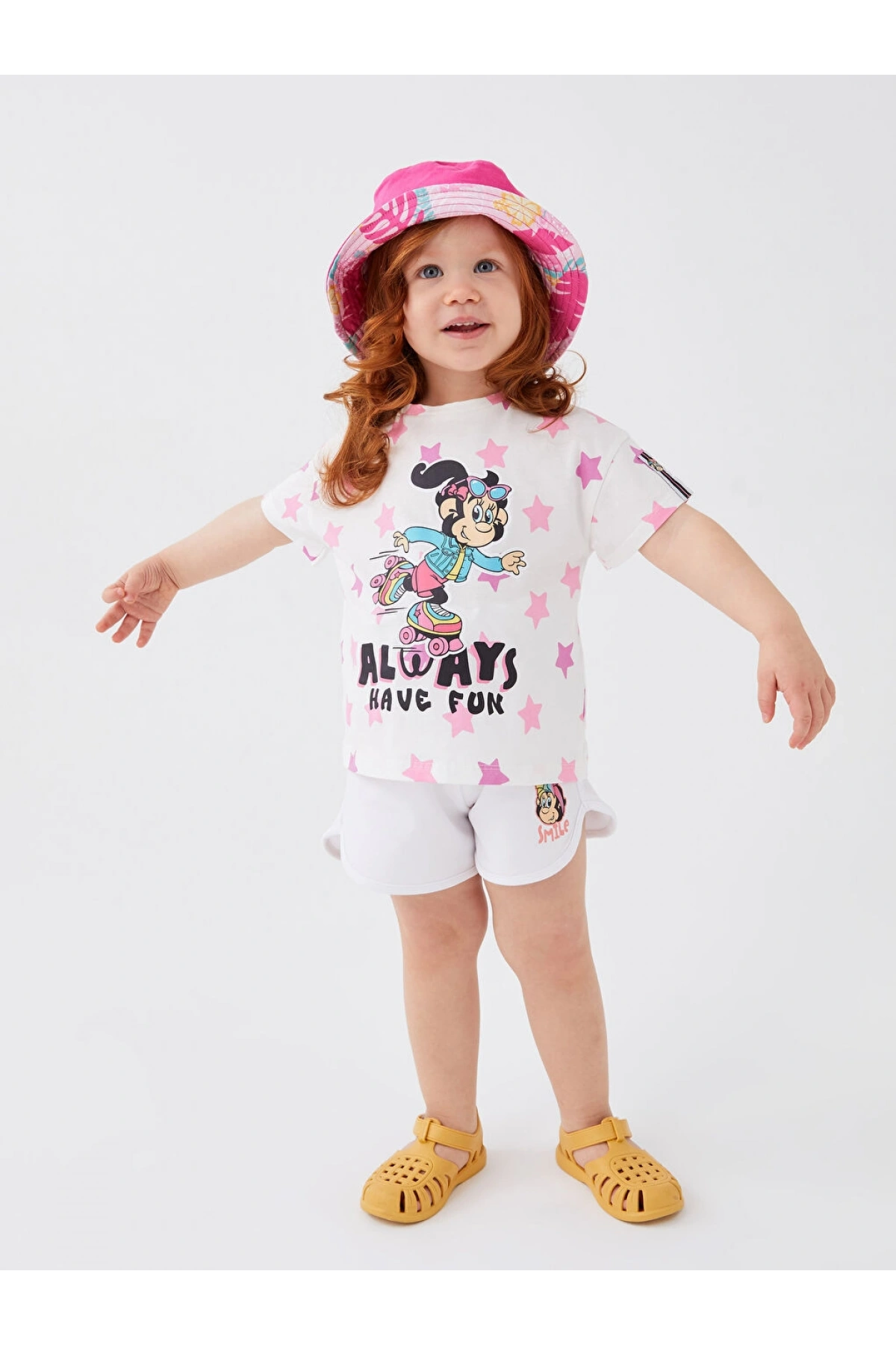 Nostaljik Maymun Baskılı Kız Bebek Şort