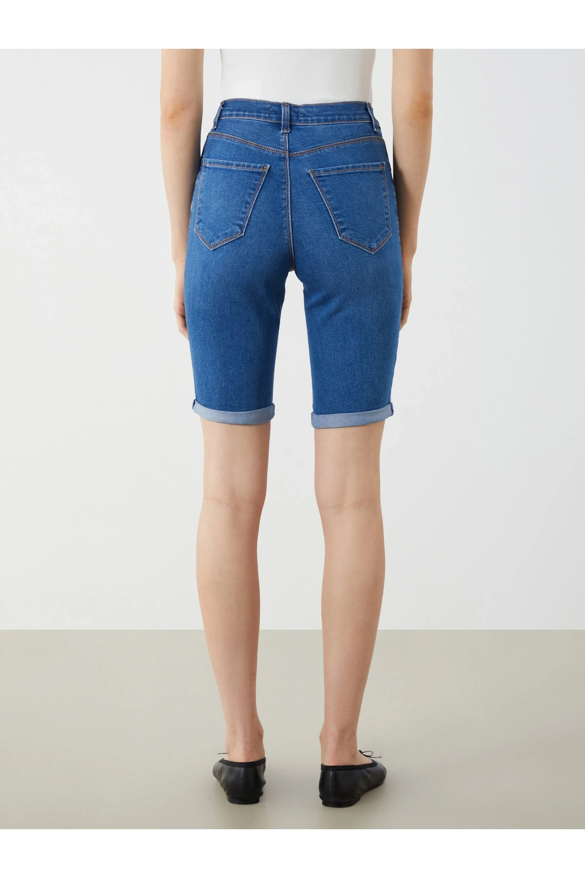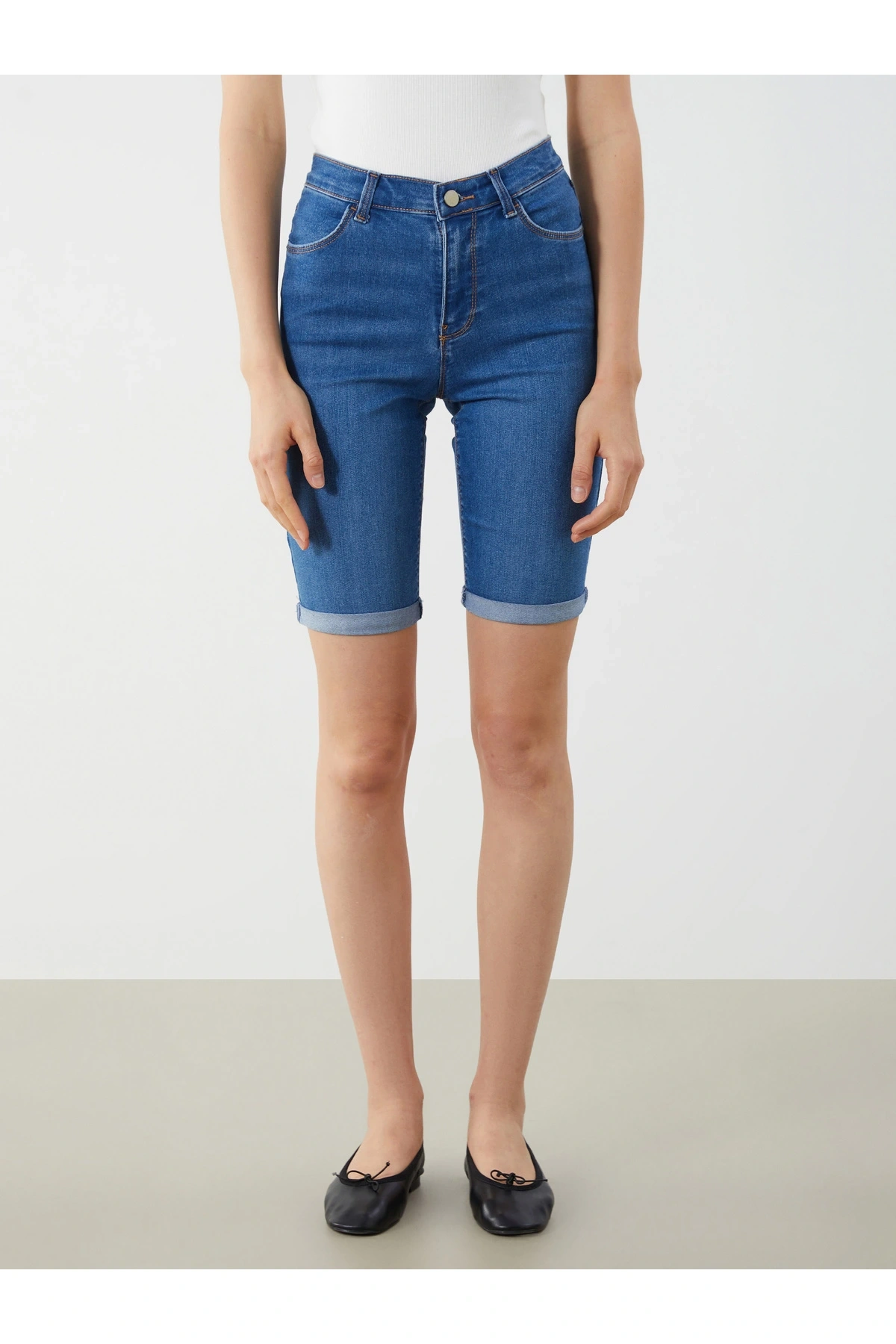 LCW Grace Mavi Beli Lastikli Kadın Jean Kapri