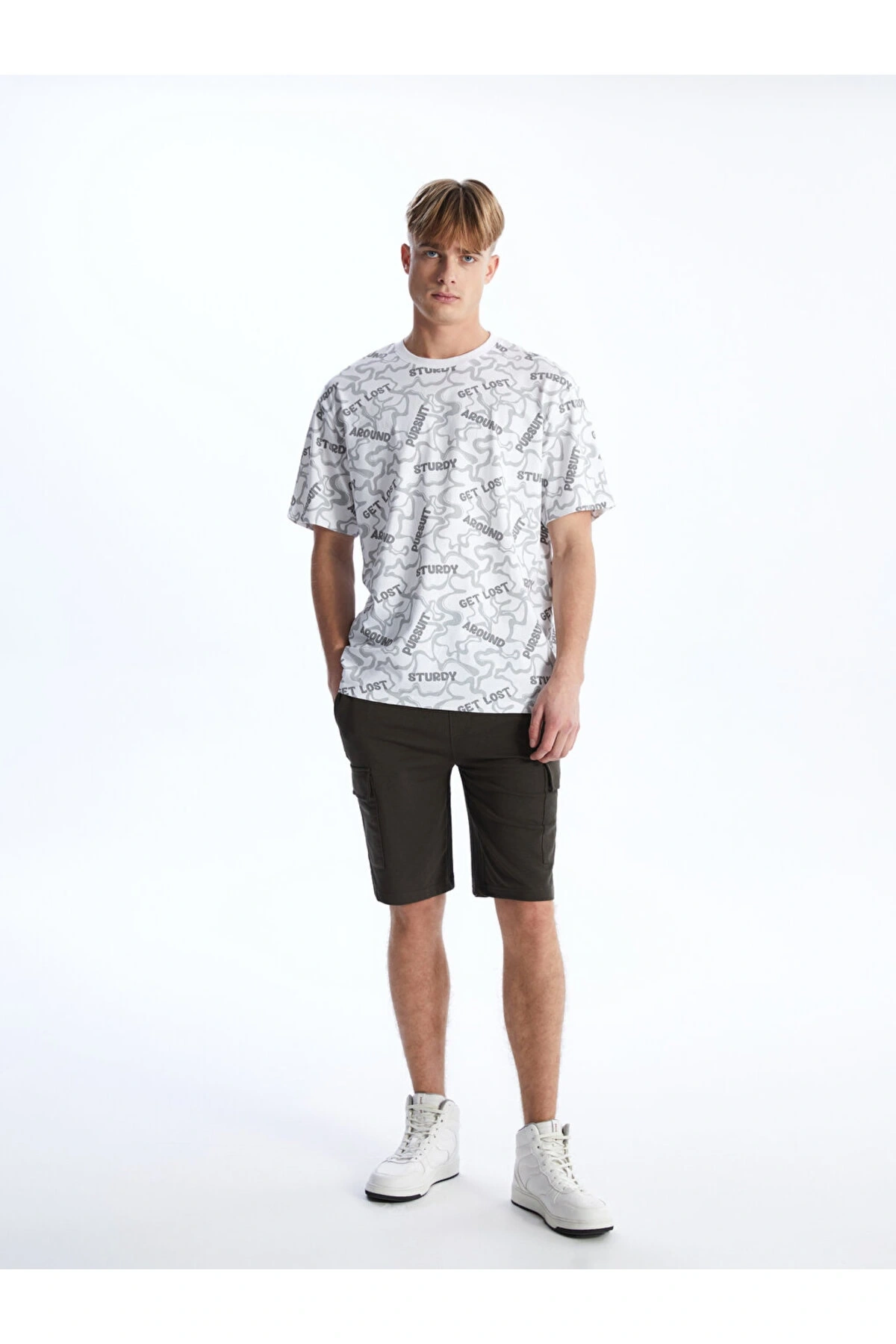 Oversize Spor Şort Slogan Baskılı Beli Bağcıklı Cepli Çelikli İnterlok Kumaş