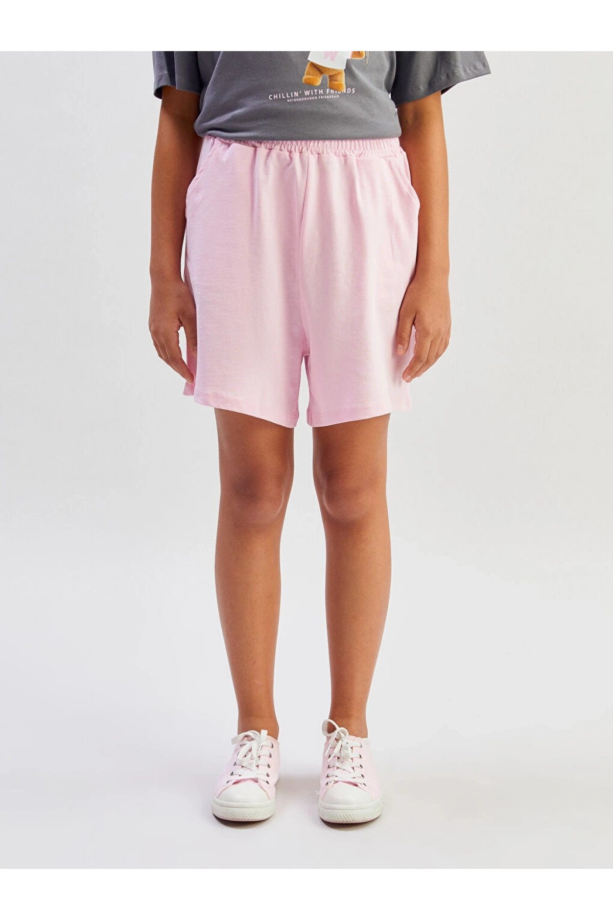 LCW Kids Fuşya Beli Lastikli Basic Kız Çocuk Şort