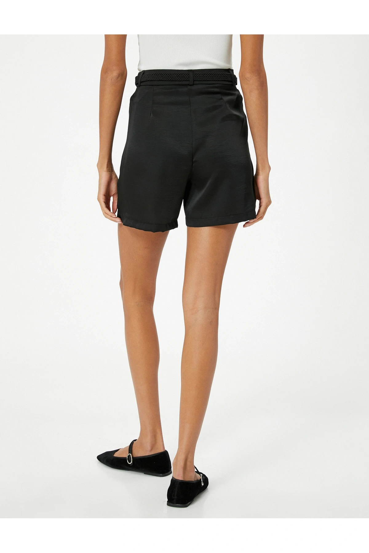 Mini Şort Kemerli Cep Detaylı Normal Bel