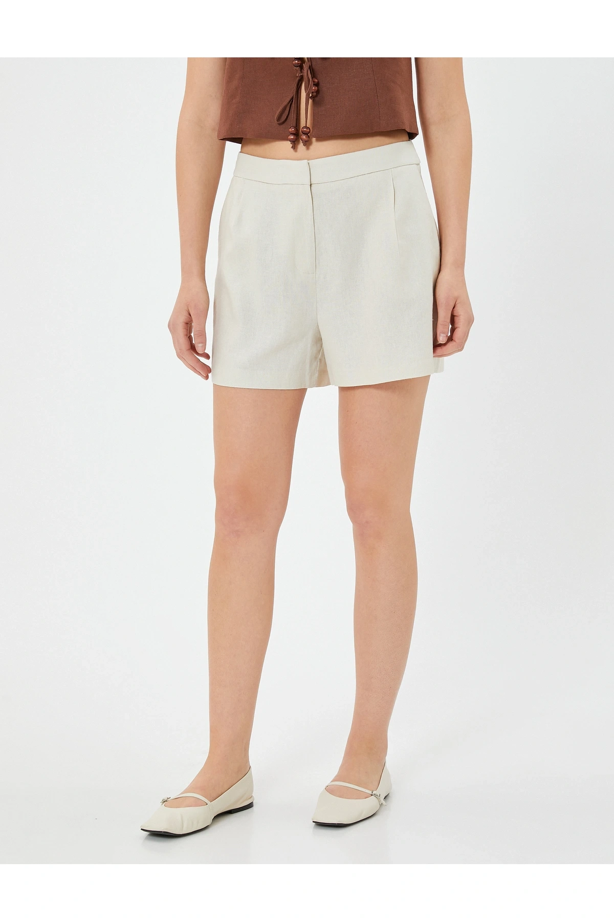Keten Şort Cepli Standart Bel Bol Kalıp