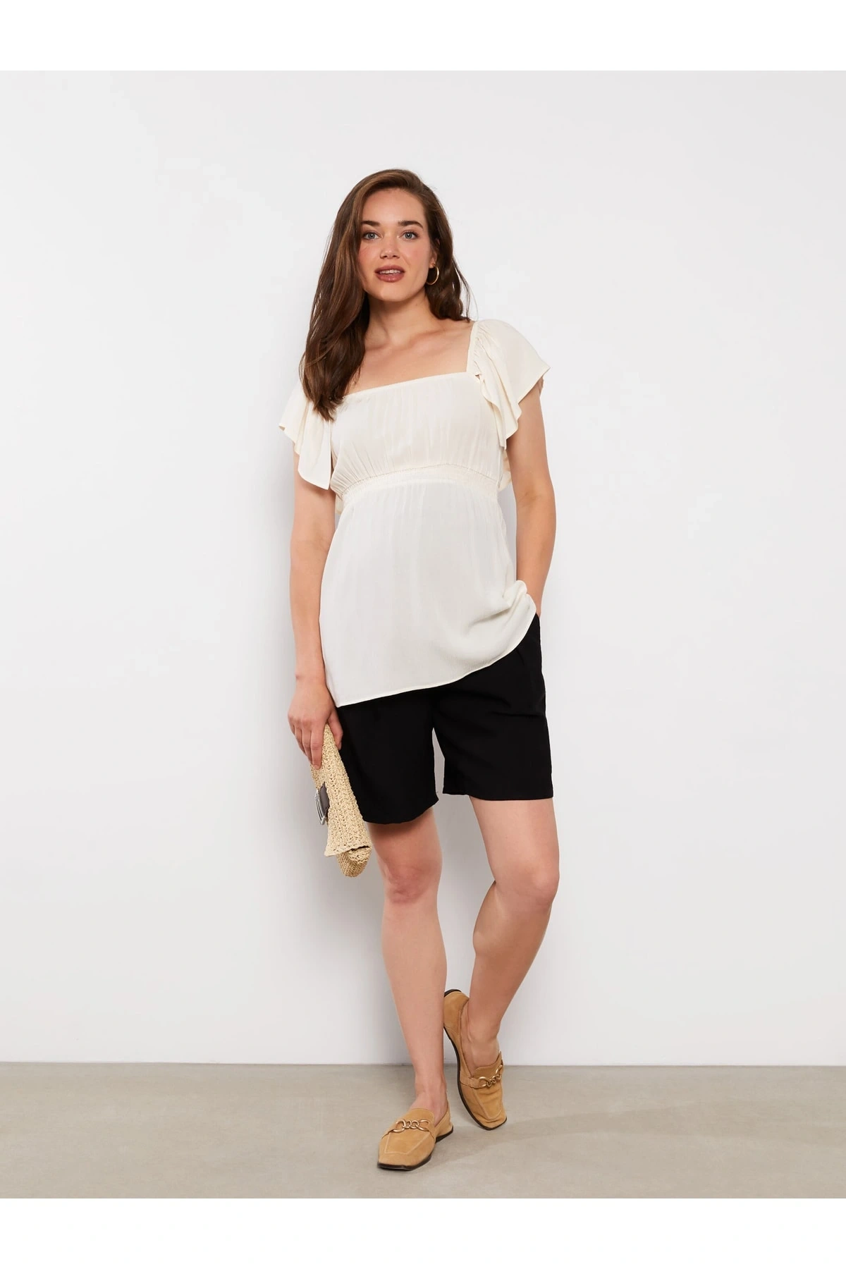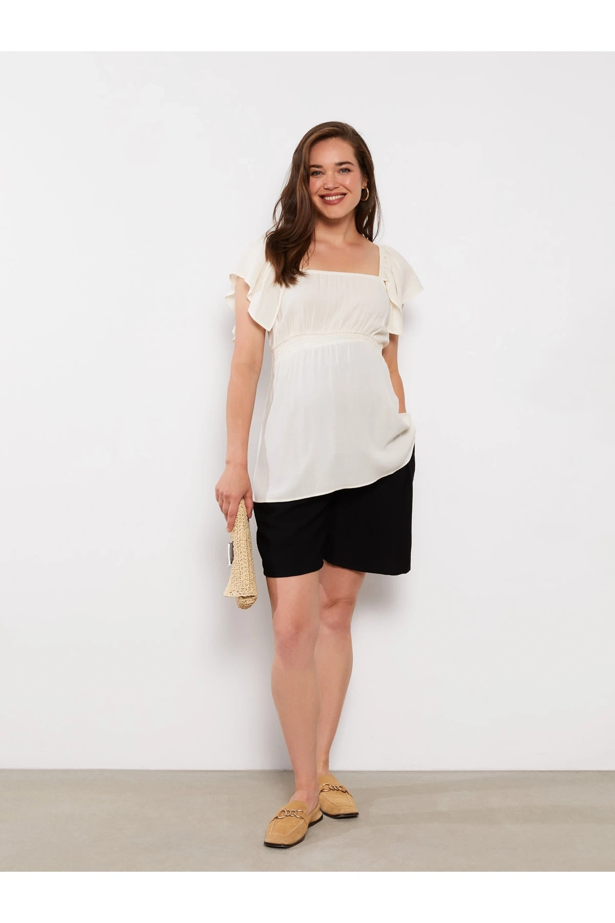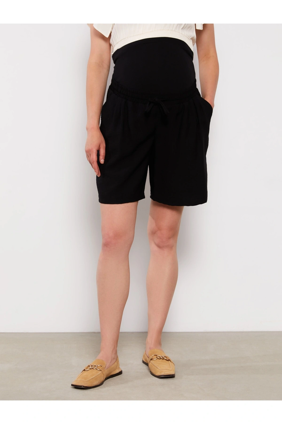 Beli Lastikli Karın Panelli Düz Hamile Şort