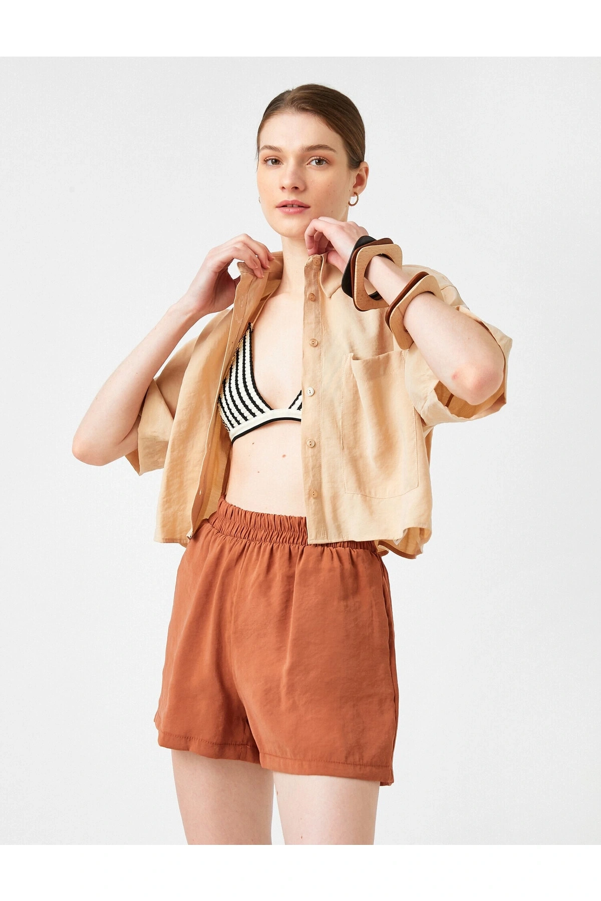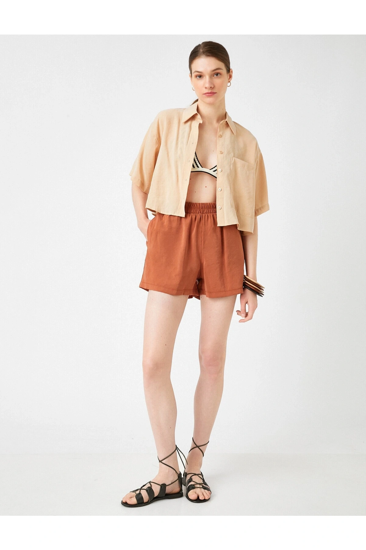 Beli Lastikli Düz Cep Detaylı Kadın Şort