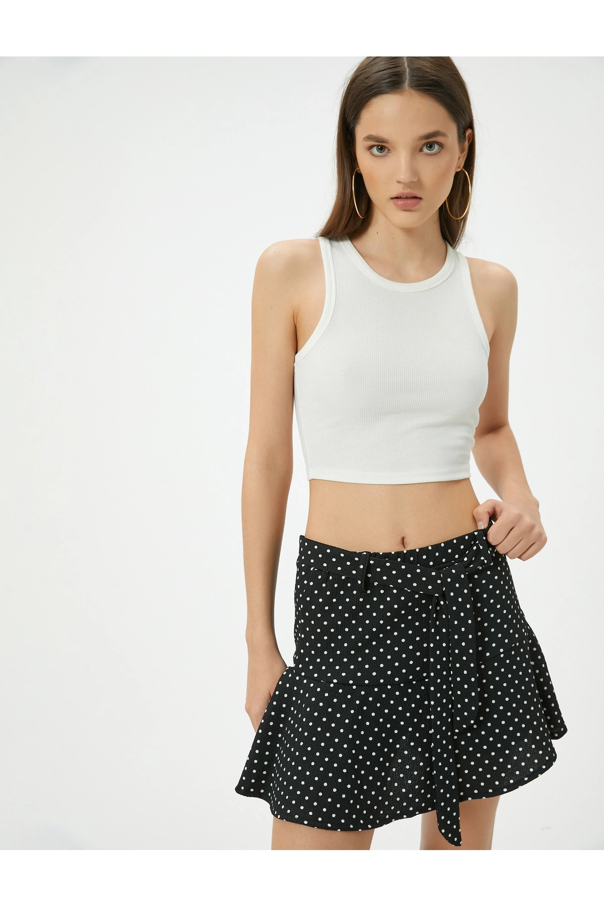 Puantiyeli Mini Şort Etek Kemer Detaylı Rahat Kalıp Bürümcük