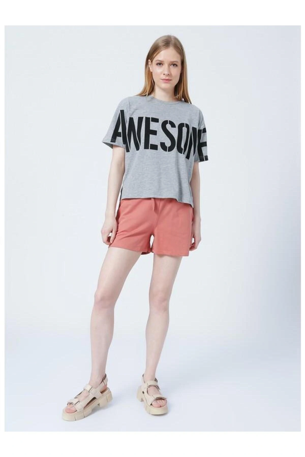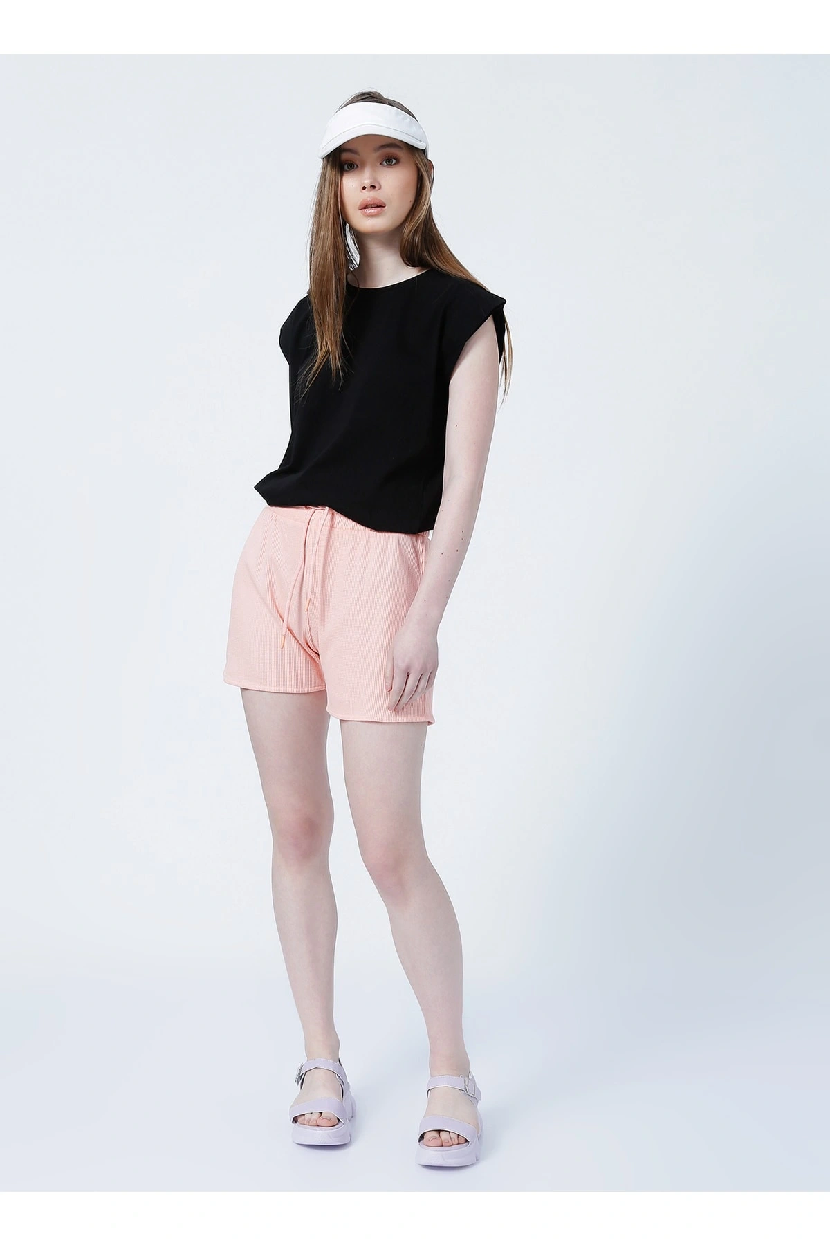 22y0657k1 Lastikli Rahat Petek Desenli Mercan Kadın Şort