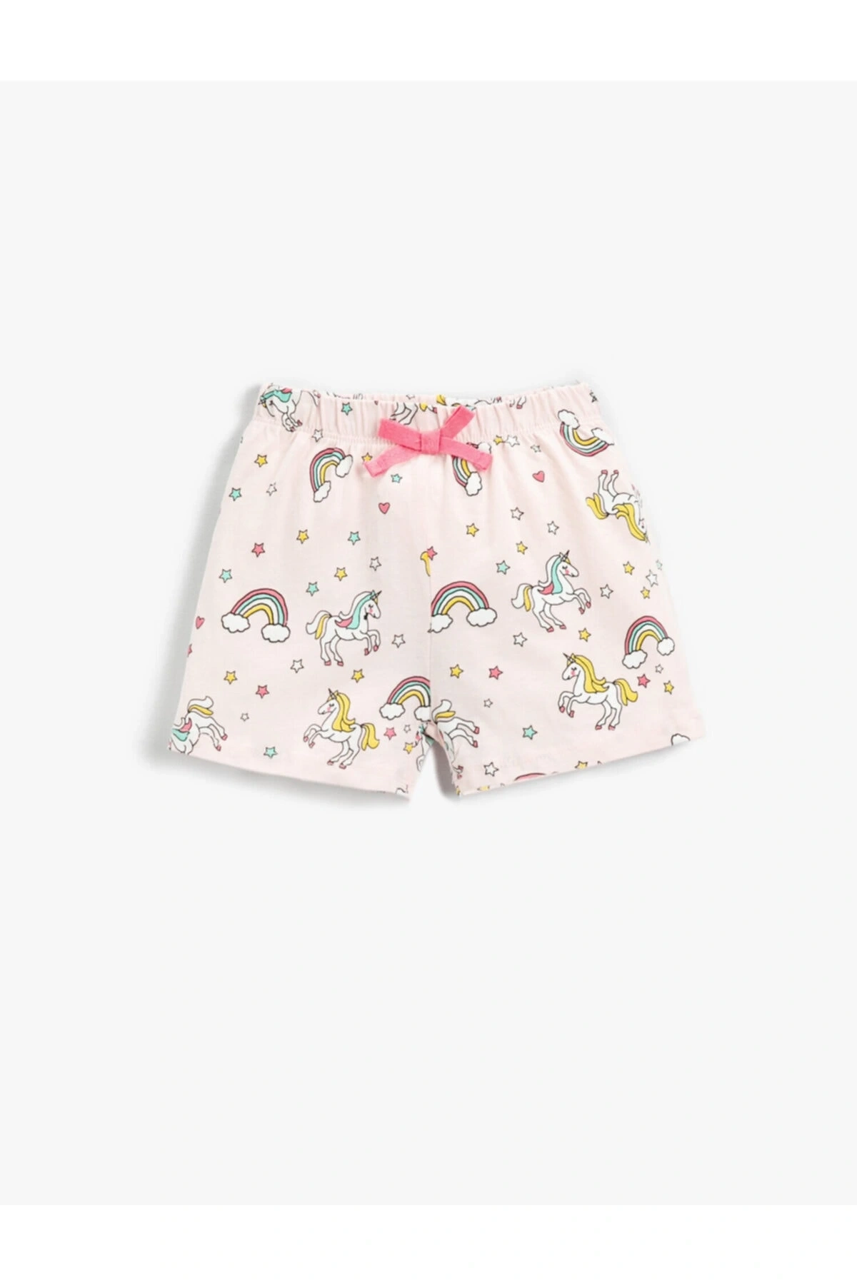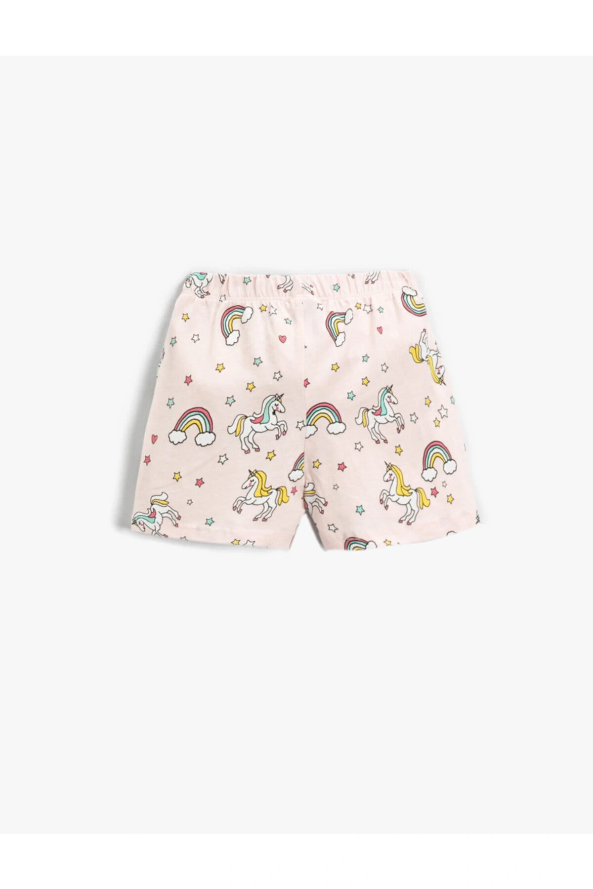 Kız Çocuk Unicorn Baskılı Beli Lastikli Şort Pamuklu
