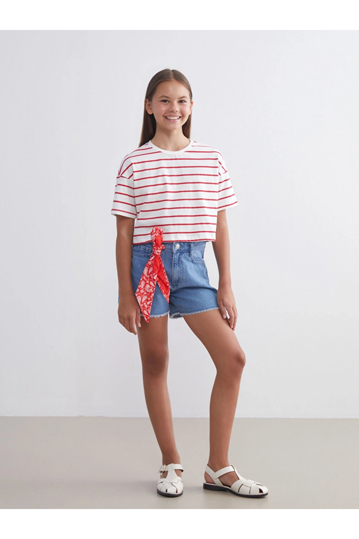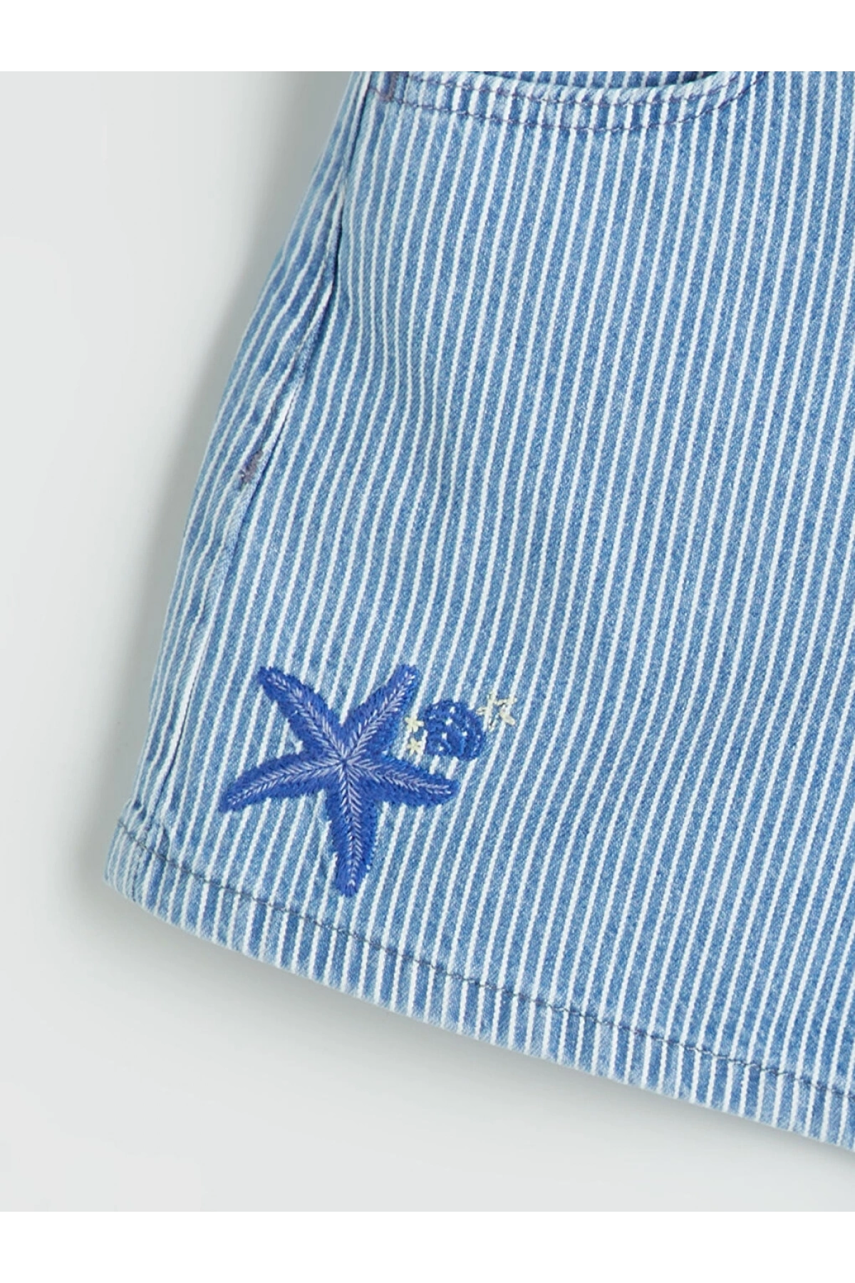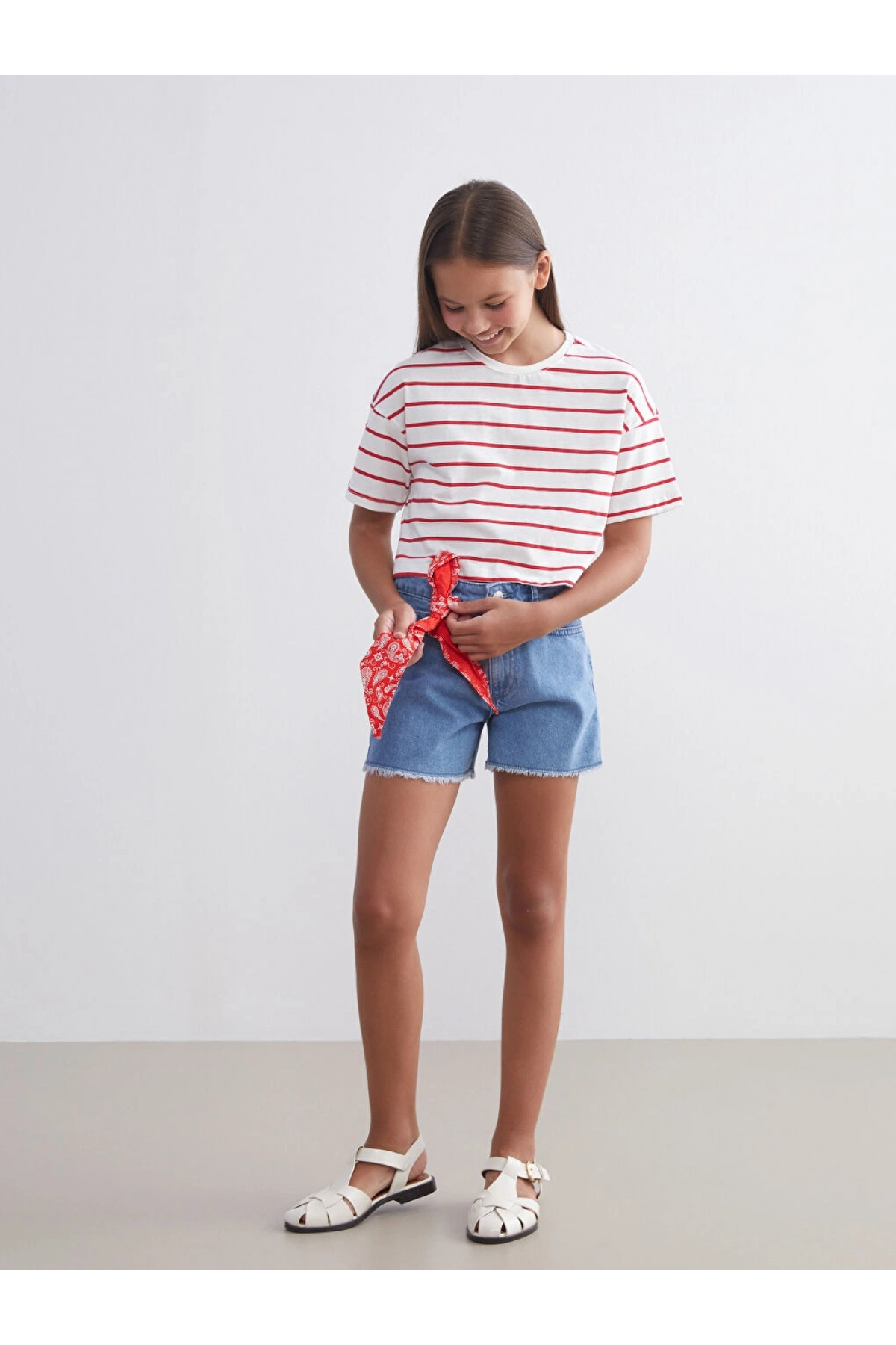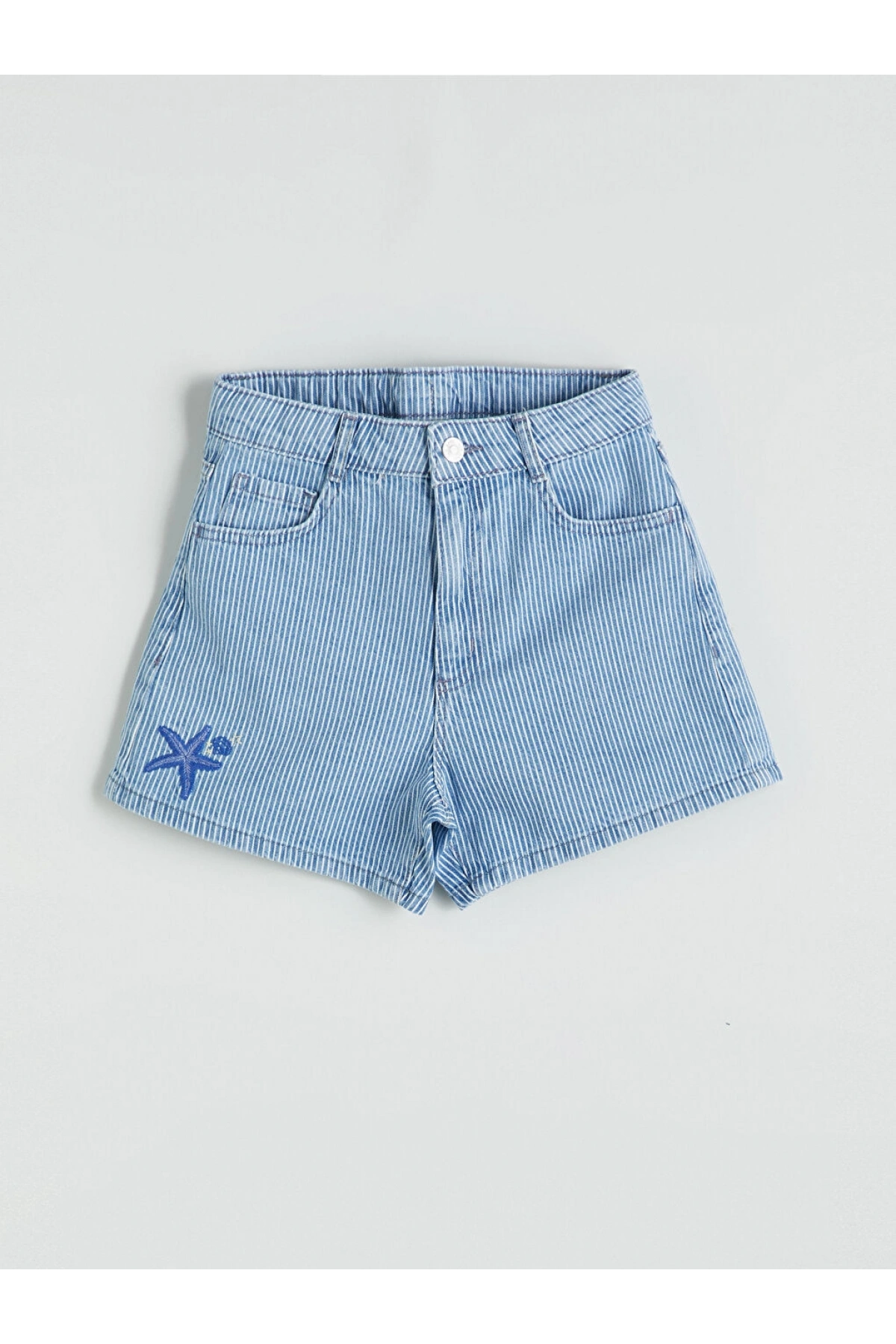 LCW Kids Indigo Çizgili Kız Çocuk Jean Şort