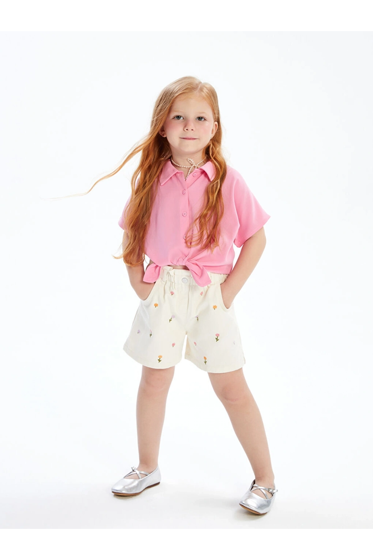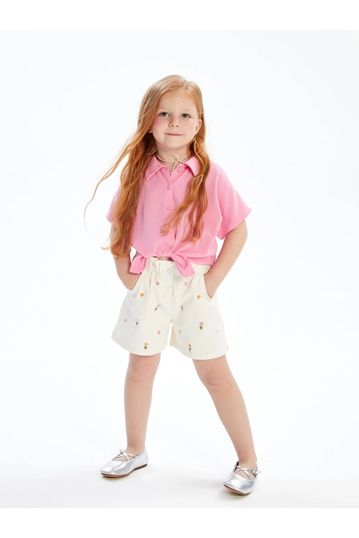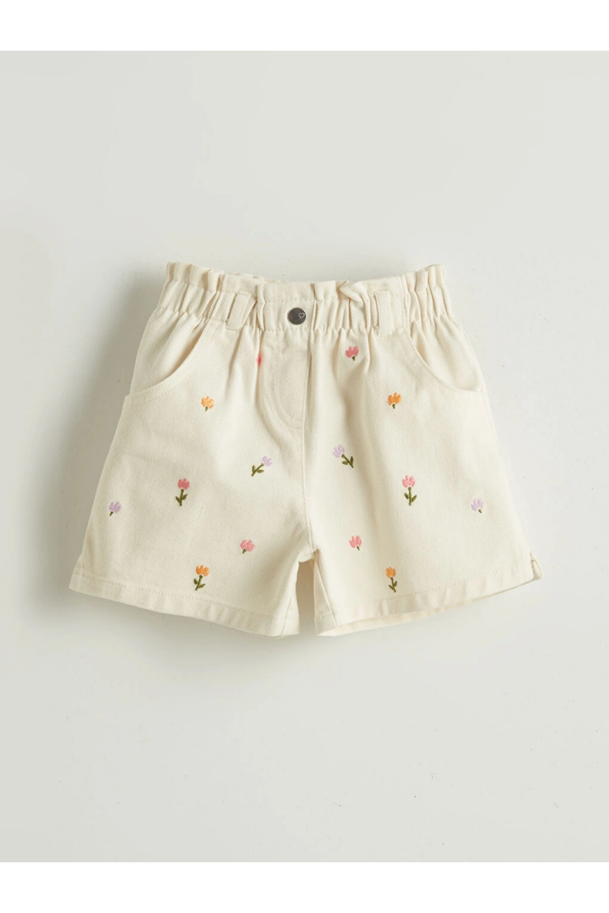 LCW Kids Ekru Çiçekli Gabardin Kız Çocuk Şort