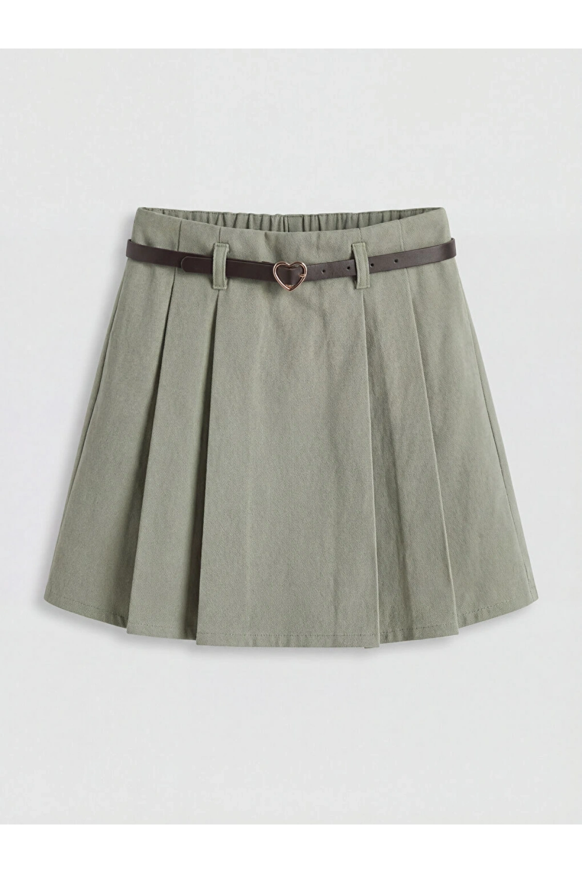 LCW Kids Haki Pileli Kız Çocuk Şort Etek