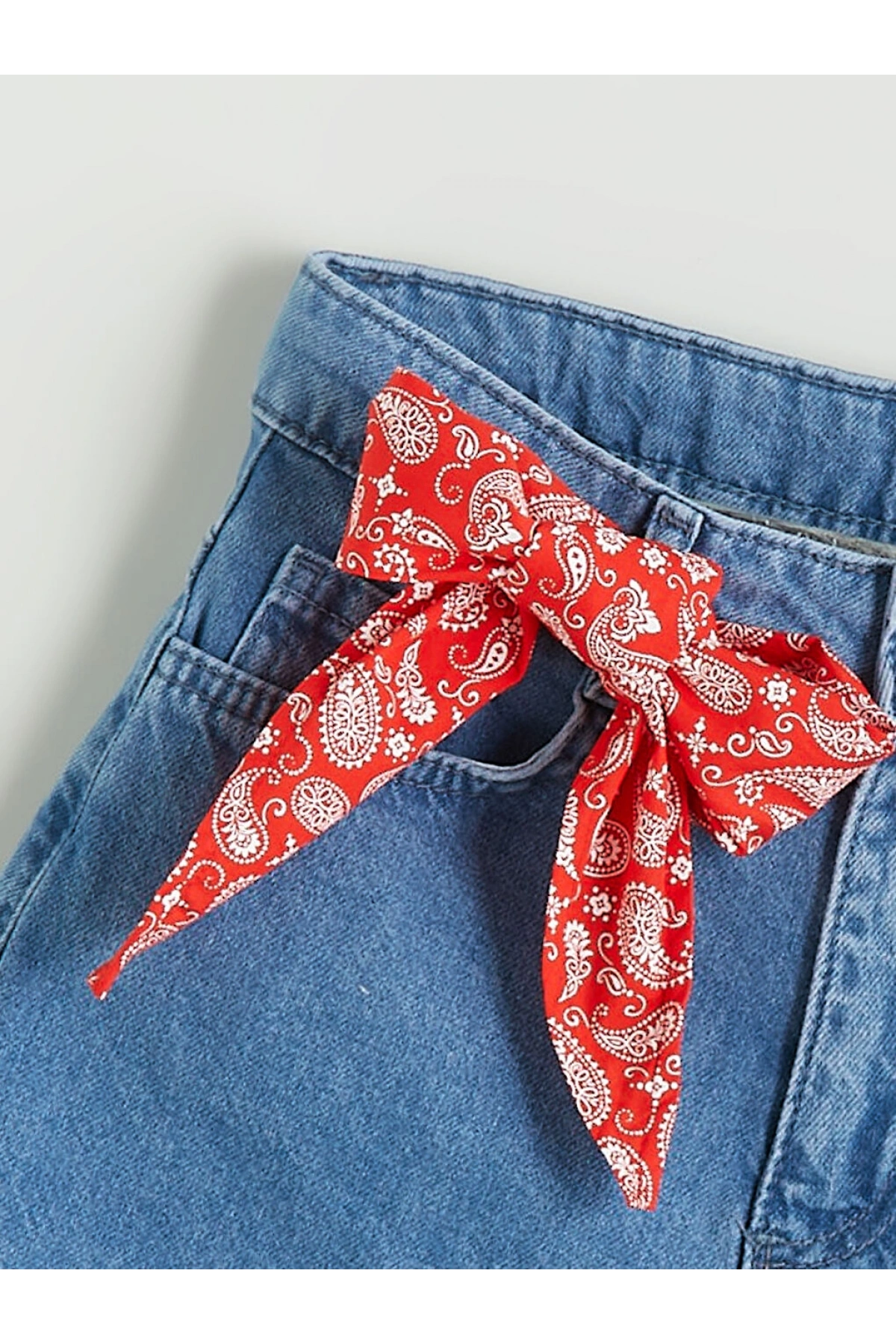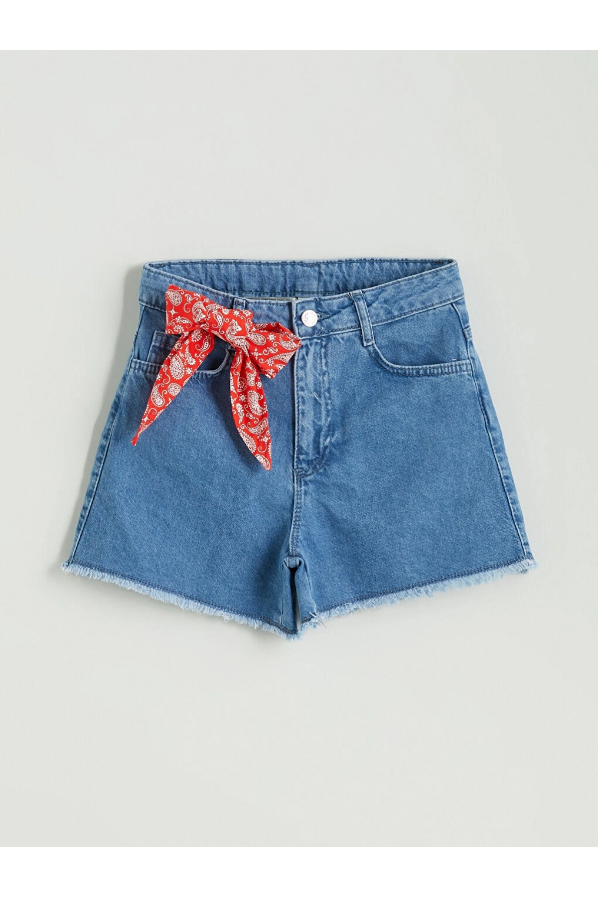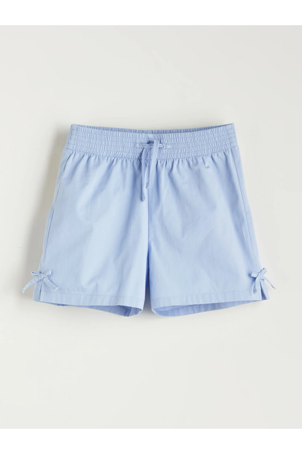 LCW Kids Mavi Beli Lastikli Fiyonk Detaylı Kız Çocuk Şort