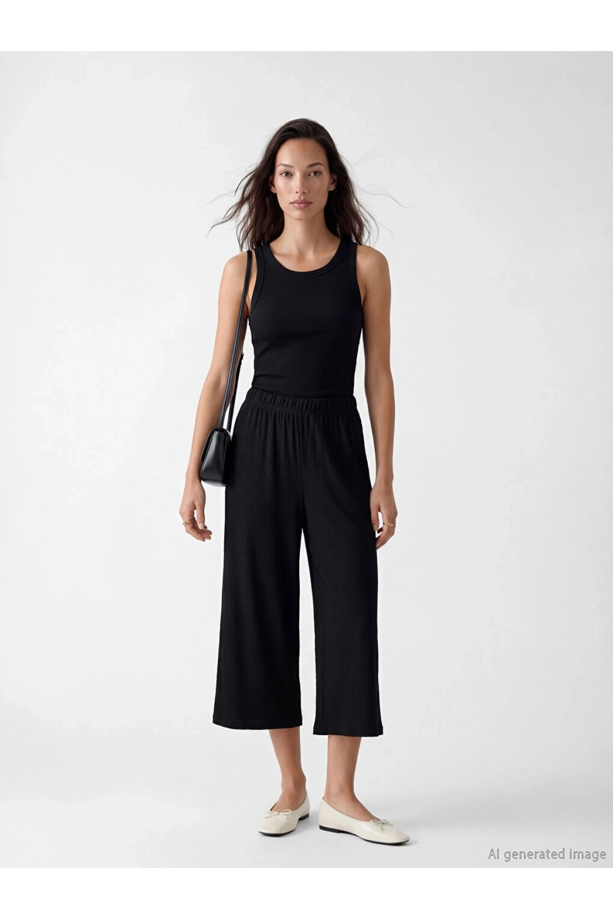 LC WAIKIKI Siyah Beli Lastikli Dokulu Kadın Kapri