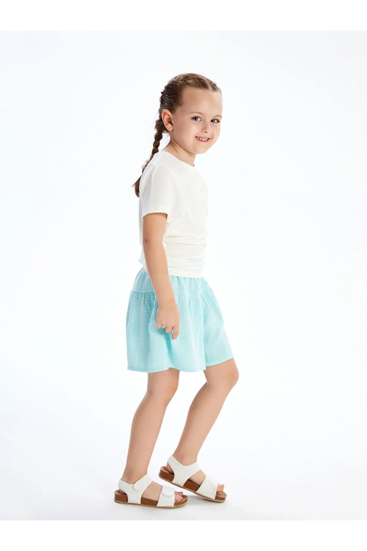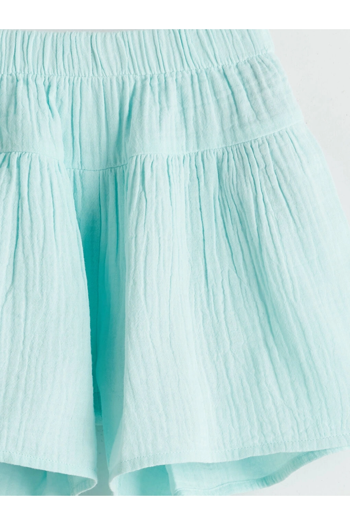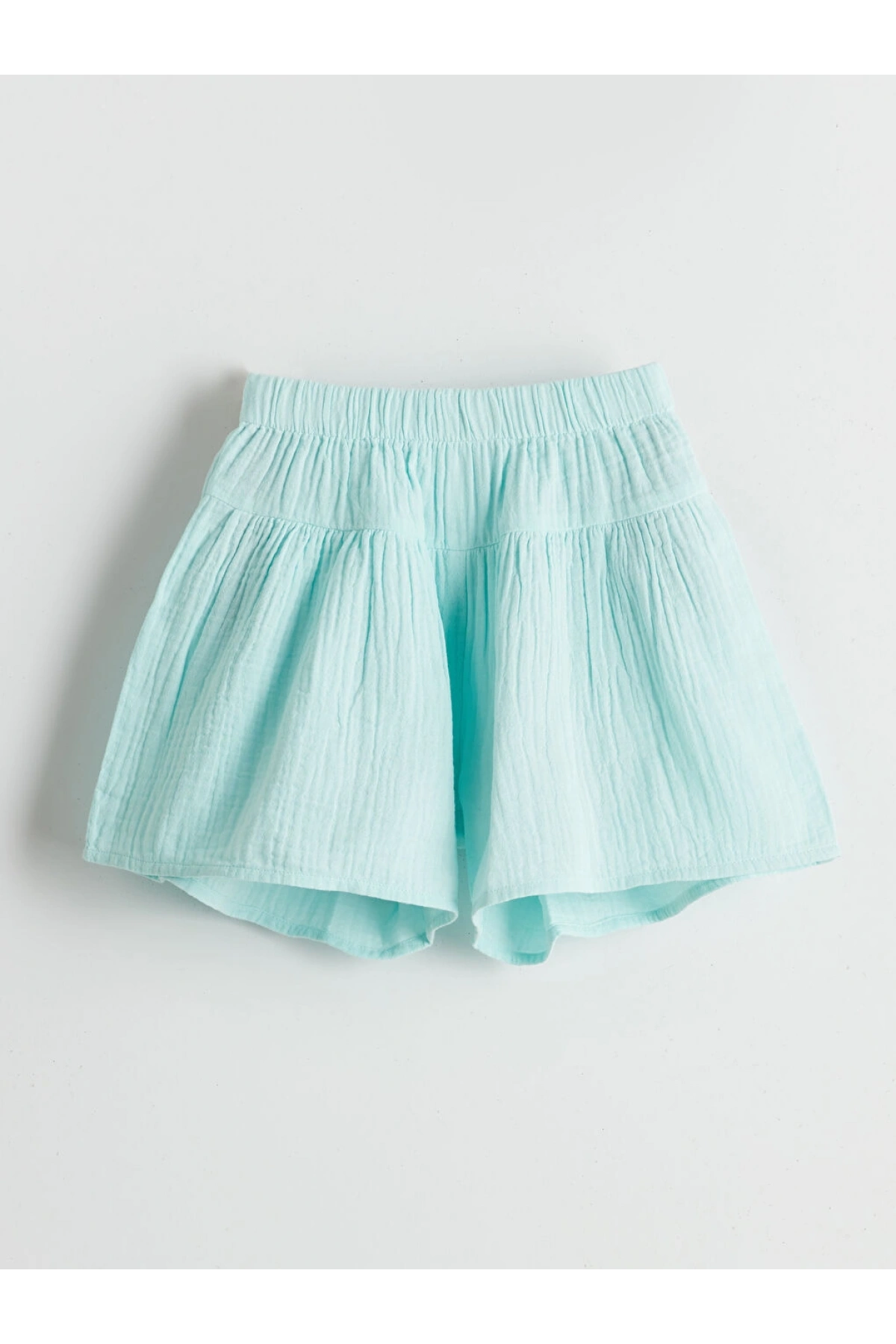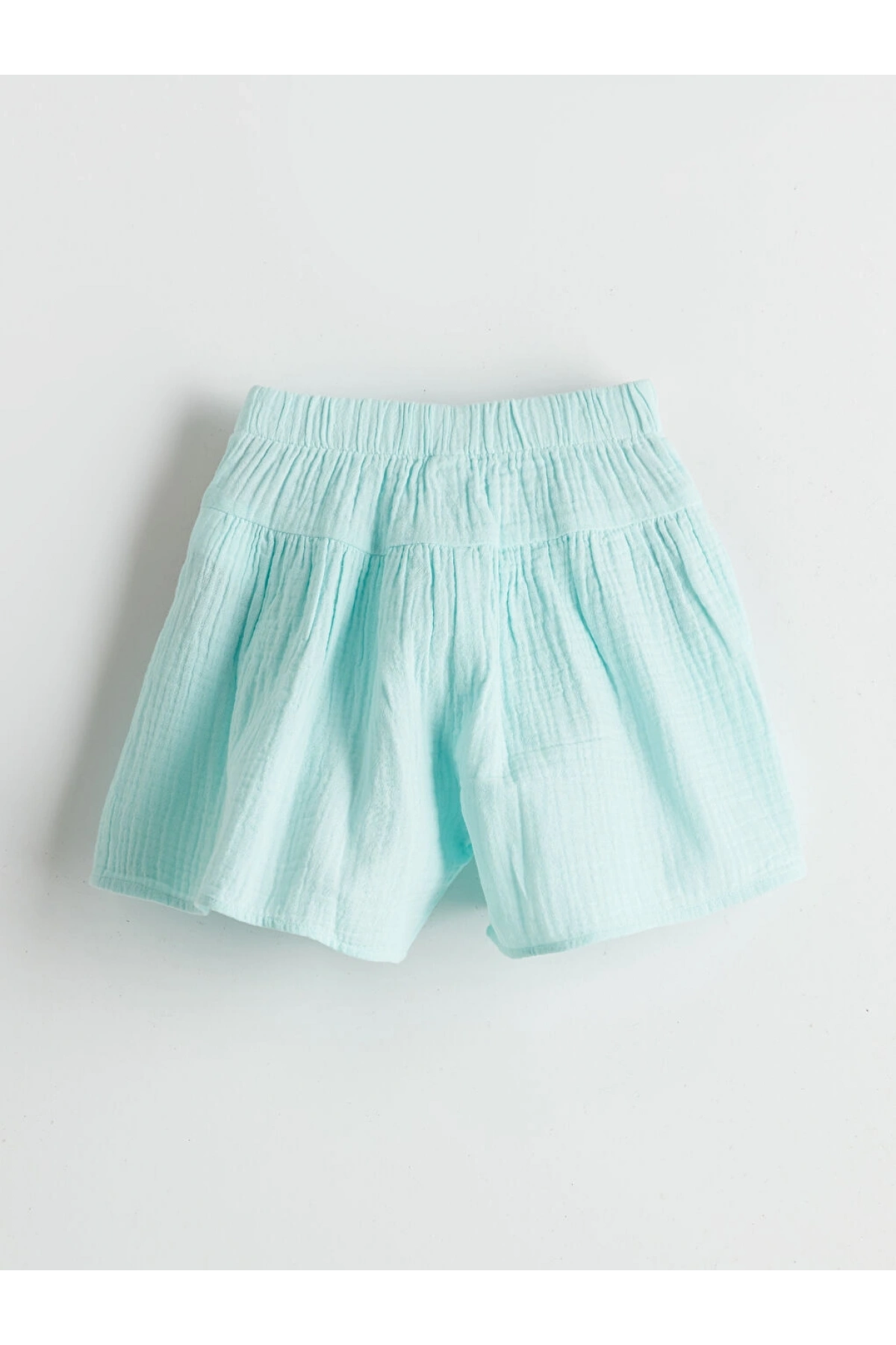 LCW Kids Turkuaz Beli Lastikli Basic Müslin Kız Çocuk Şort