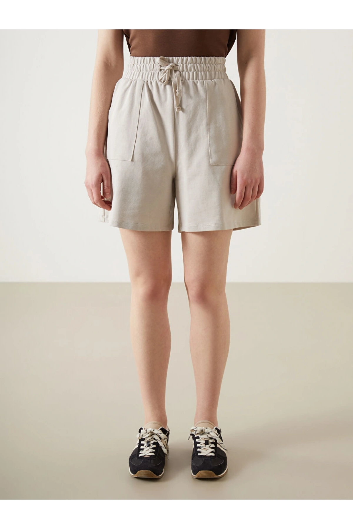 LCW Vision Ekru Beli Lastikli Kadın Şort