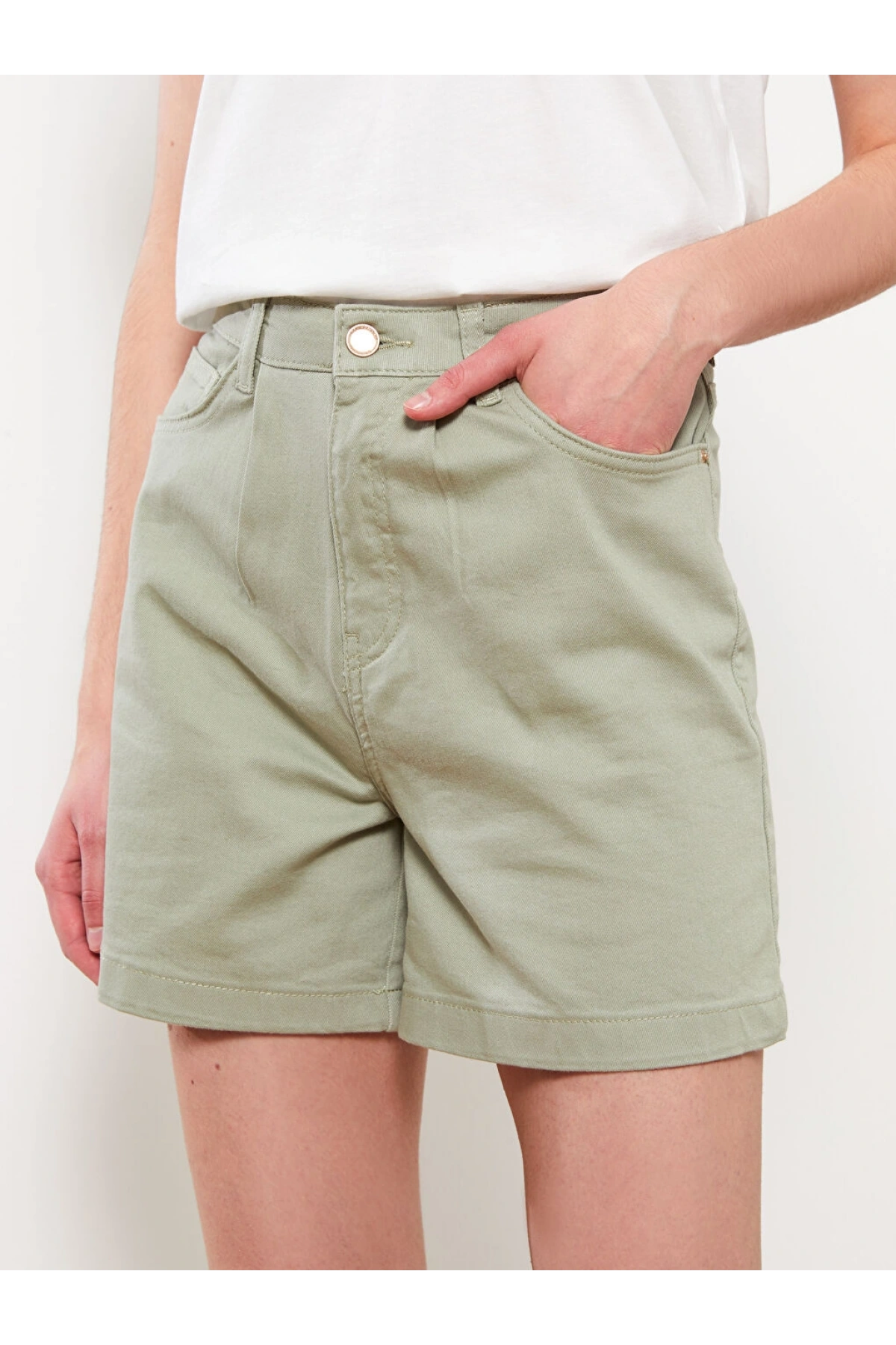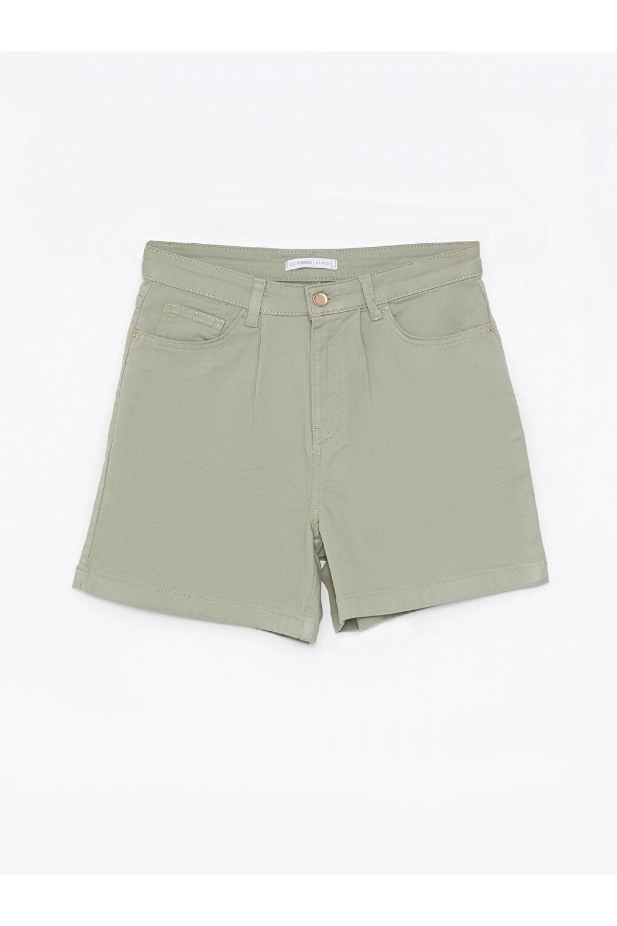 LCWAIKIKI Basic Yeşil Rahat Kalıp Düz Cep Detaylı Gabardin Kadın Şort
