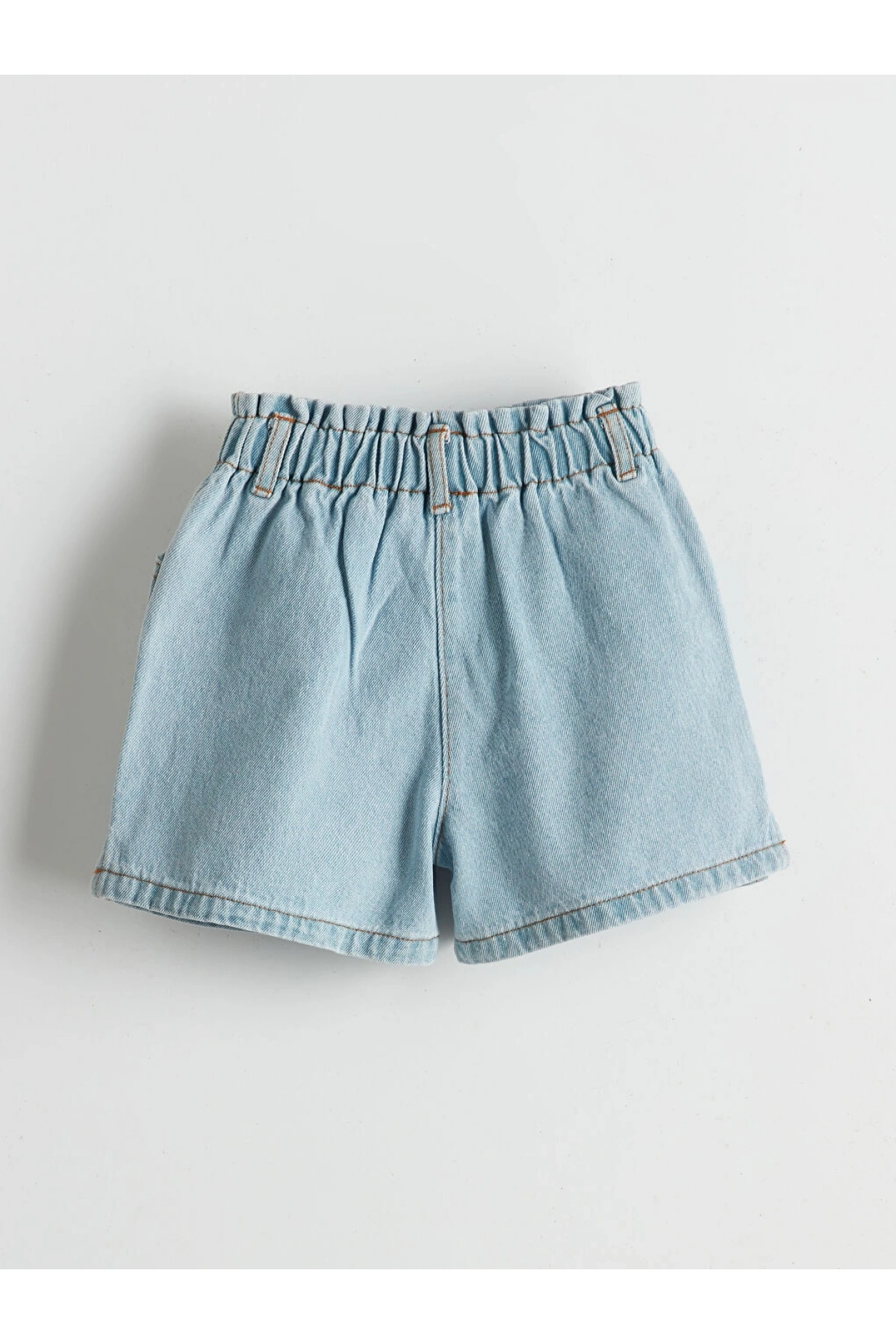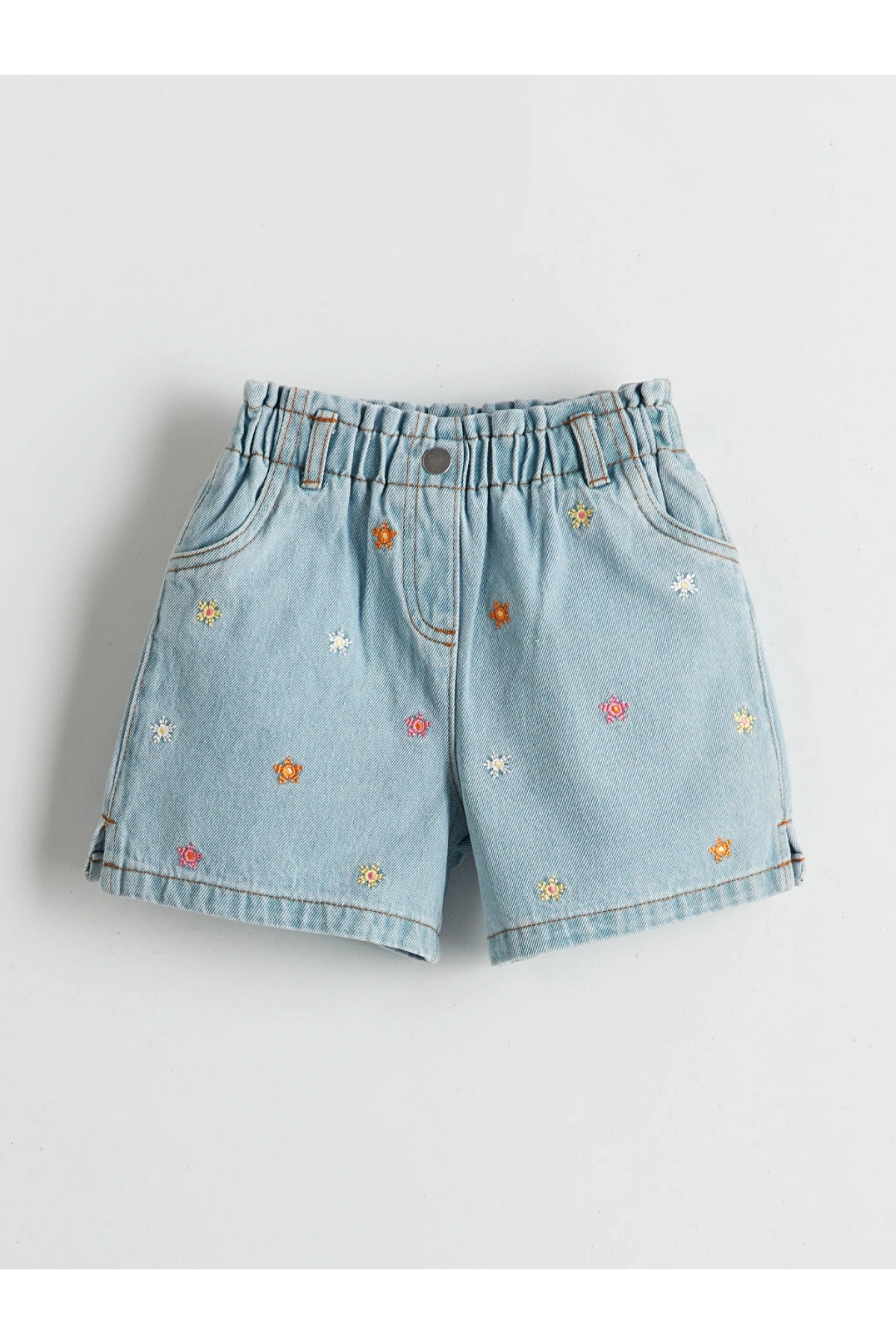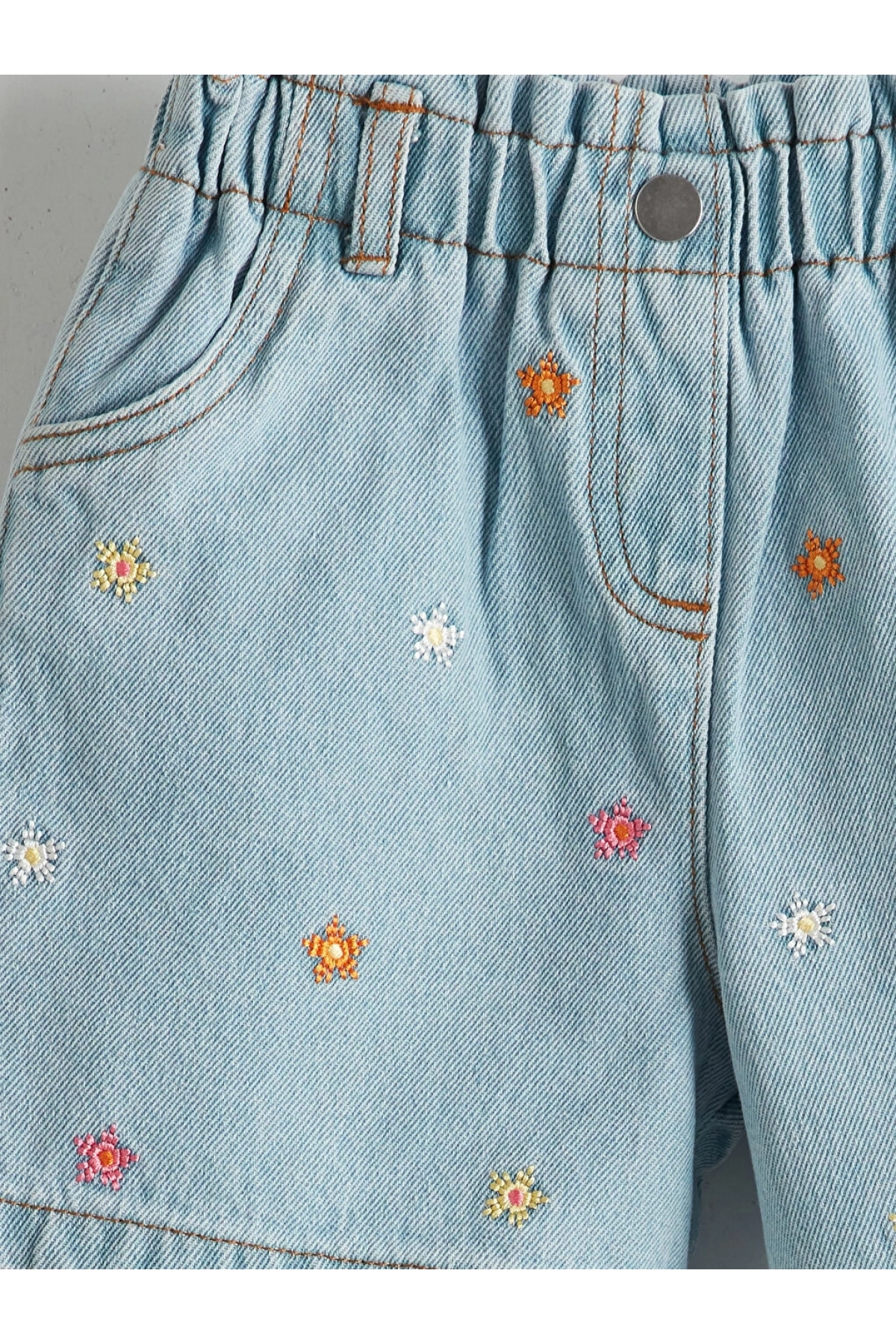 LC WAİKİKİ LCW Kids Mavi Beli Lastikli Nakışlı Kız Çocuk Jean Şort