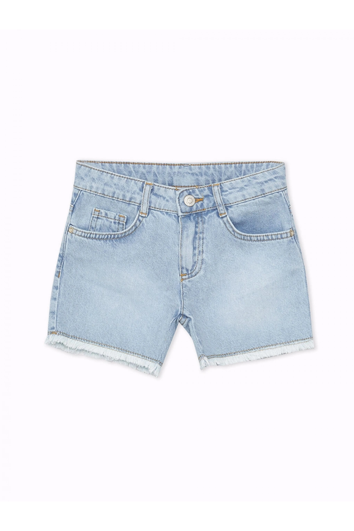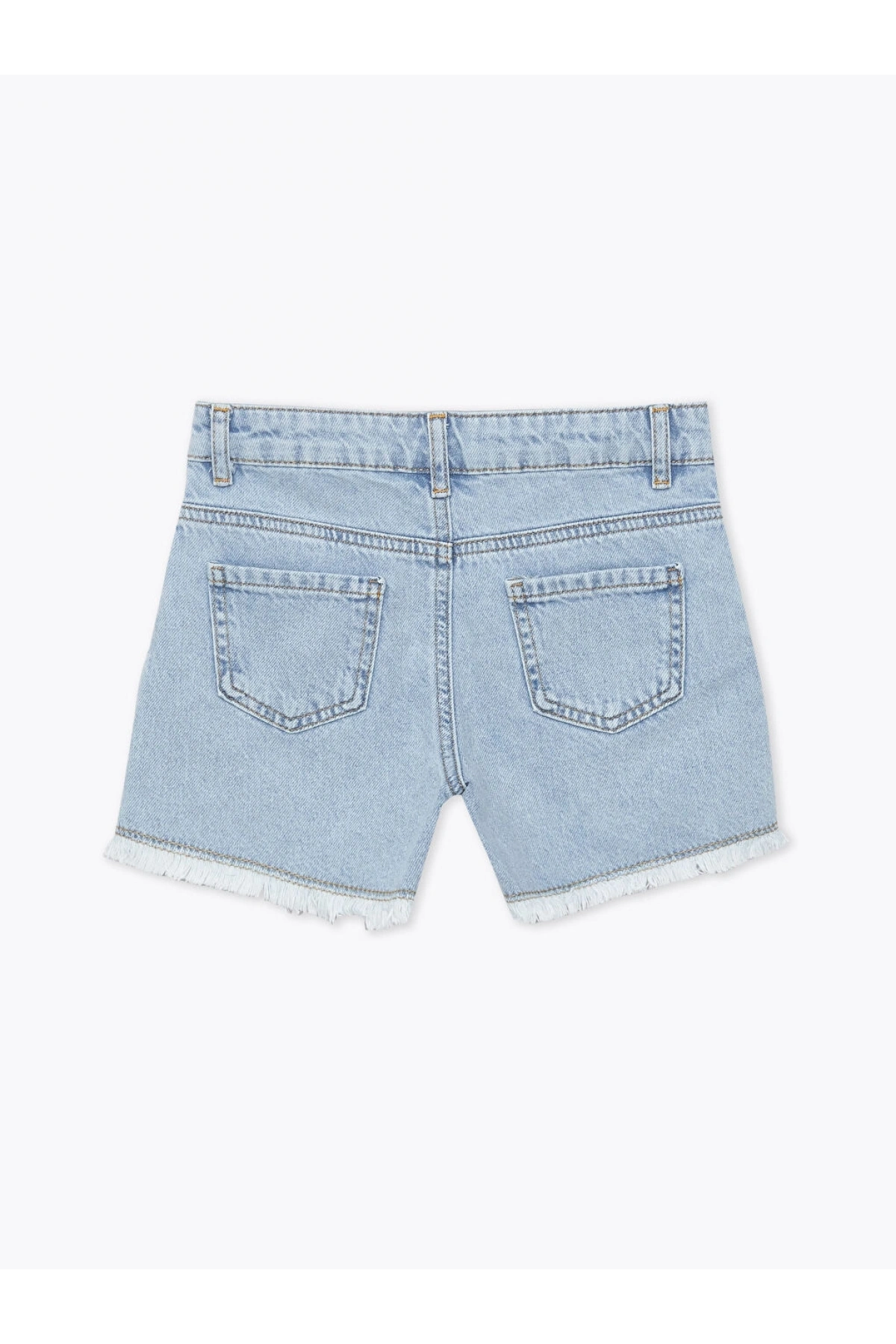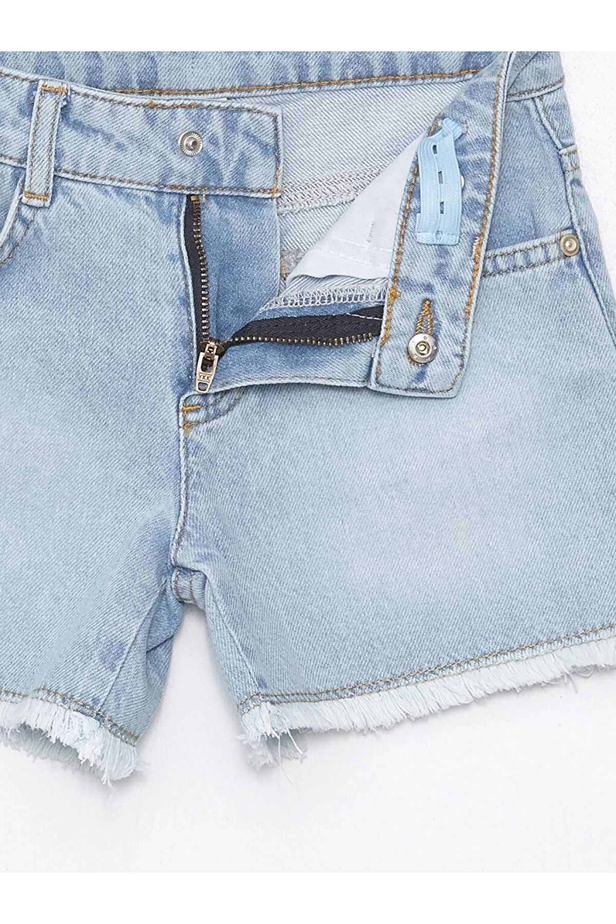 LC WAİKİKİ LCW Kids Mavi Beli Lastikli Nakışlı Kız Çocuk Jean Şort