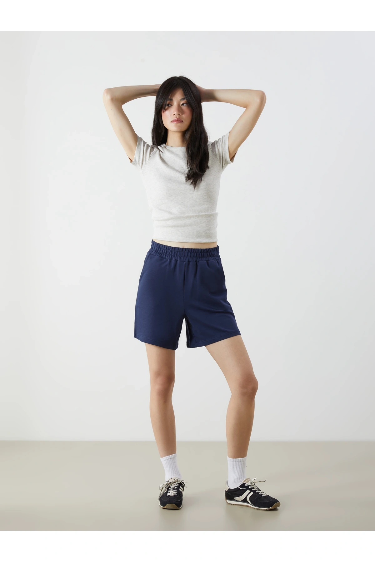 LCWAIKIKI Basic Gri Beli Lastikli Düz Cep Detaylı Kadın Şort