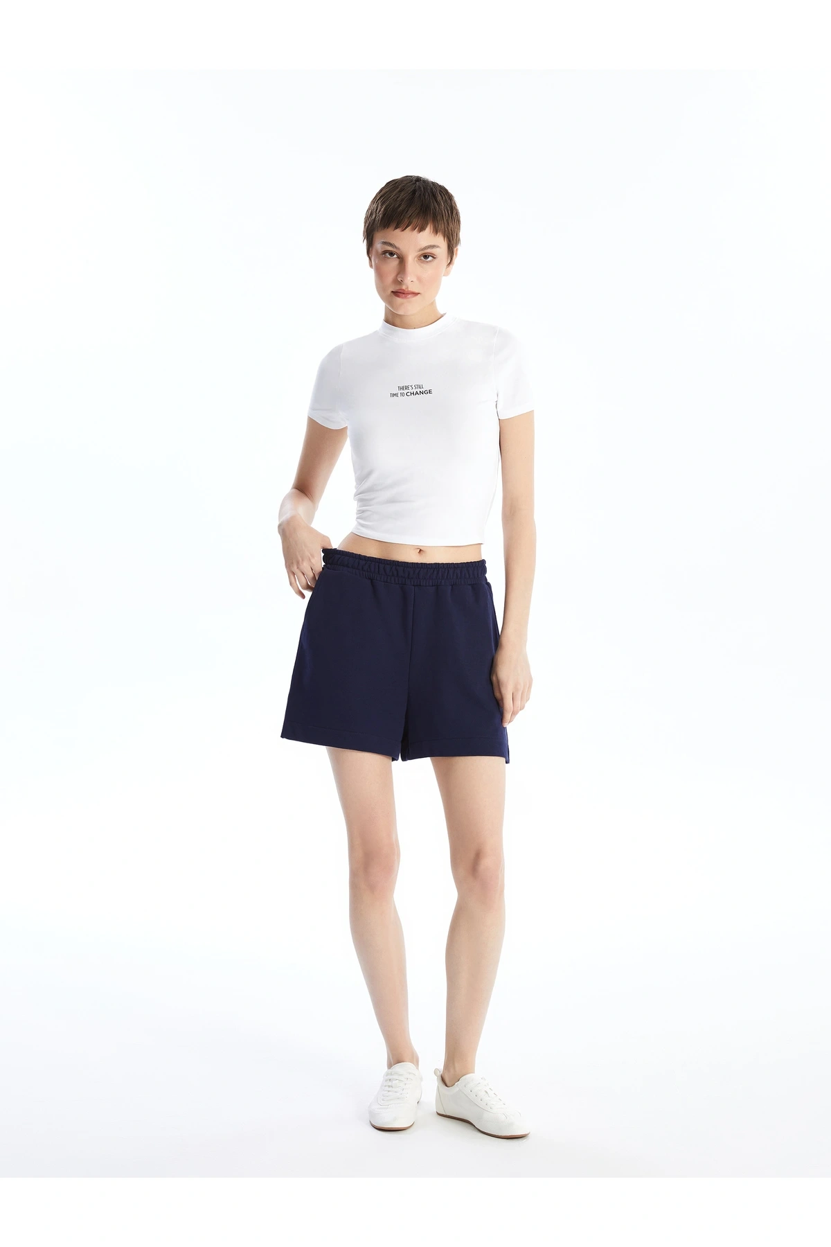 Kadın Beli Lastikli Düz Şort