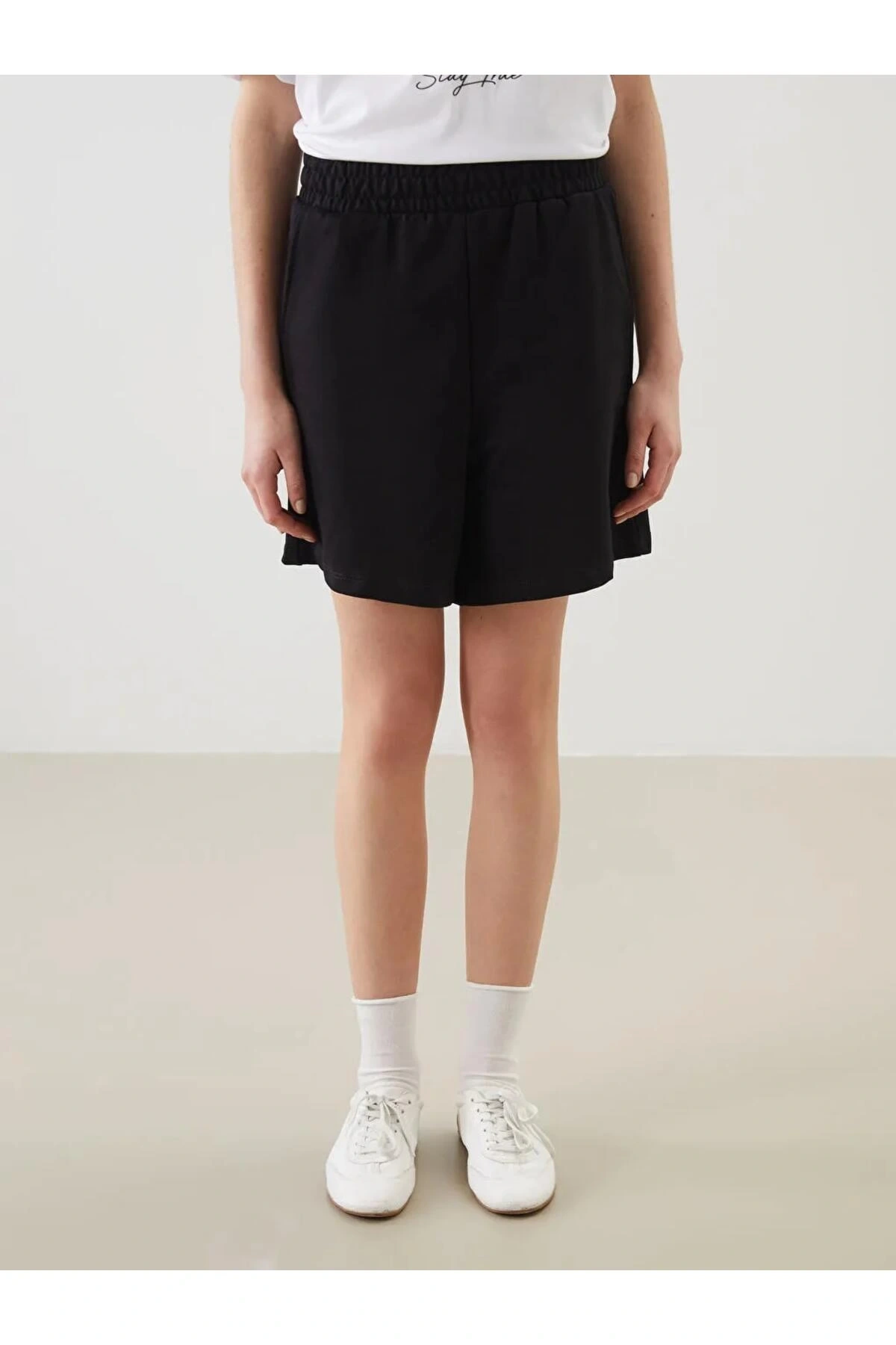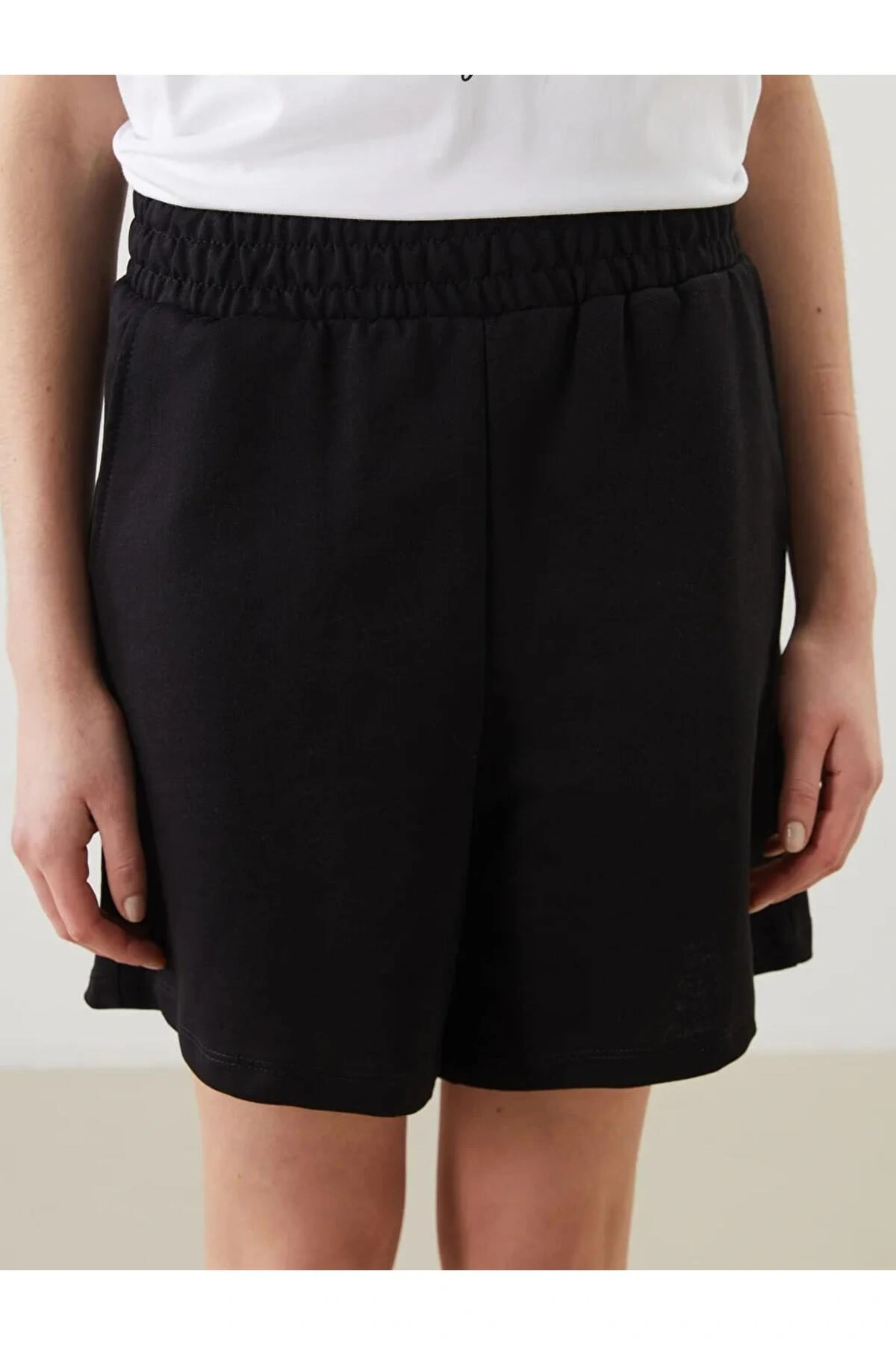 LCWAIKIKI Basic Siyah Beli Lastikli Düz Cep Detaylı Kadın Şort