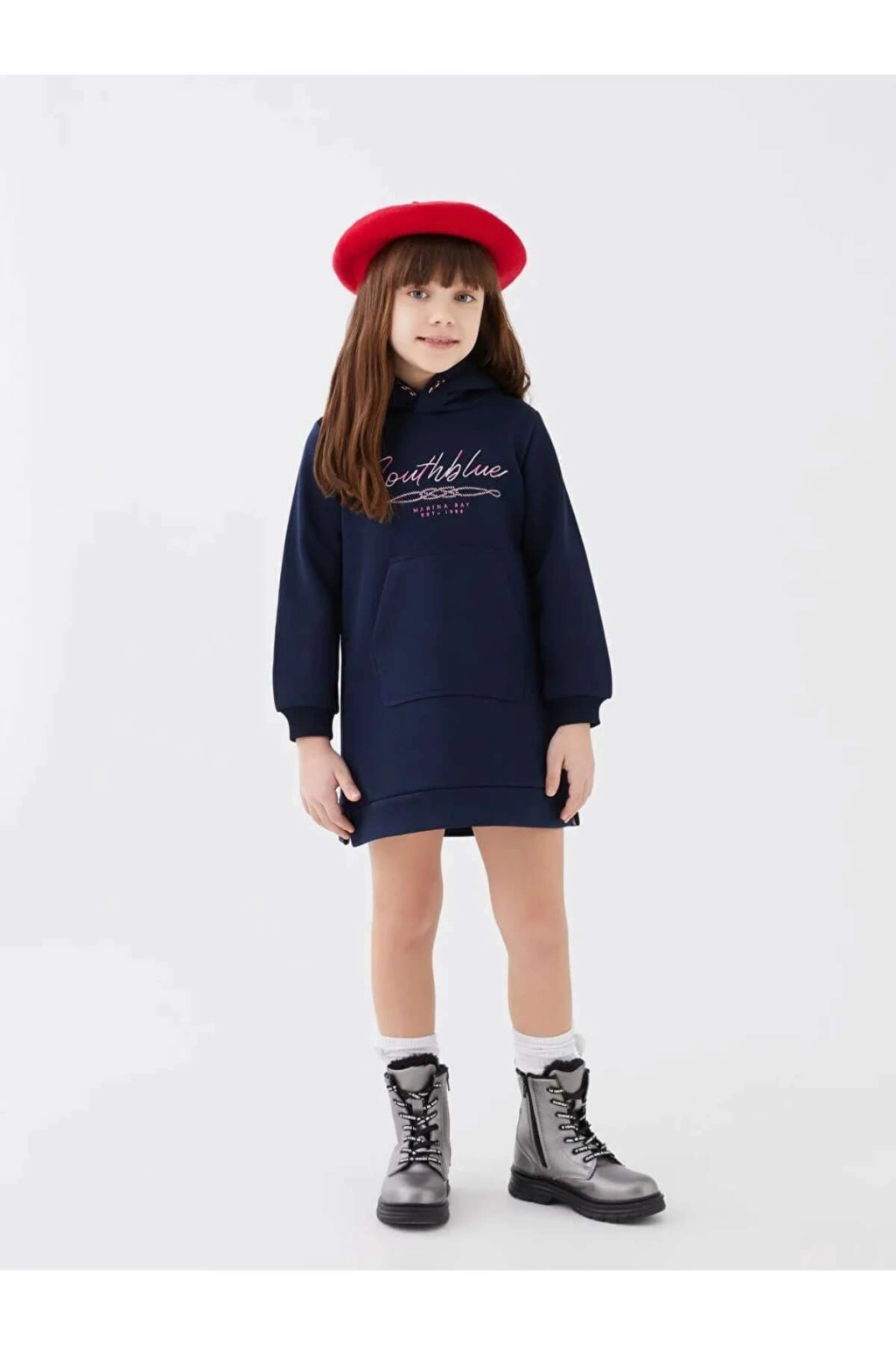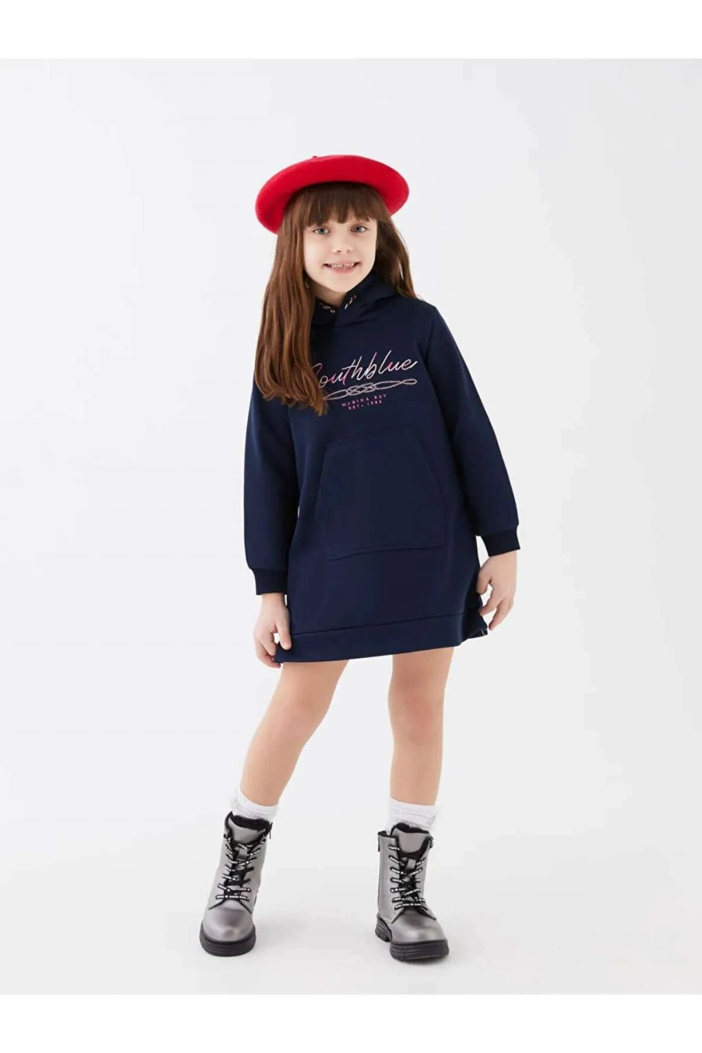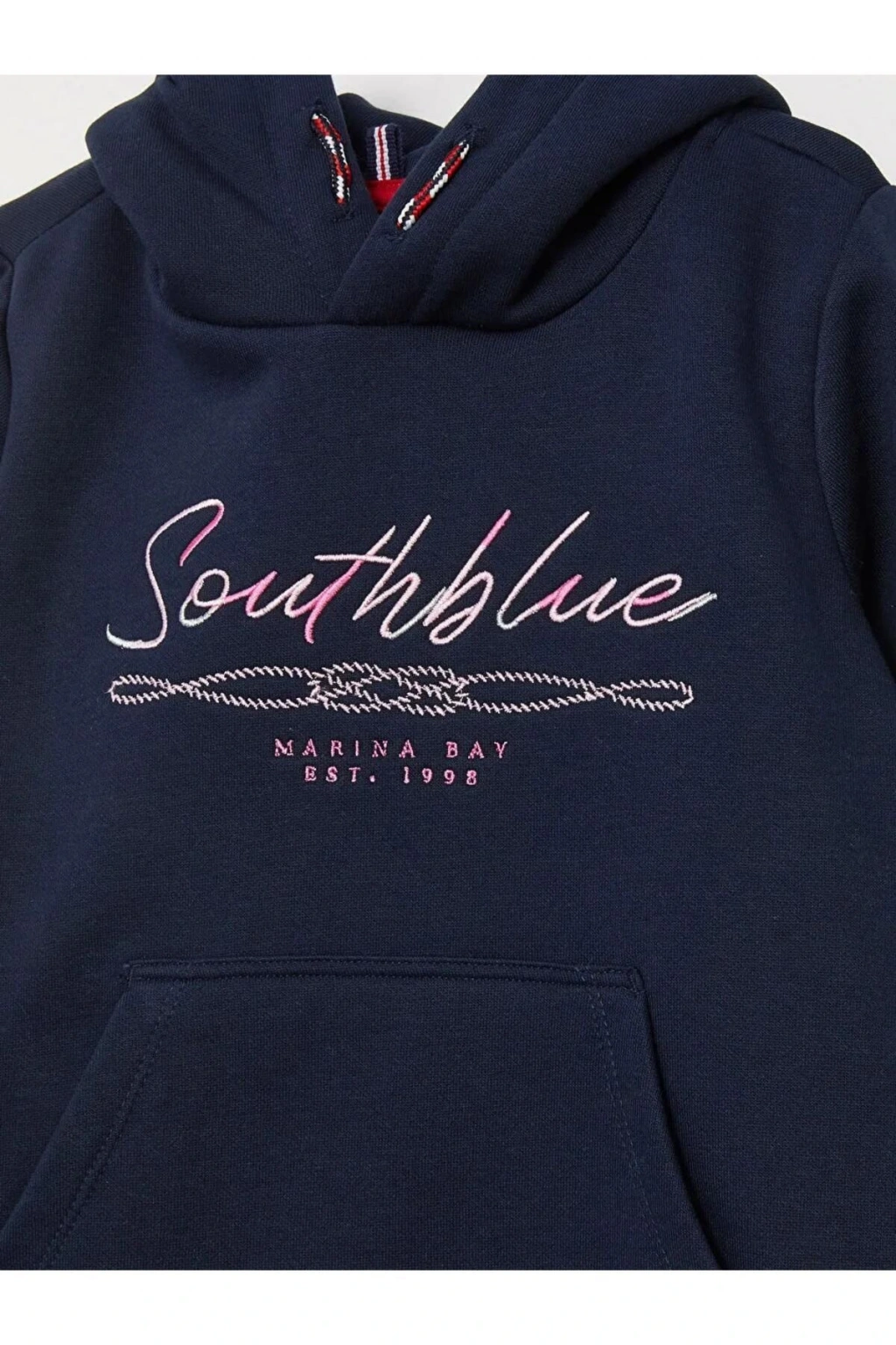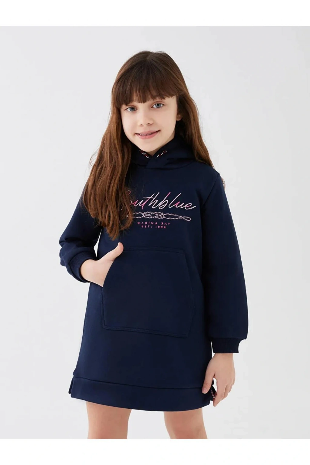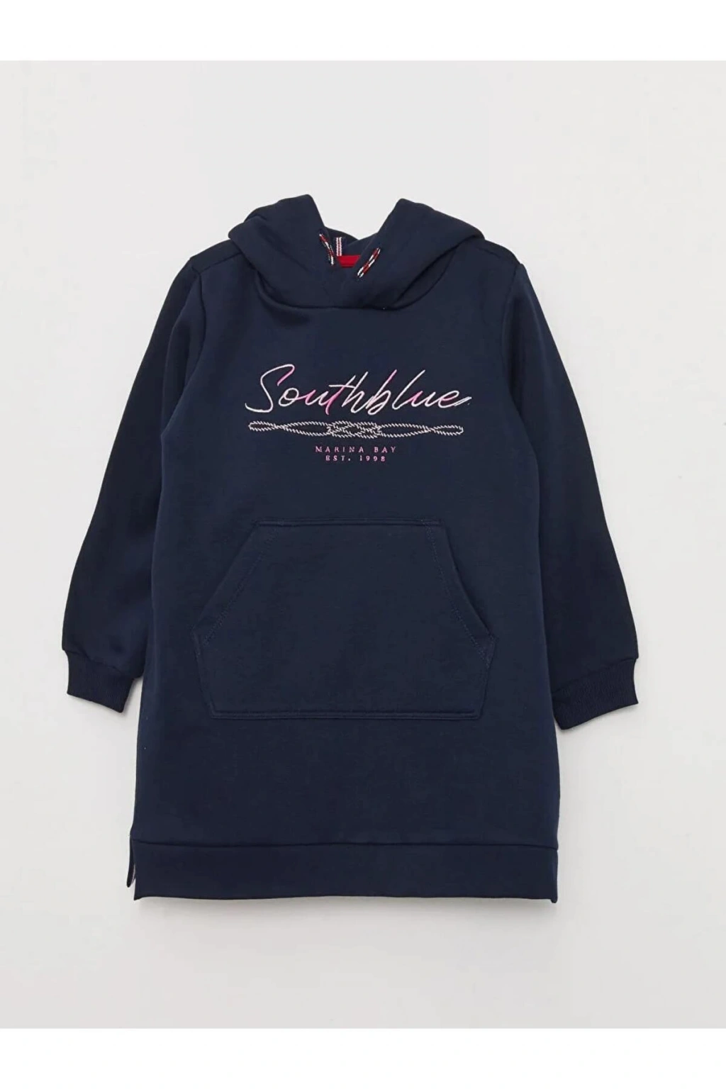 SOUTHBLUE Lacivert Kapüşonlu Nakışlı Uzun Kollu Kız Çocuk Elbise