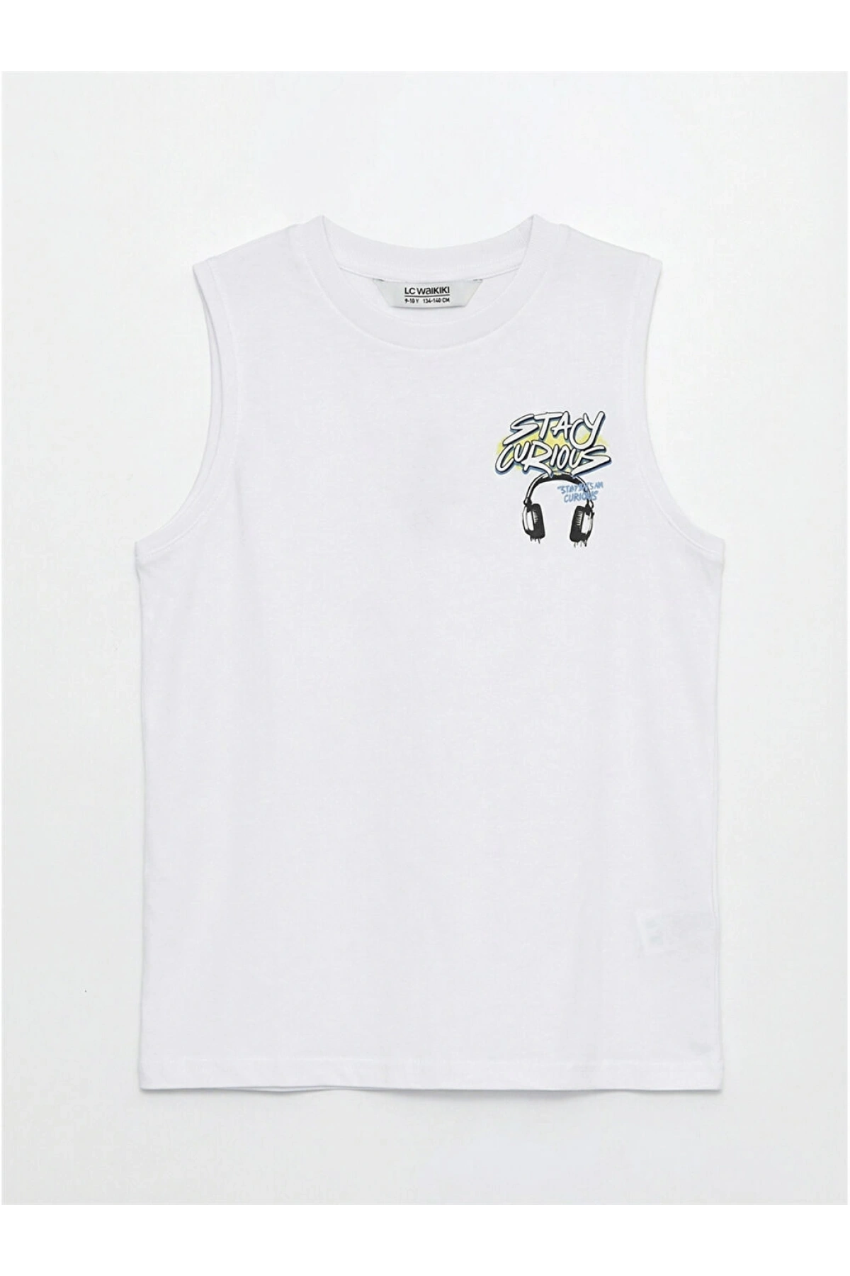 LCW Kids Beyaz Bisiklet Yaka Baskılı Penye Erkek Çocuk Atlet
