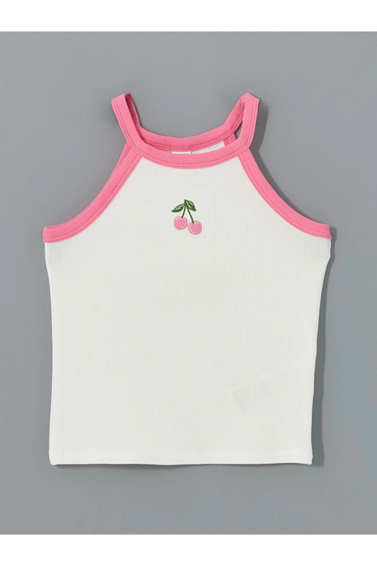LCW Kids Ekru Halter Yaka Nakışlı Penye Kız Çocuk Atlet