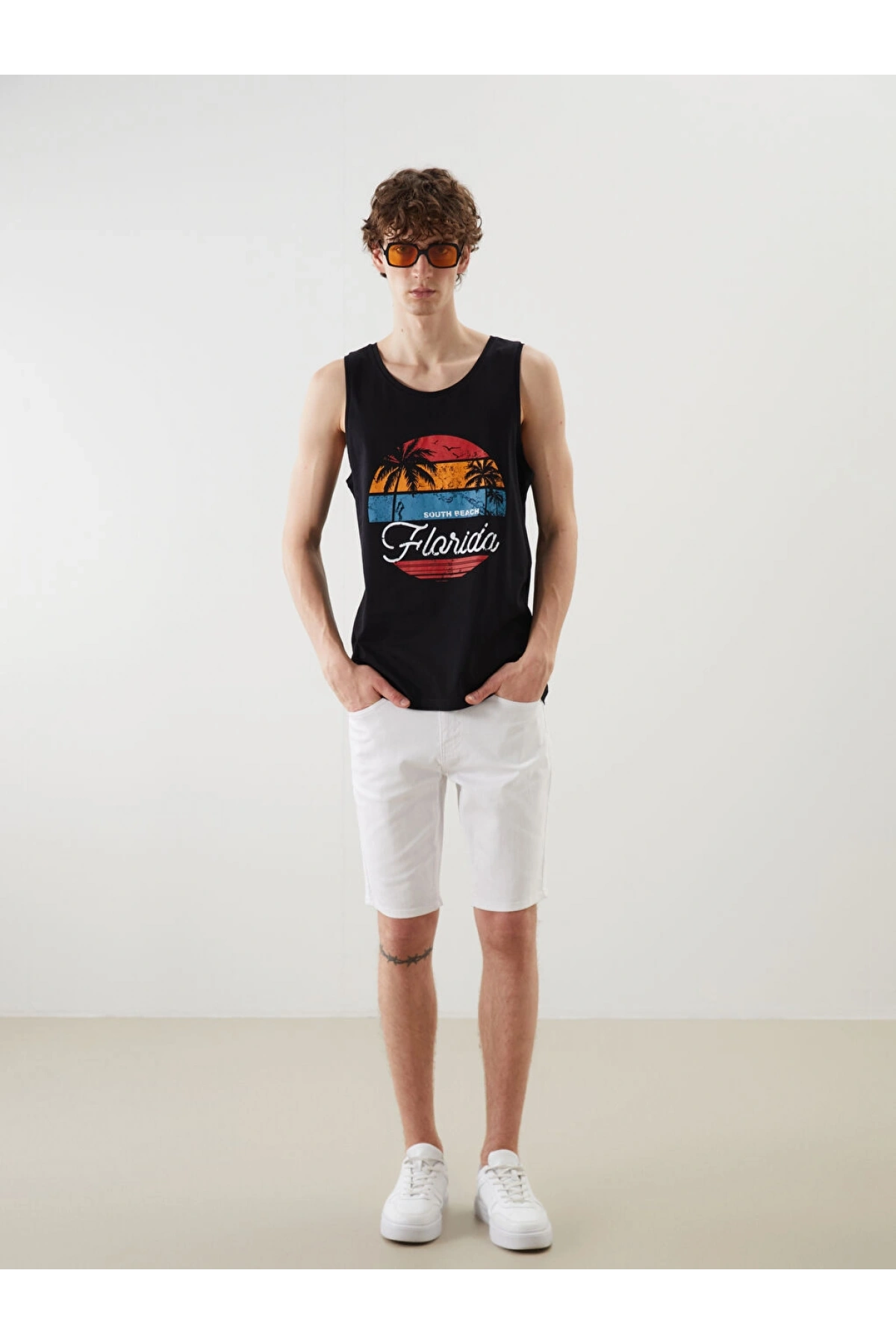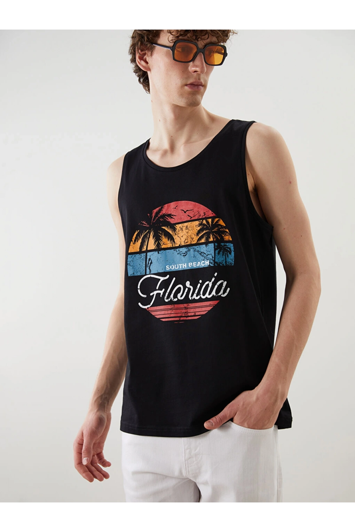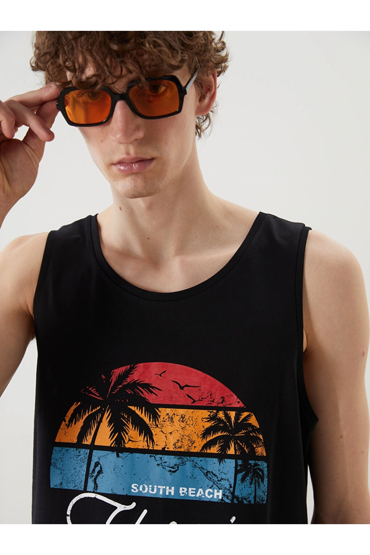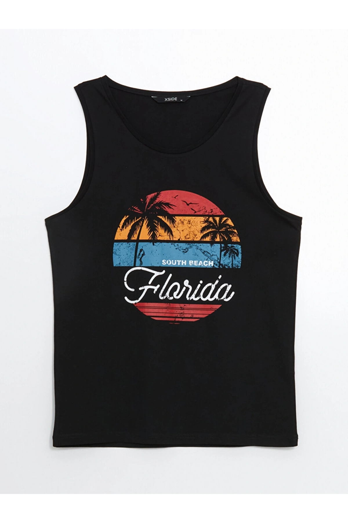 XSIDE Siyah Florida Baskılı Erkek Kolsuz Tişört