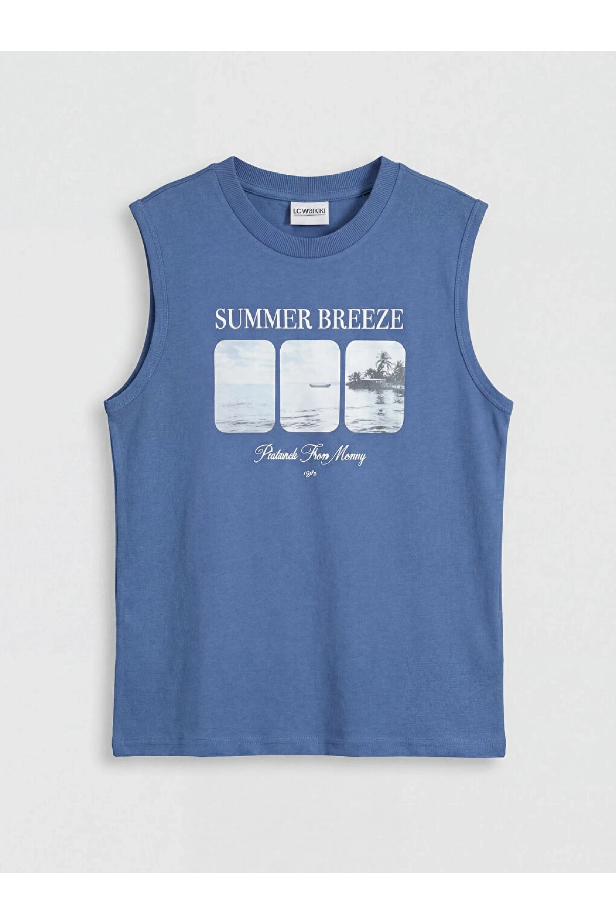 LCW Kids Mavi Bisiklet Yaka Baskılı Erkek Çocuk Atlet