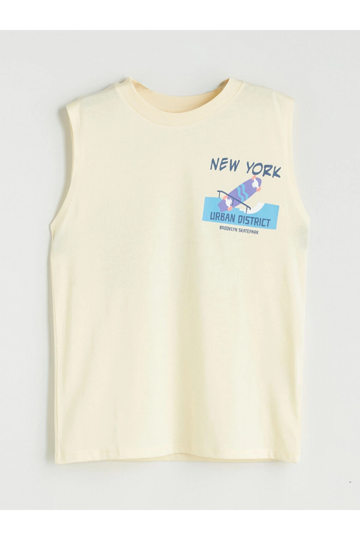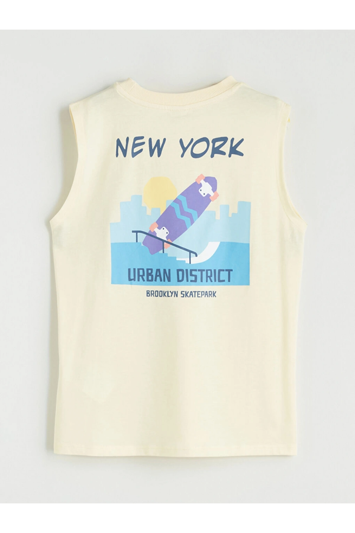 LCW Kids Sarı Bisiklet Yaka New York Baskılı Erkek Çocuk Atlet