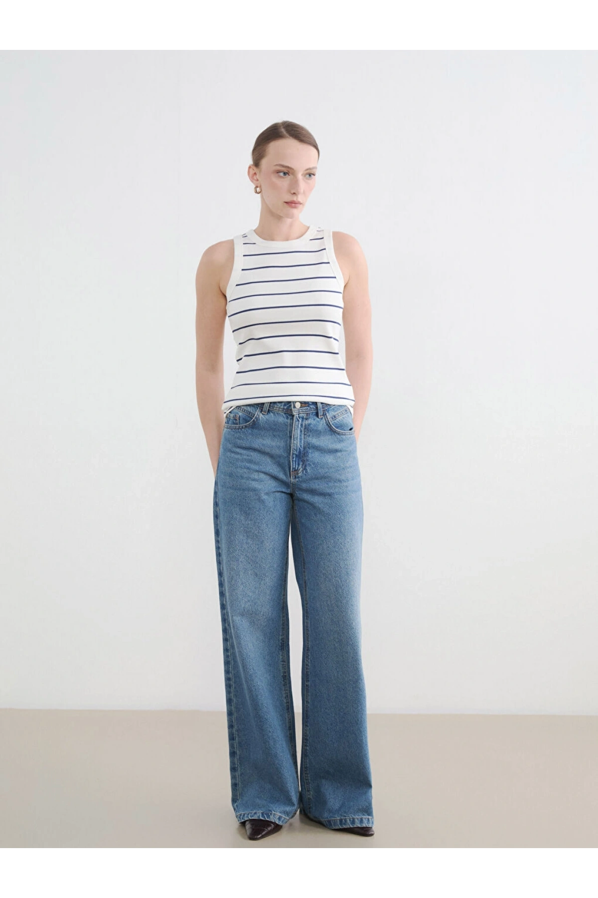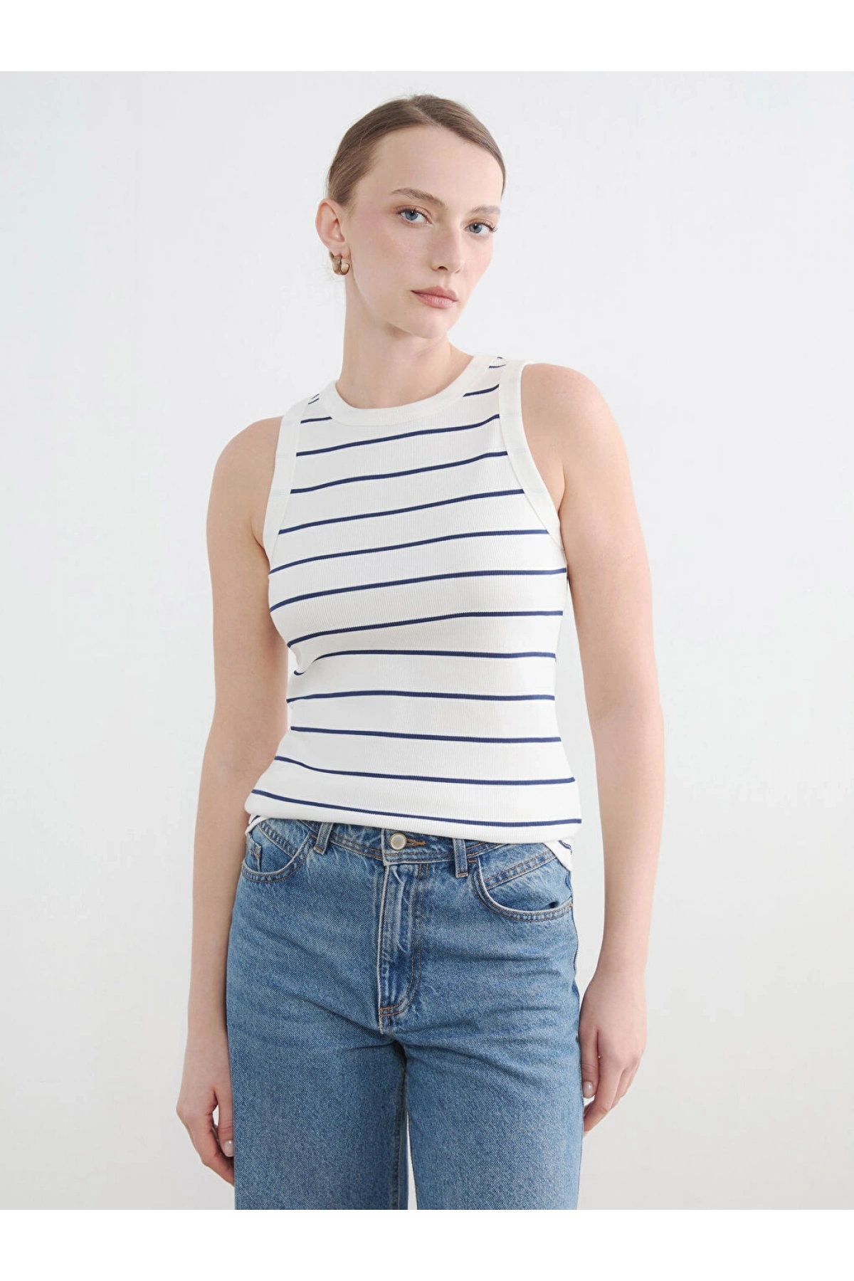 MAVİ ASKILI BASIC ATLET Beyaz
