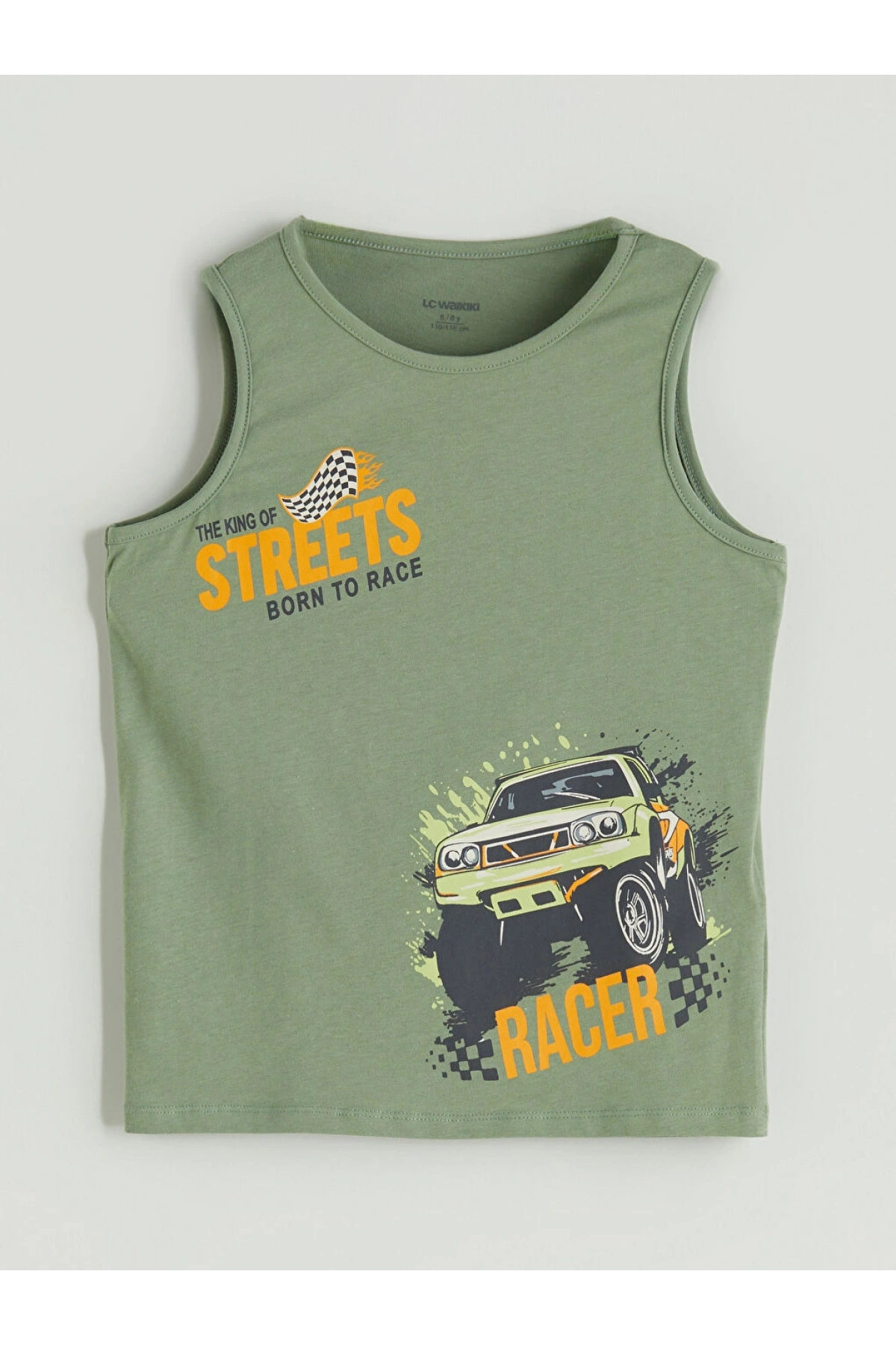 LCW Kids Yeşil Bisiklet Yaka Baskılı Erkek Çocuk Atlet