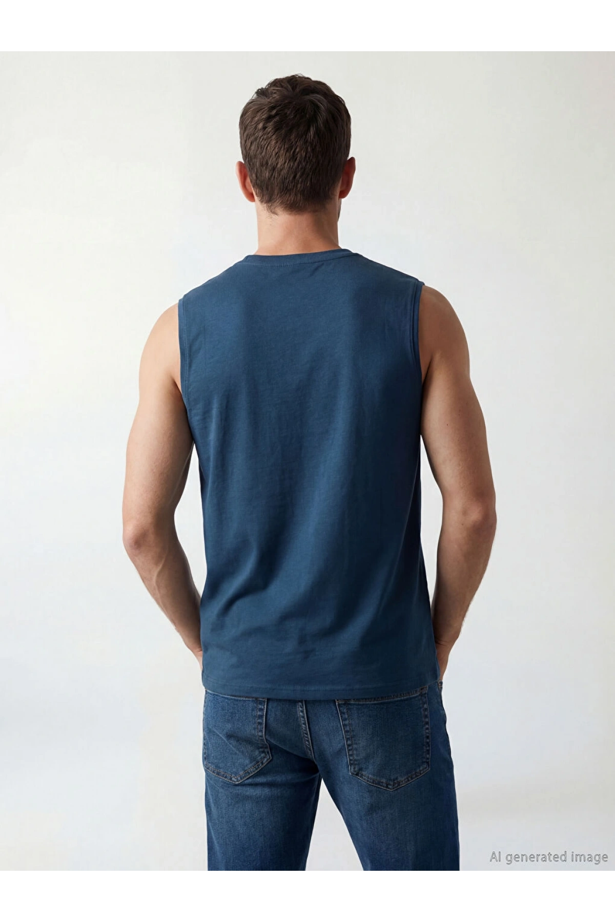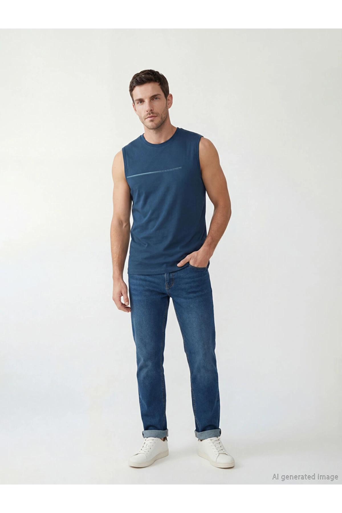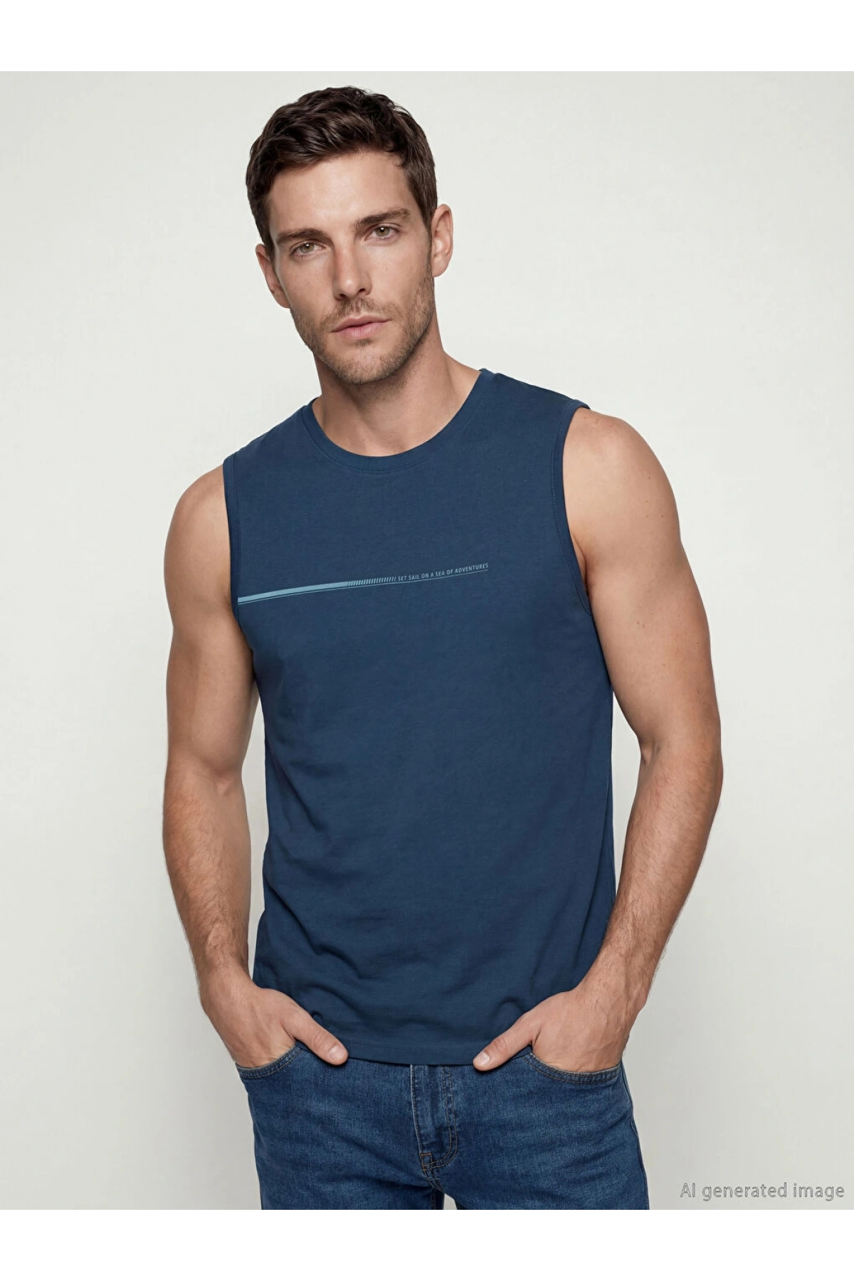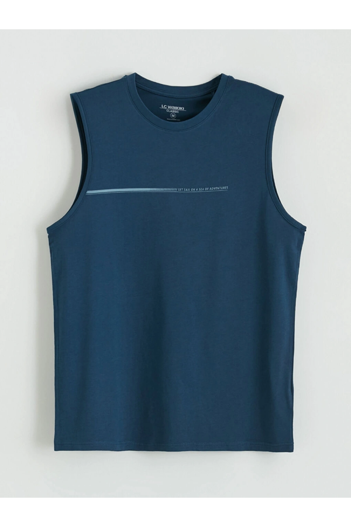 LCWAIKIKI Classic Lacivert Bisiklet Yaka Baskılı Erkek Kolsuz Tişört