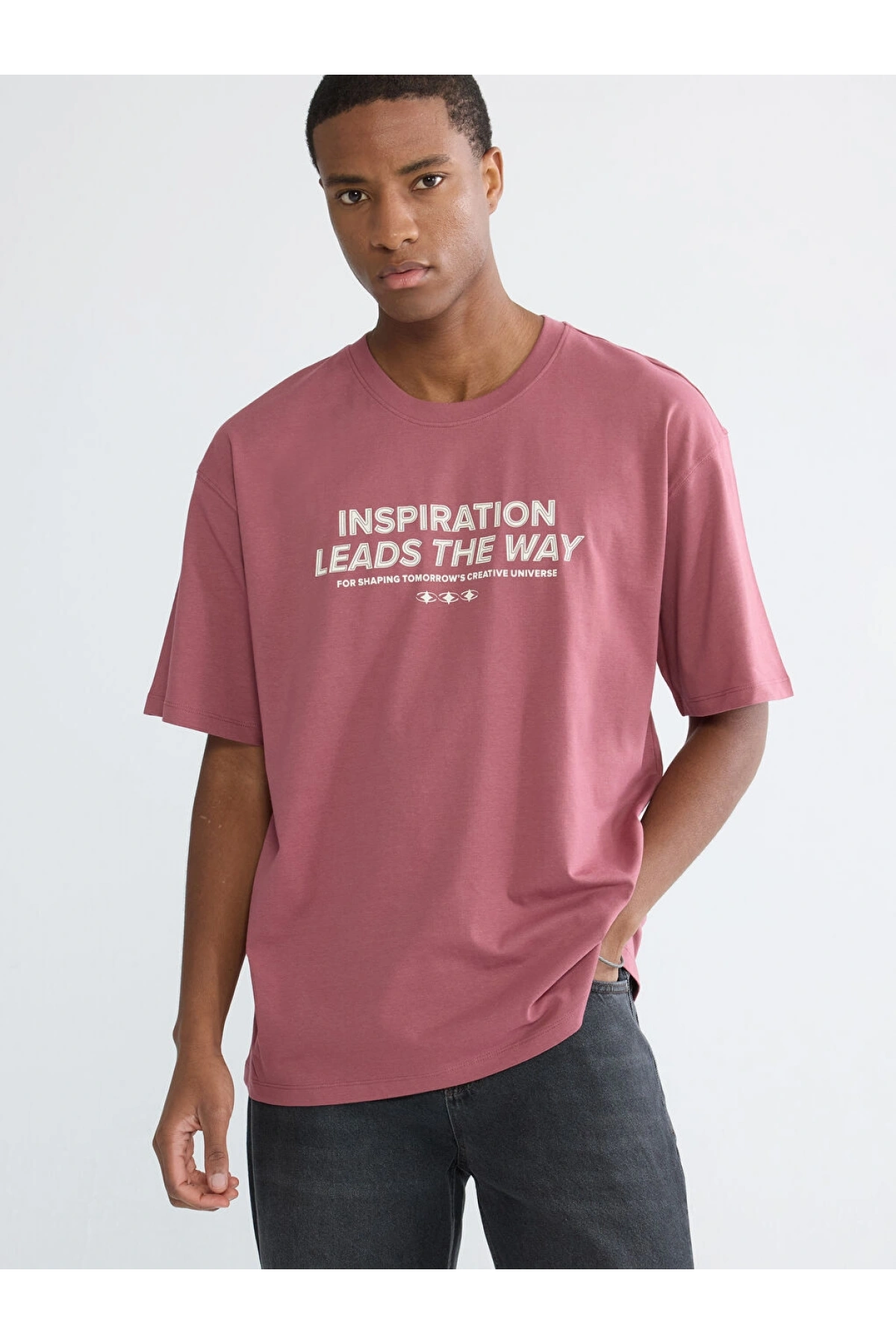 XSIDE Pembe Bisiklet Yaka Baskılı Erkek Tişört