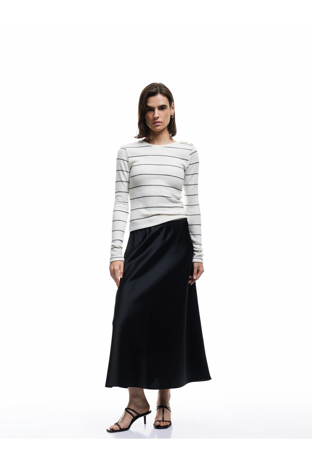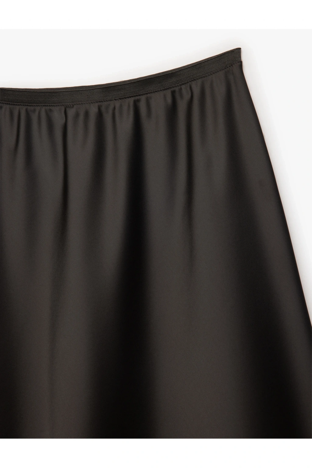 Medium rise regular fit satin midi skirt.; | Model Boy: 174 | Model Kalça: 89 | Model Üst: 61 | Model Bel: S | Model Göğüs: 87 | Model Jean: 27/32