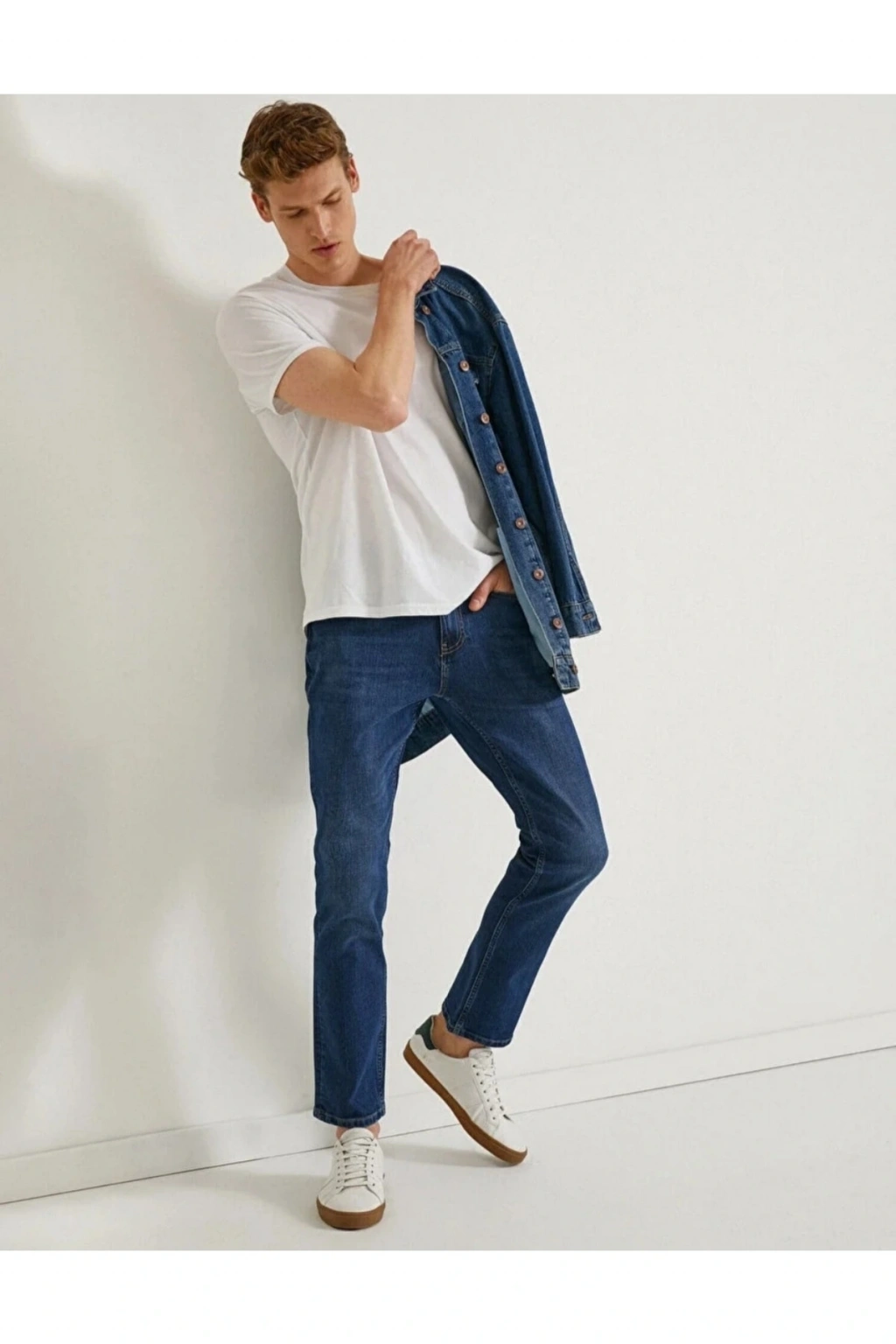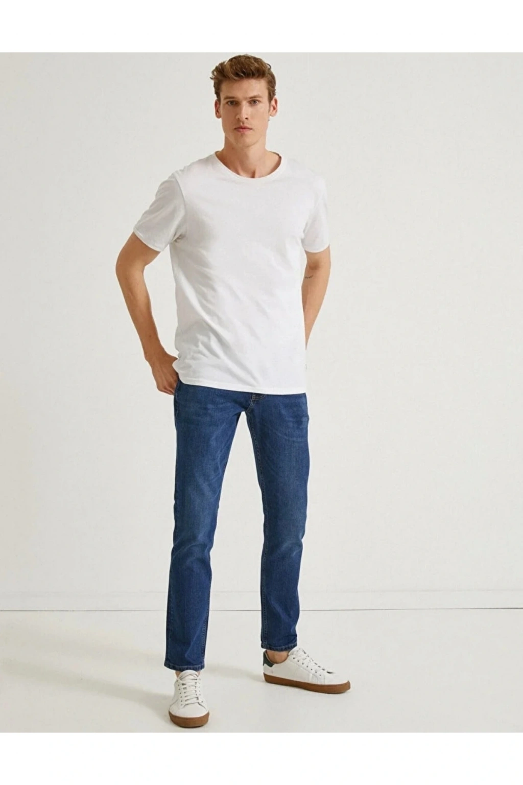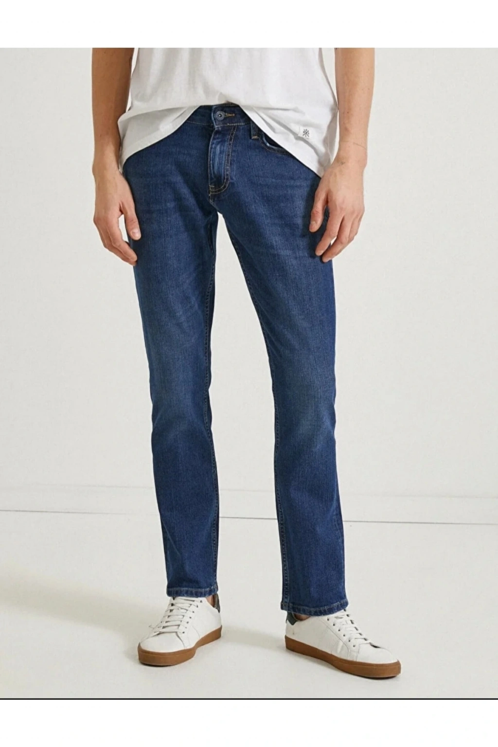 Normal Bel, Rahat Kesim, Düz Paça. ; Dizden Ayak Bileğine Düz İnen Rahat Kesim Jean Pantolon %98 Pamuk, %2 Elastan Boy: 189 cm, Göğüs: 86, Bel: 74. ; Modelin Bedeni: 32/34;