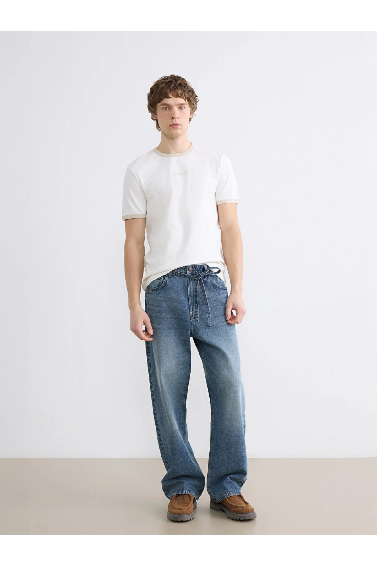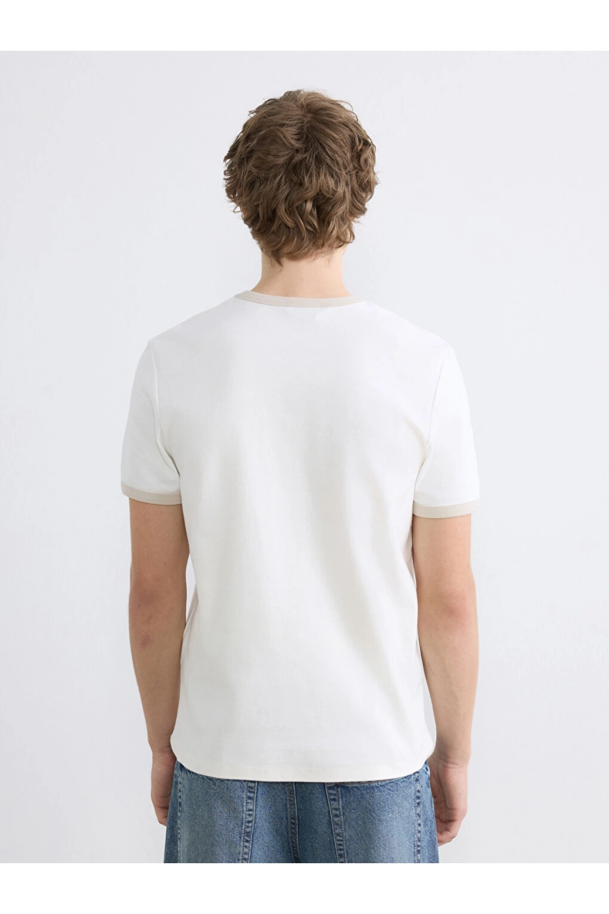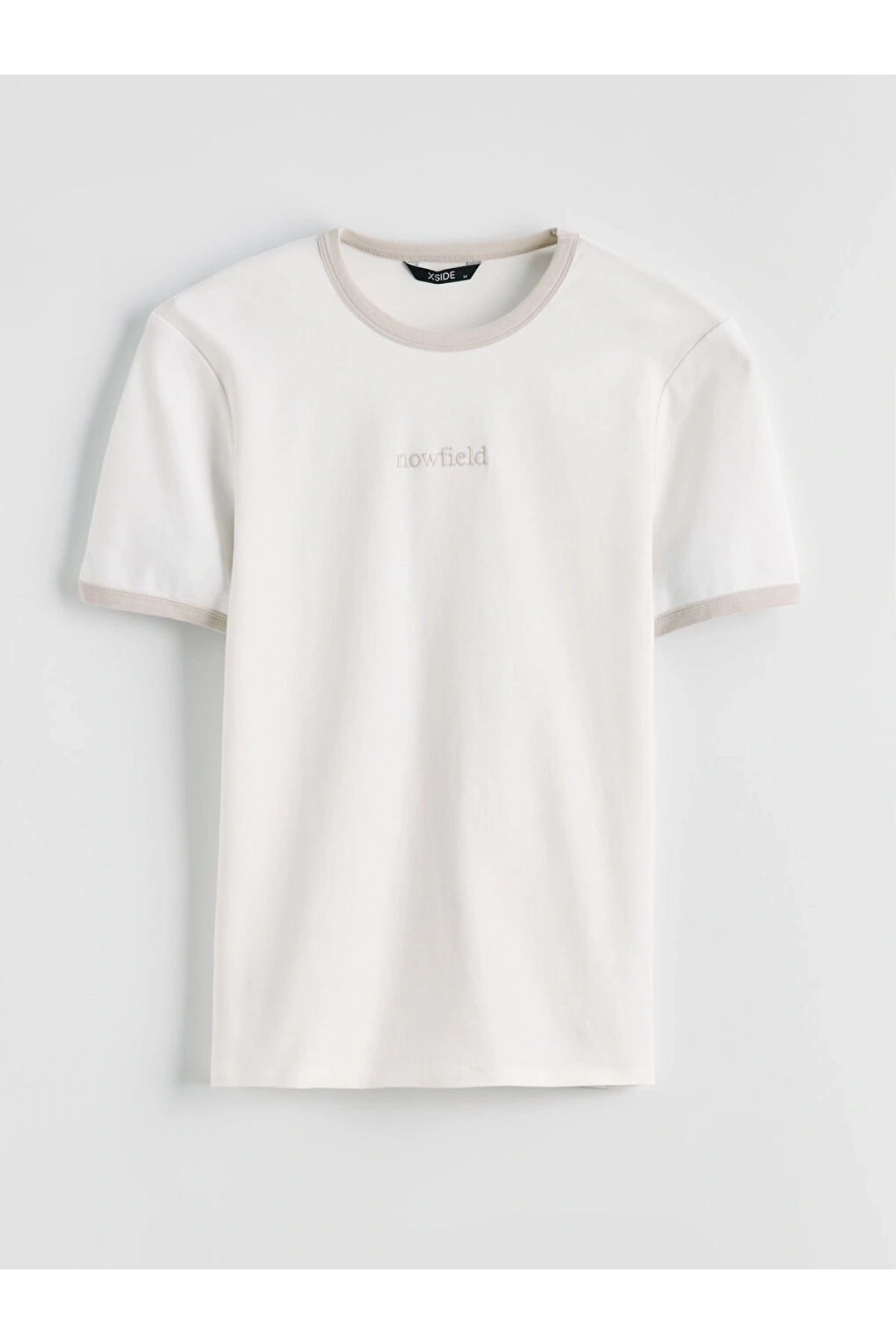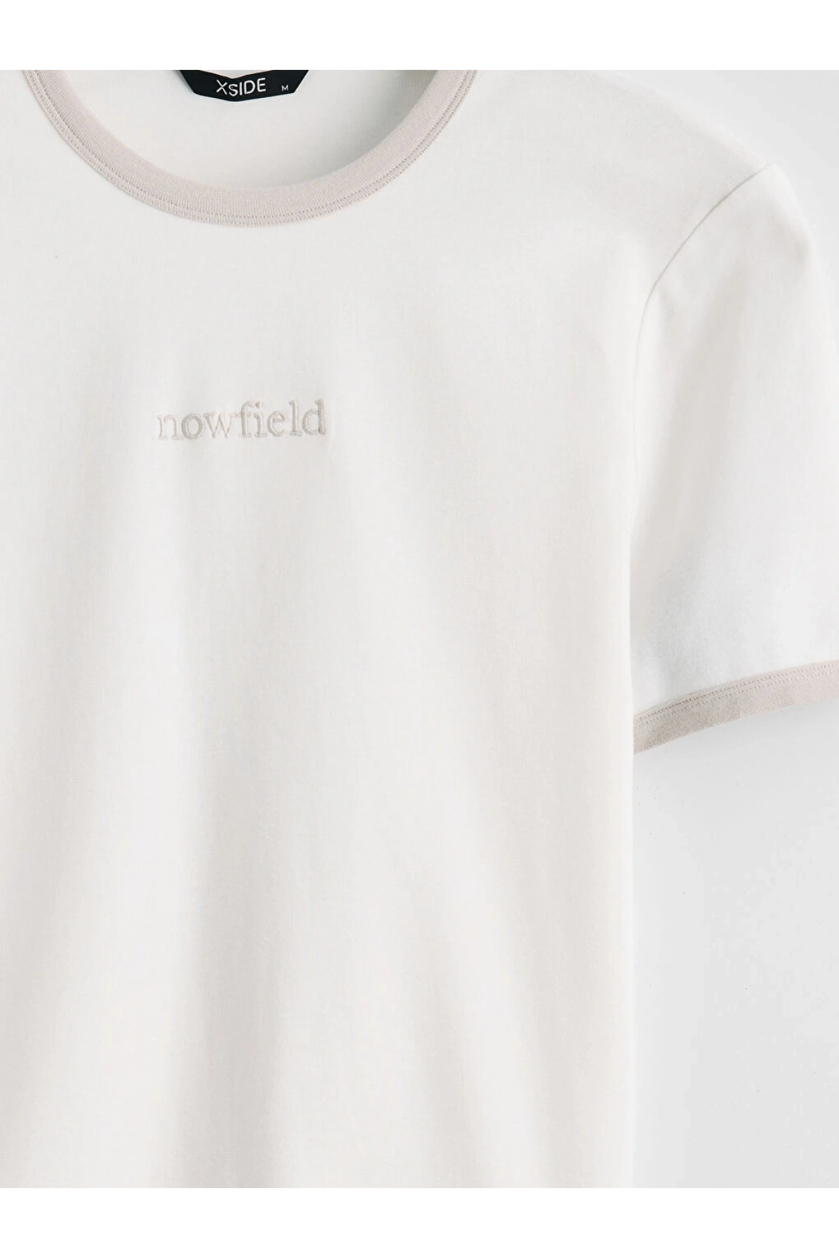 XSIDE Ekru Standart Fit Nakışlı Bisiklet Yaka Erkek Tişört