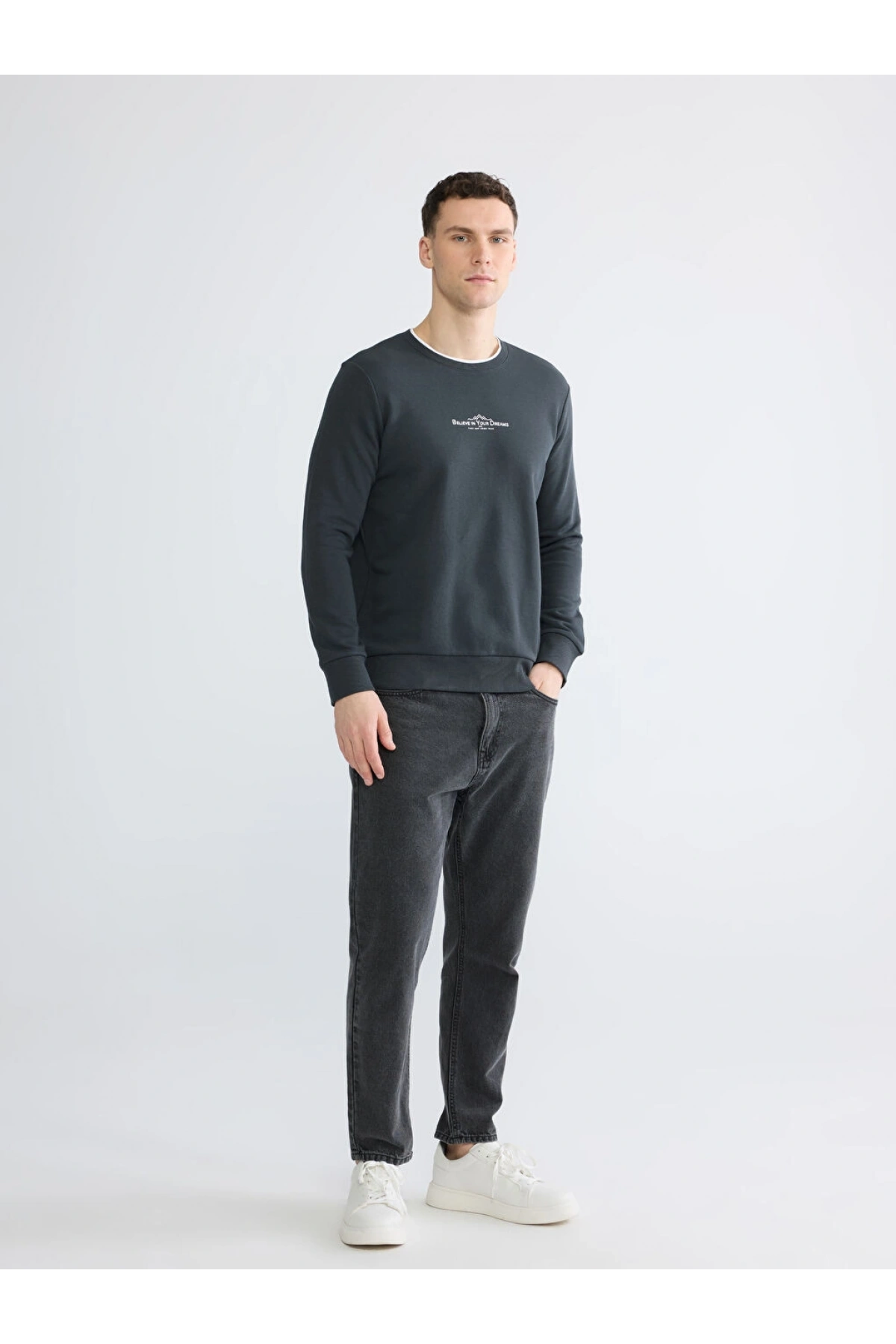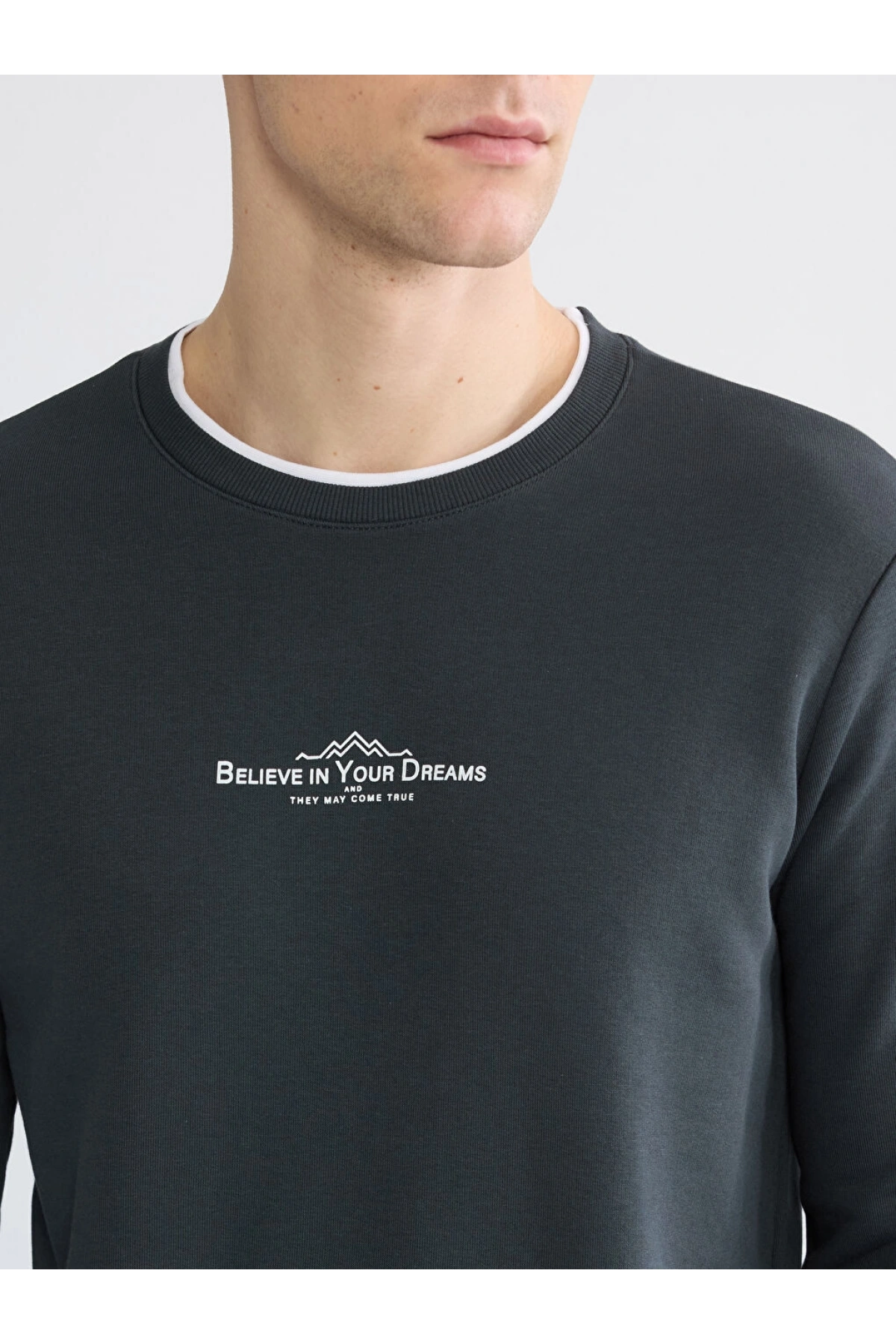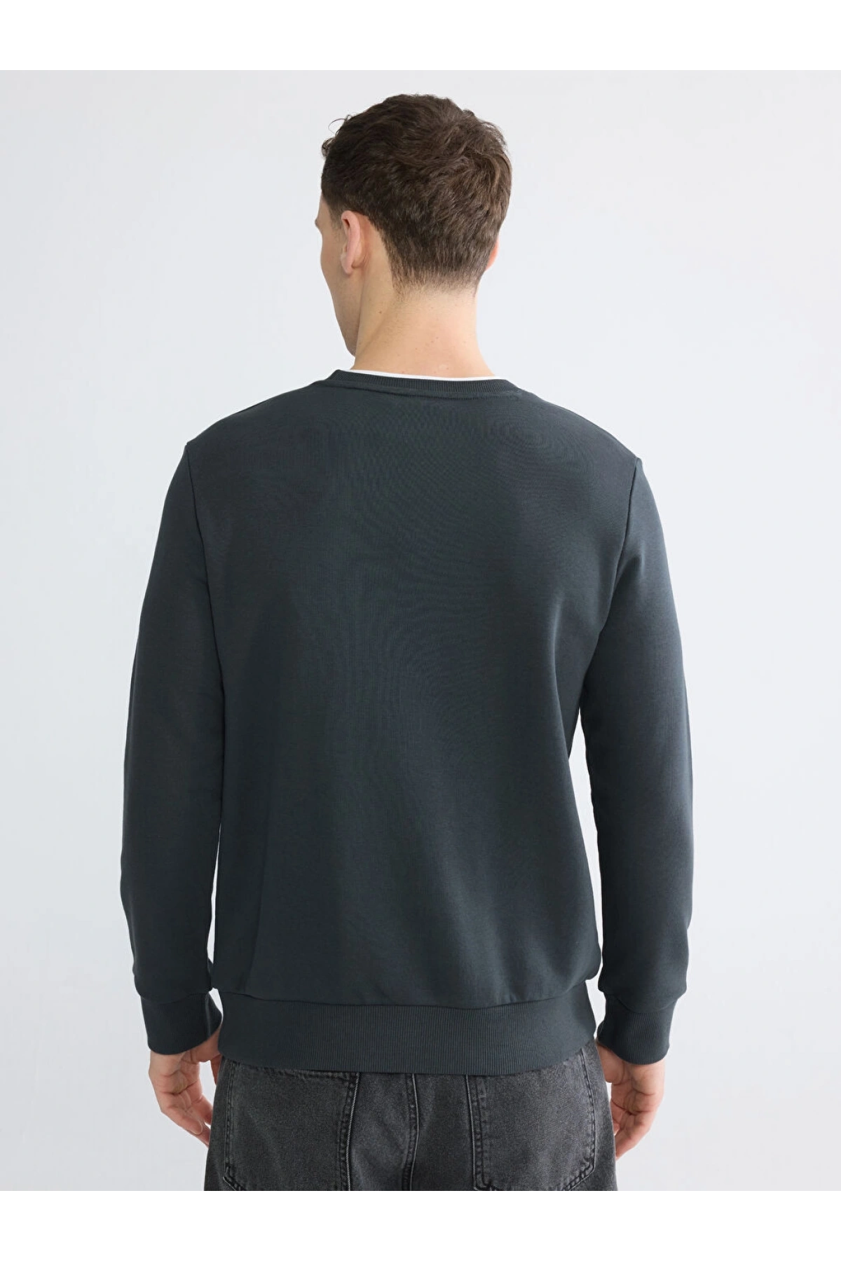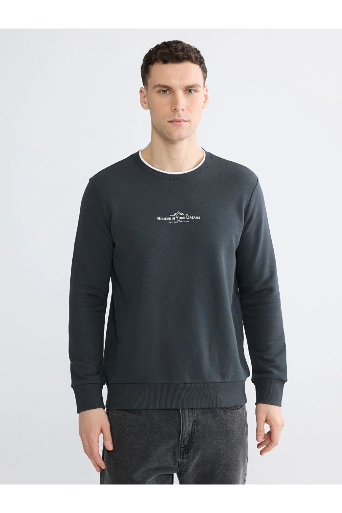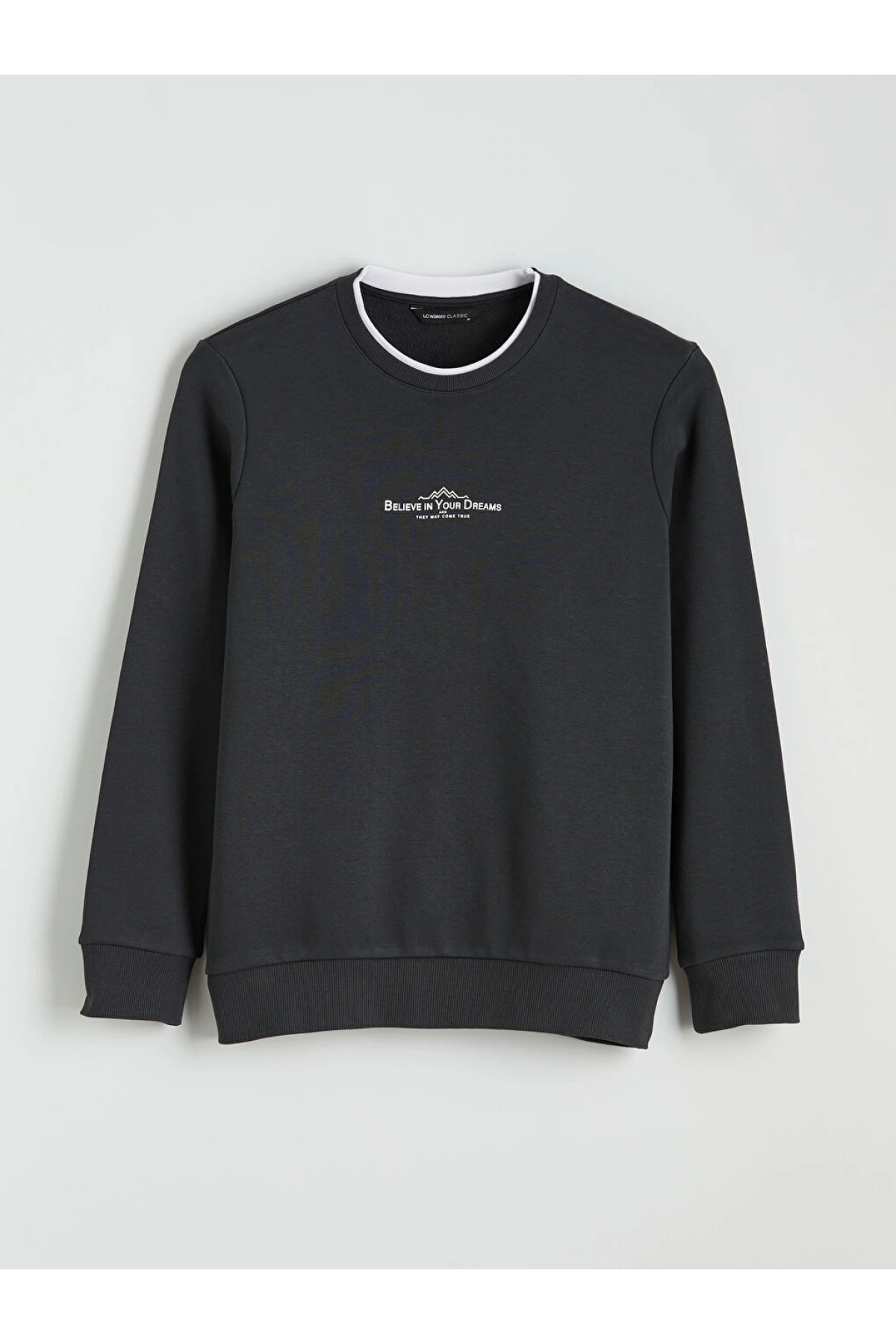 LCWAIKIKI Classic Antrasit Bisiklet Yaka Baskılı Erkek Sweatshirt
