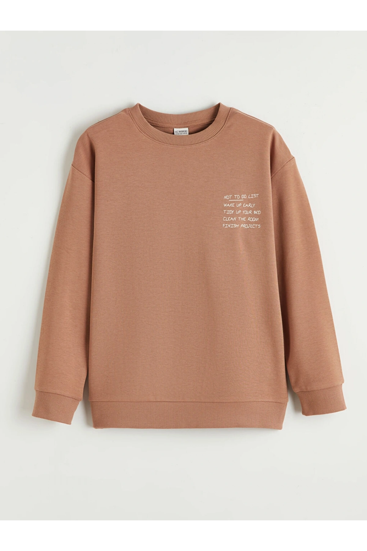 LCW Kids Kahverengi Yazı Baskılı Erkek Çocuk Sweatshirt