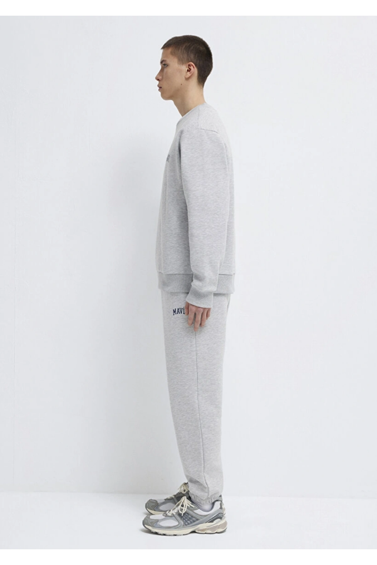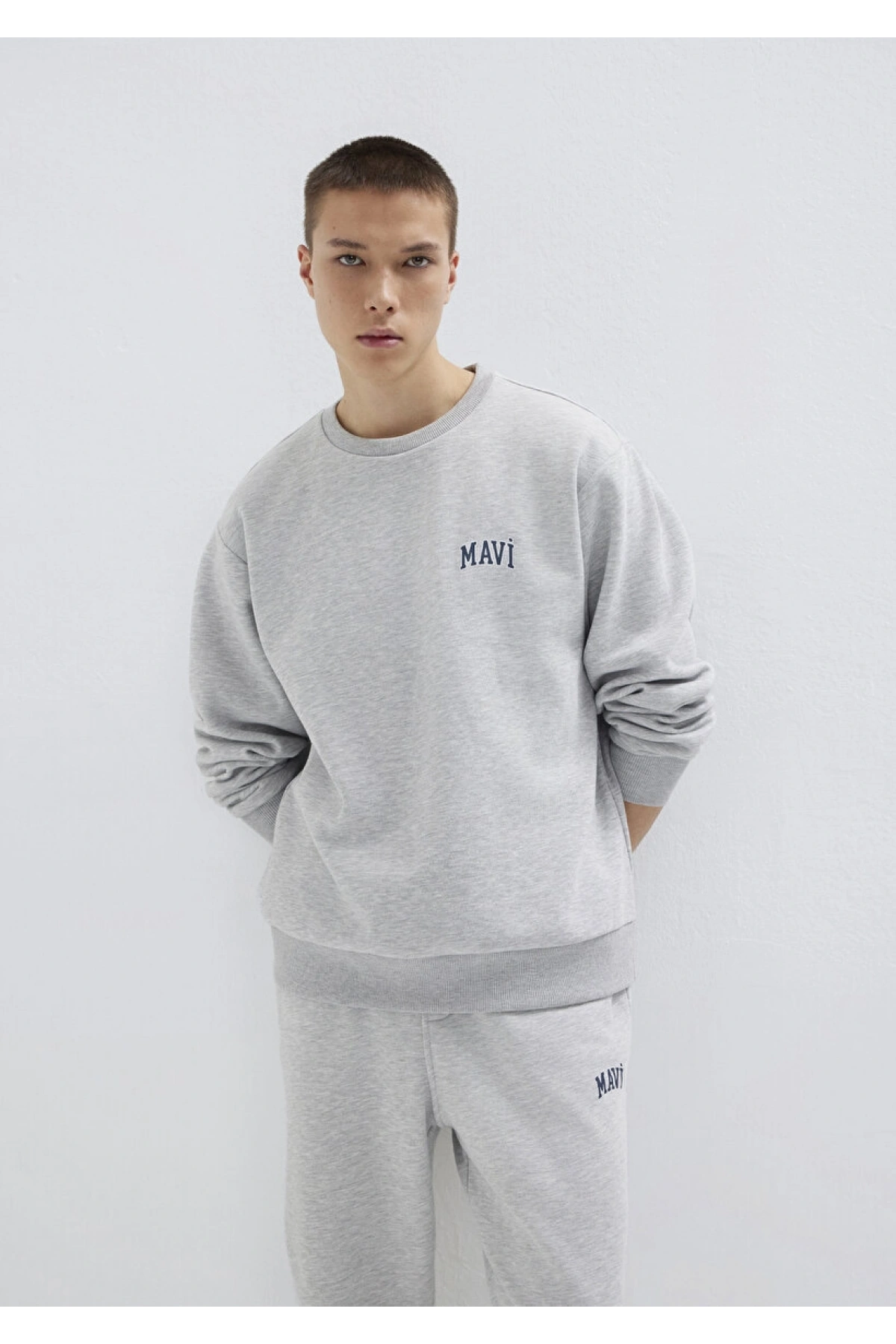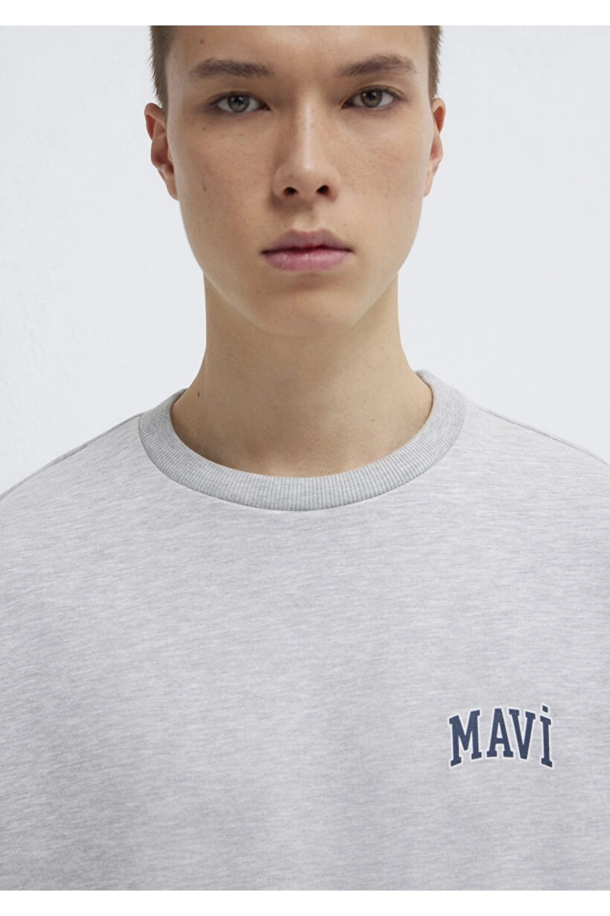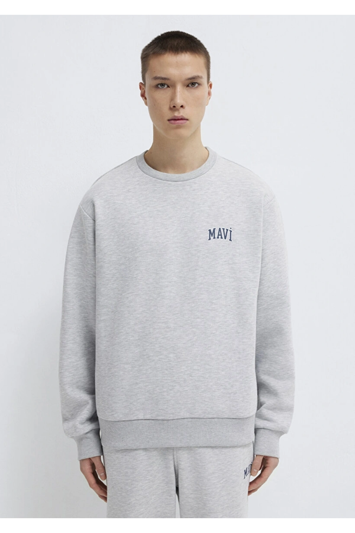 Mavi Logo Baskılı Gri Sweatshirt