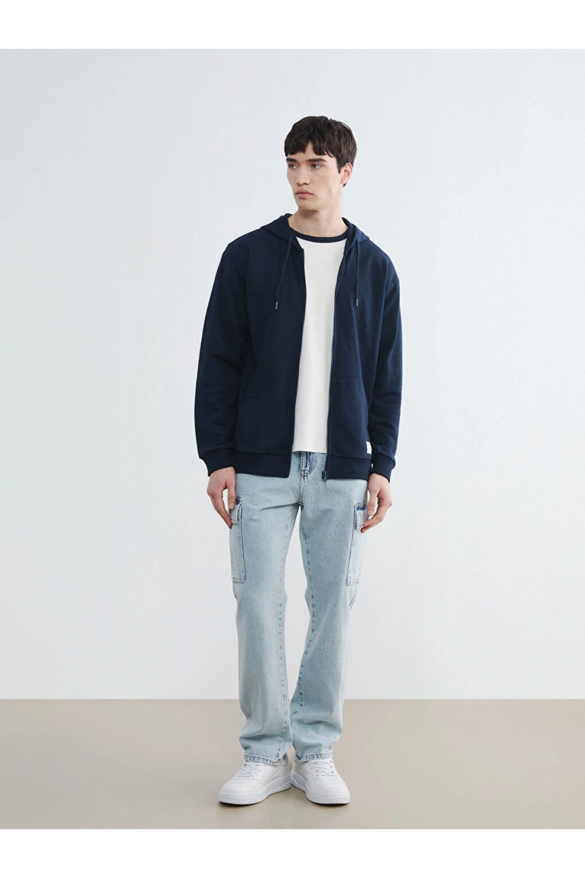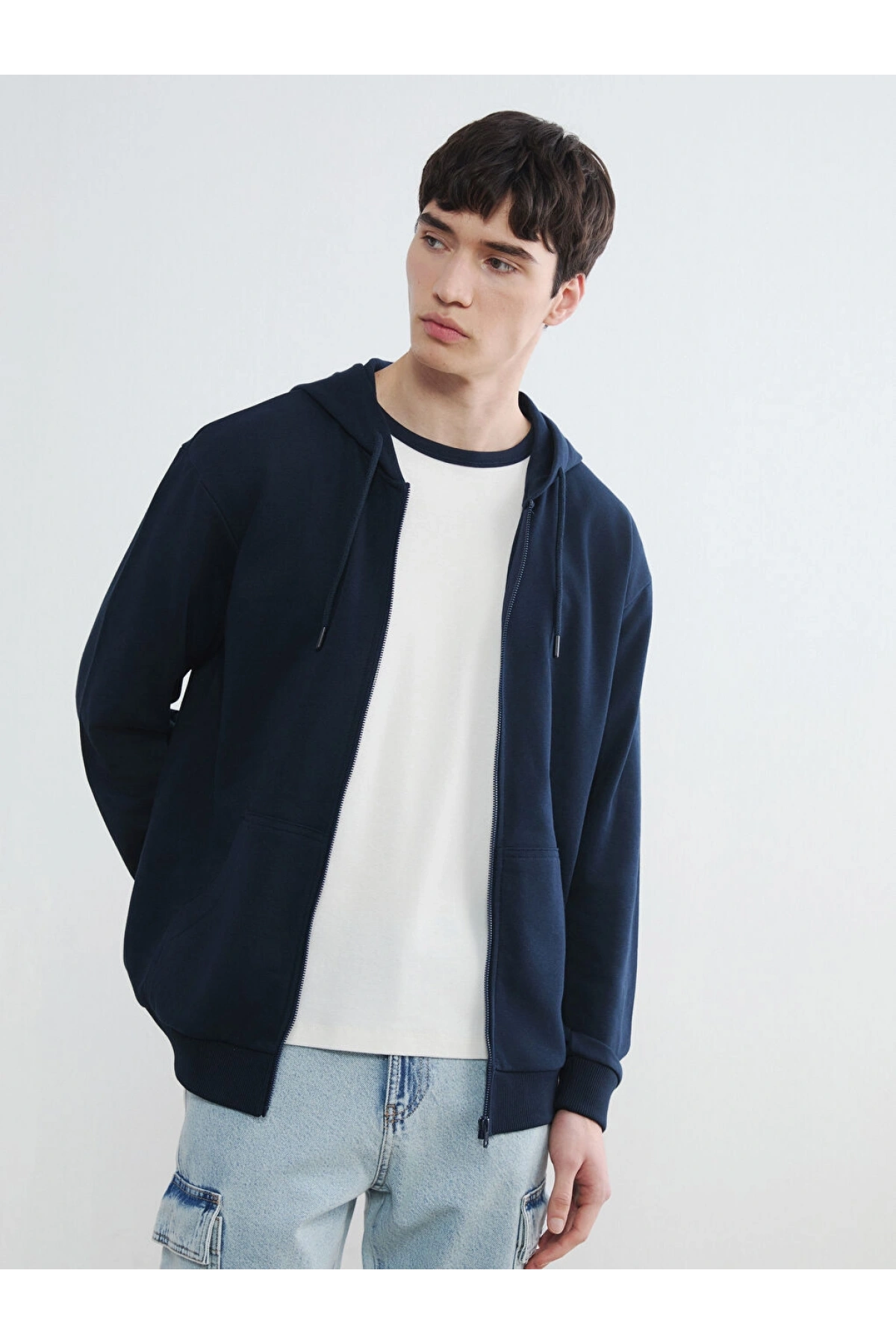 XSIDE Lacivert Kapüşonlu Erkek Fermuarlı Sweatshirt