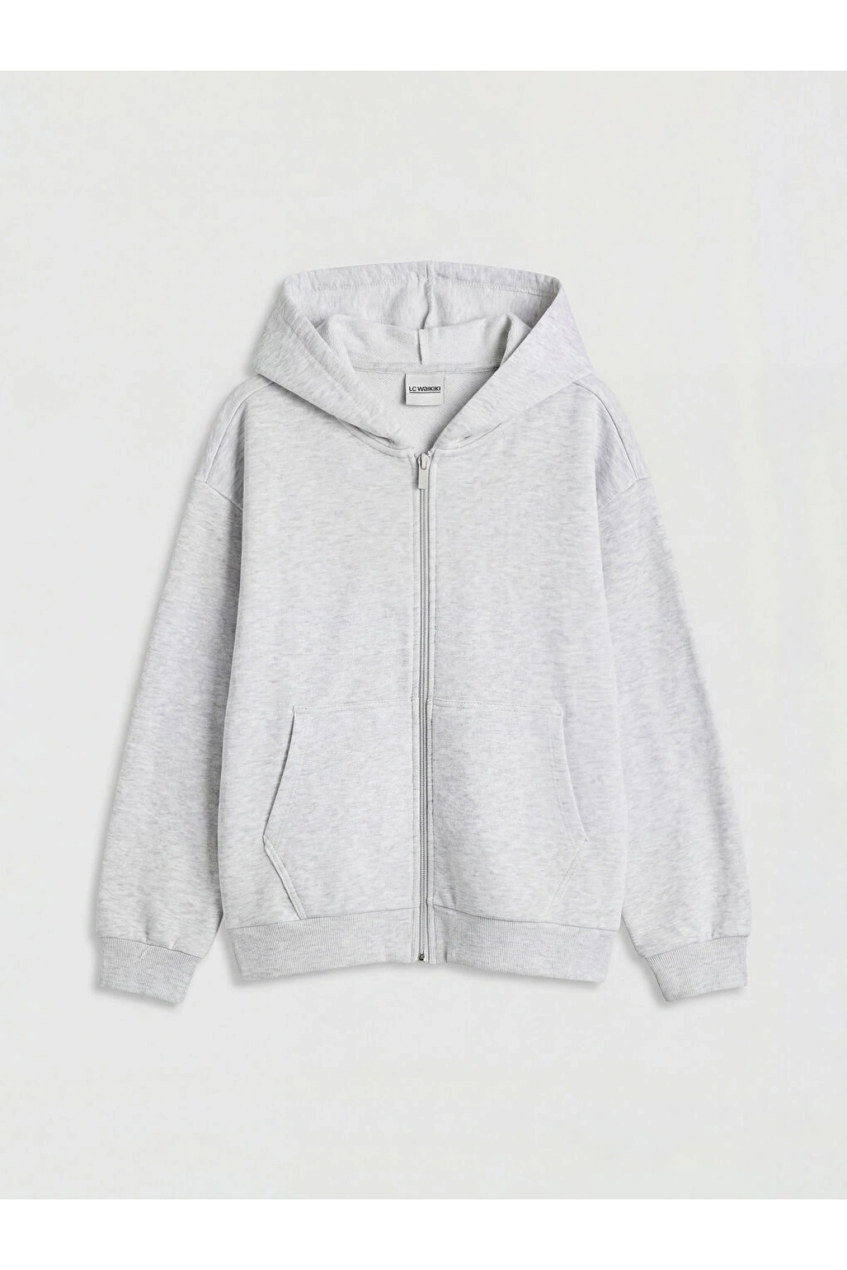 LCW Kids Gri Kapüşonlu Kalın Kız Çocuk Fermuarlı Sweatshirt