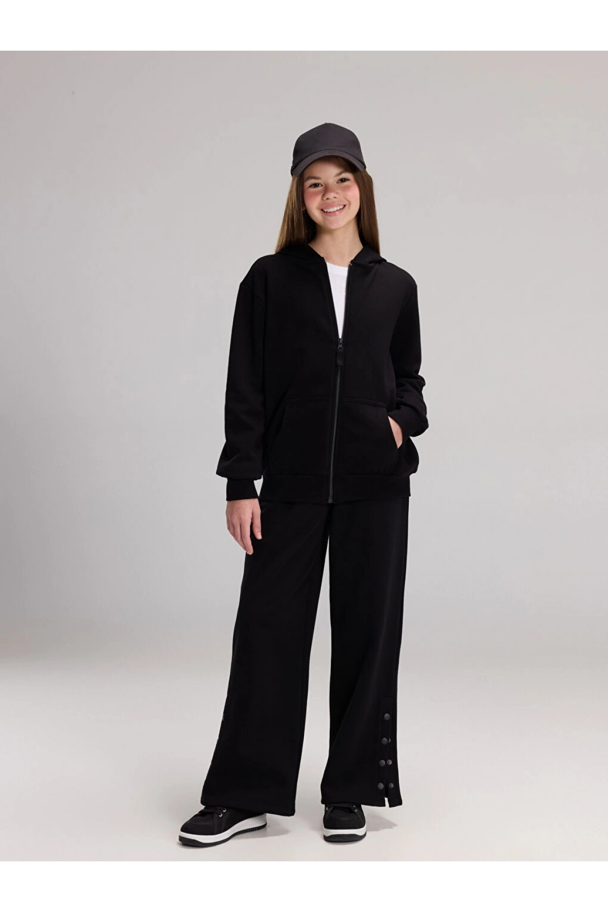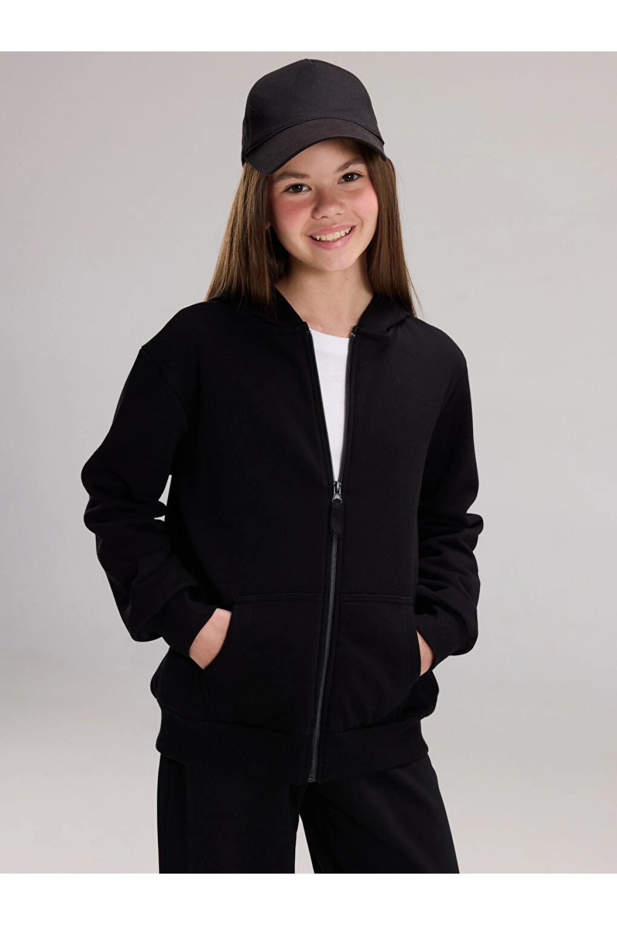 LCW Kids Siyah Uzun Kollu Kız Çocuk Fermuarlı Sweatshirt