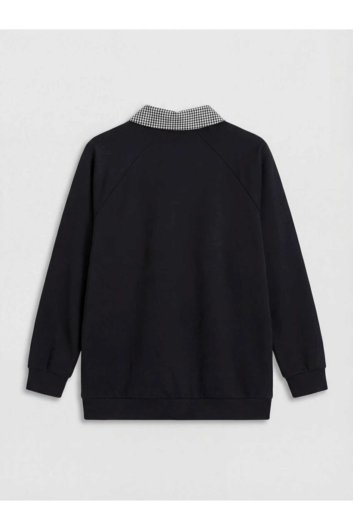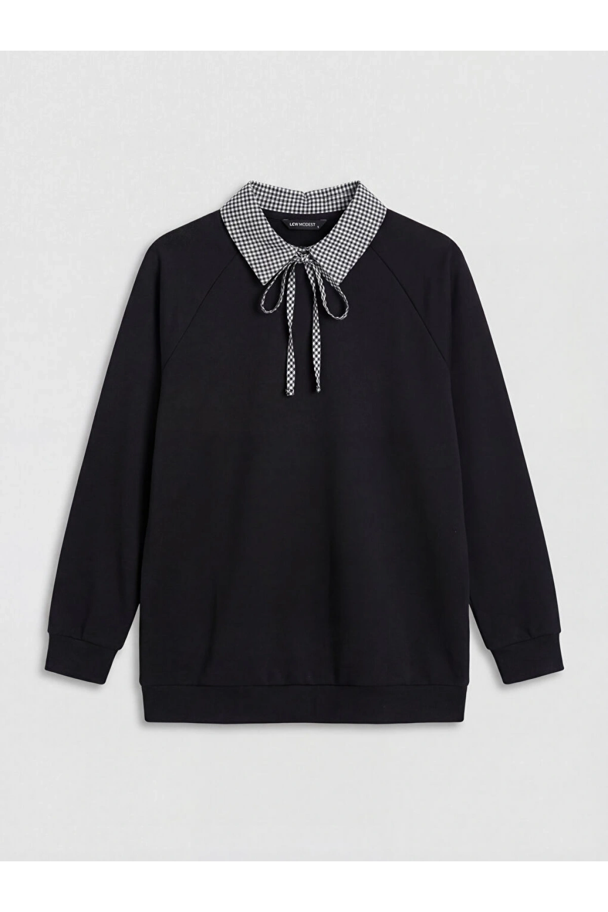 LCW Modest Siyah Gömlek Yaka Ekose Kadın Sweatshir