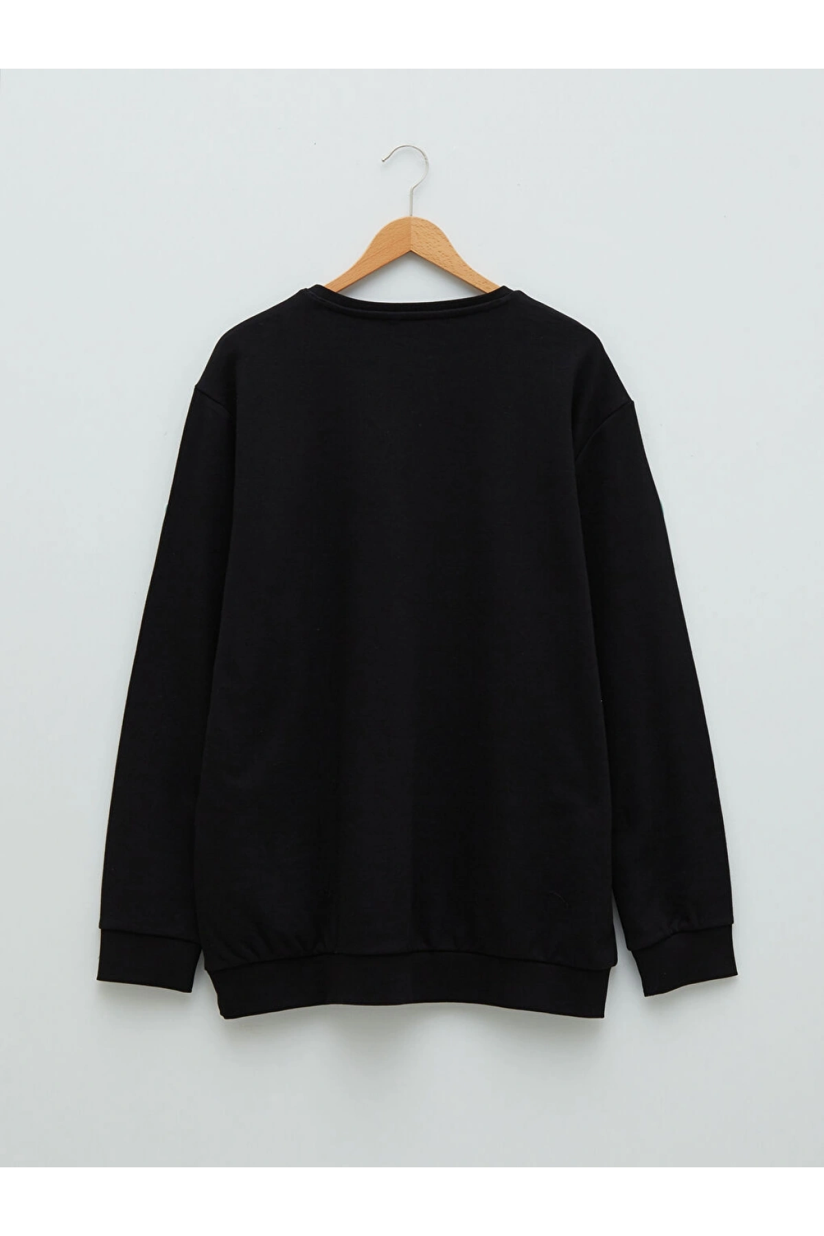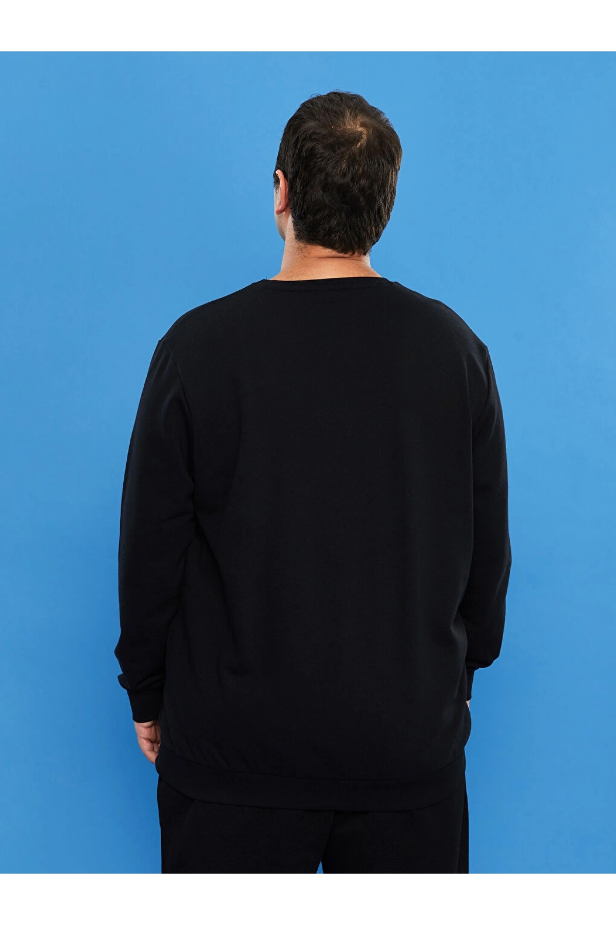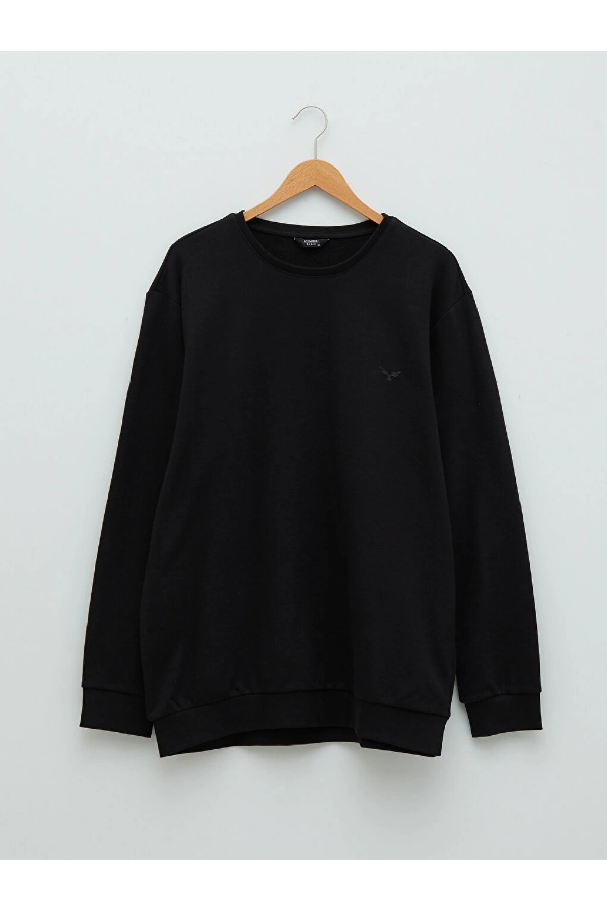 LCWAIKIKI Basic Siyah Büyük Beden Bisiklet Yaka Uzun Kollu Basic Erkek Sweatshirt
