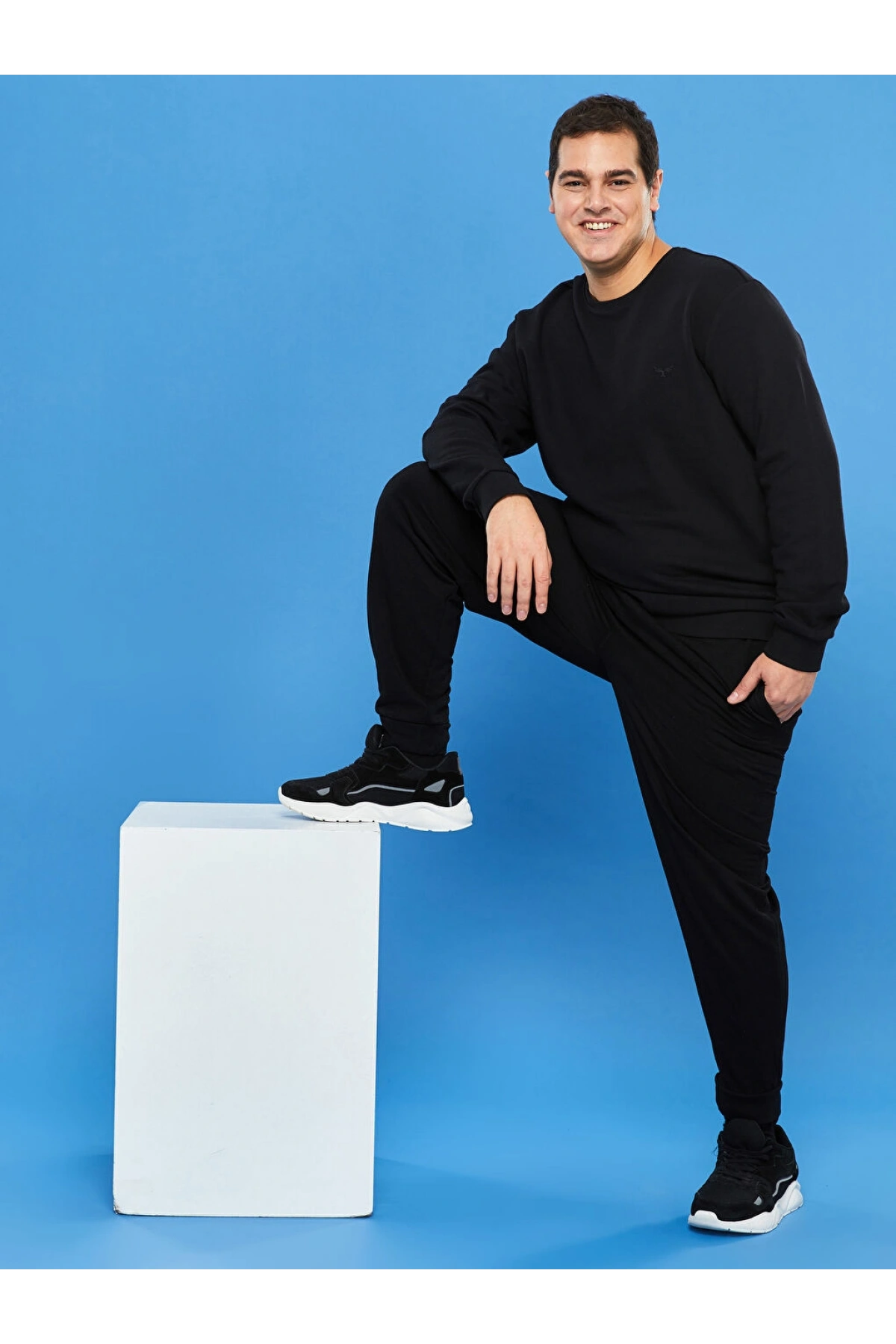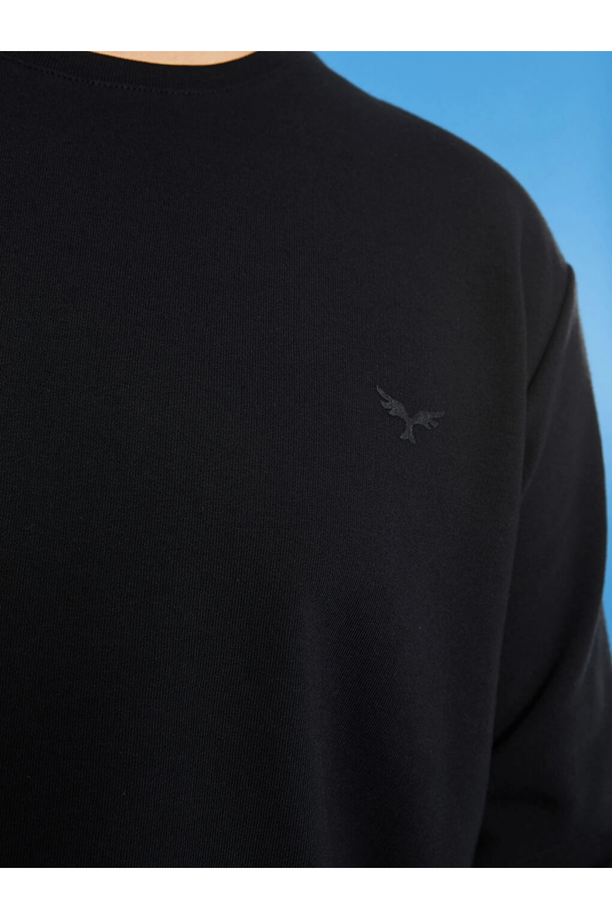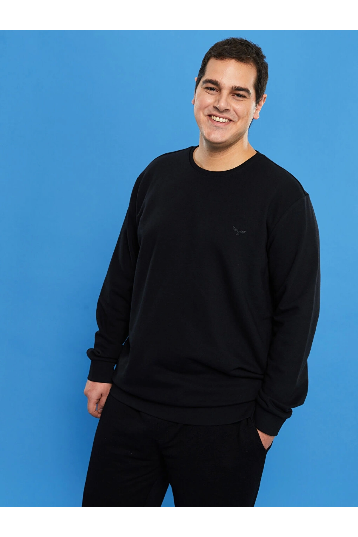 LCWAIKIKI Basic Siyah Büyük Beden Bisiklet Yaka Uzun Kollu Basic Erkek Sweatshirt