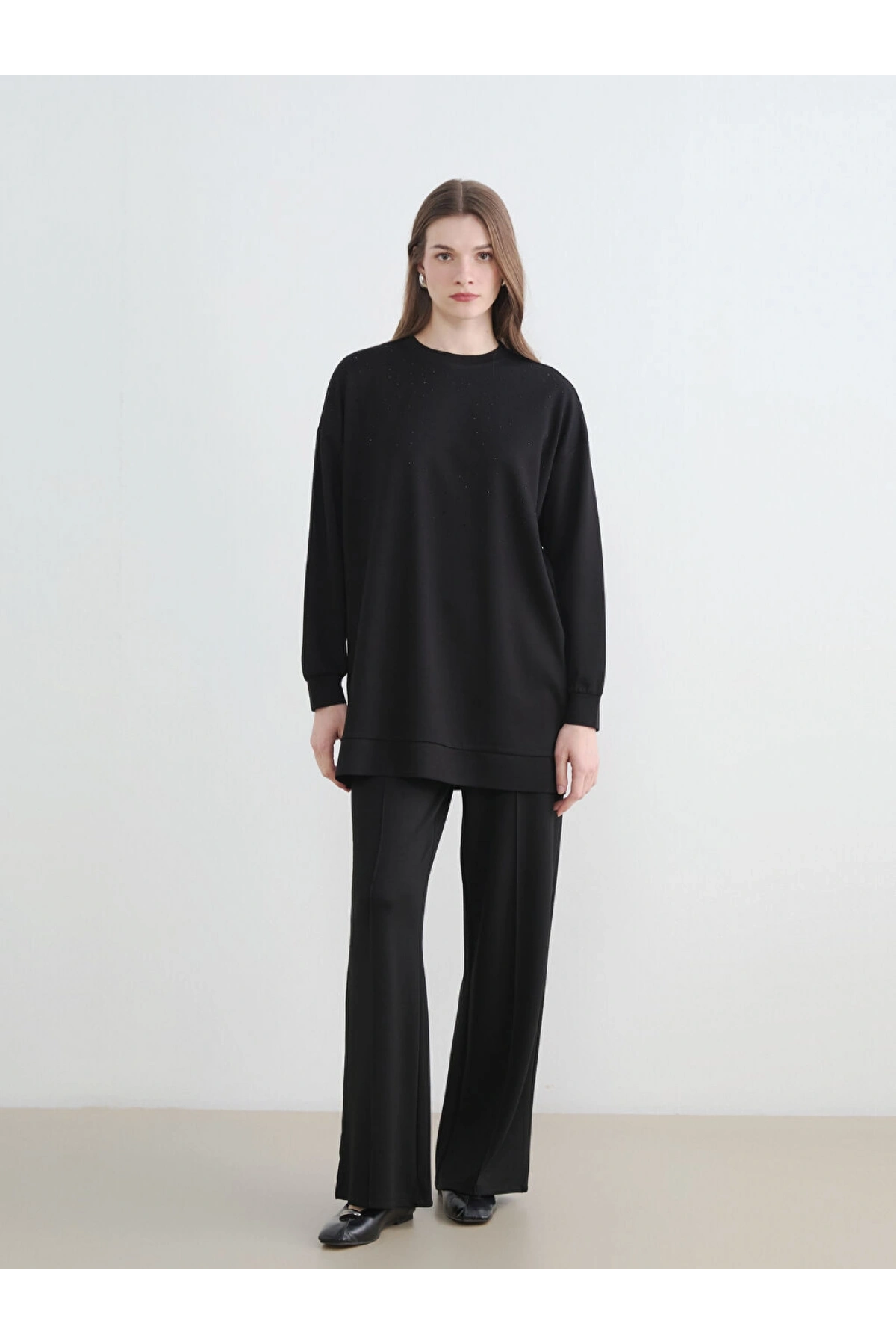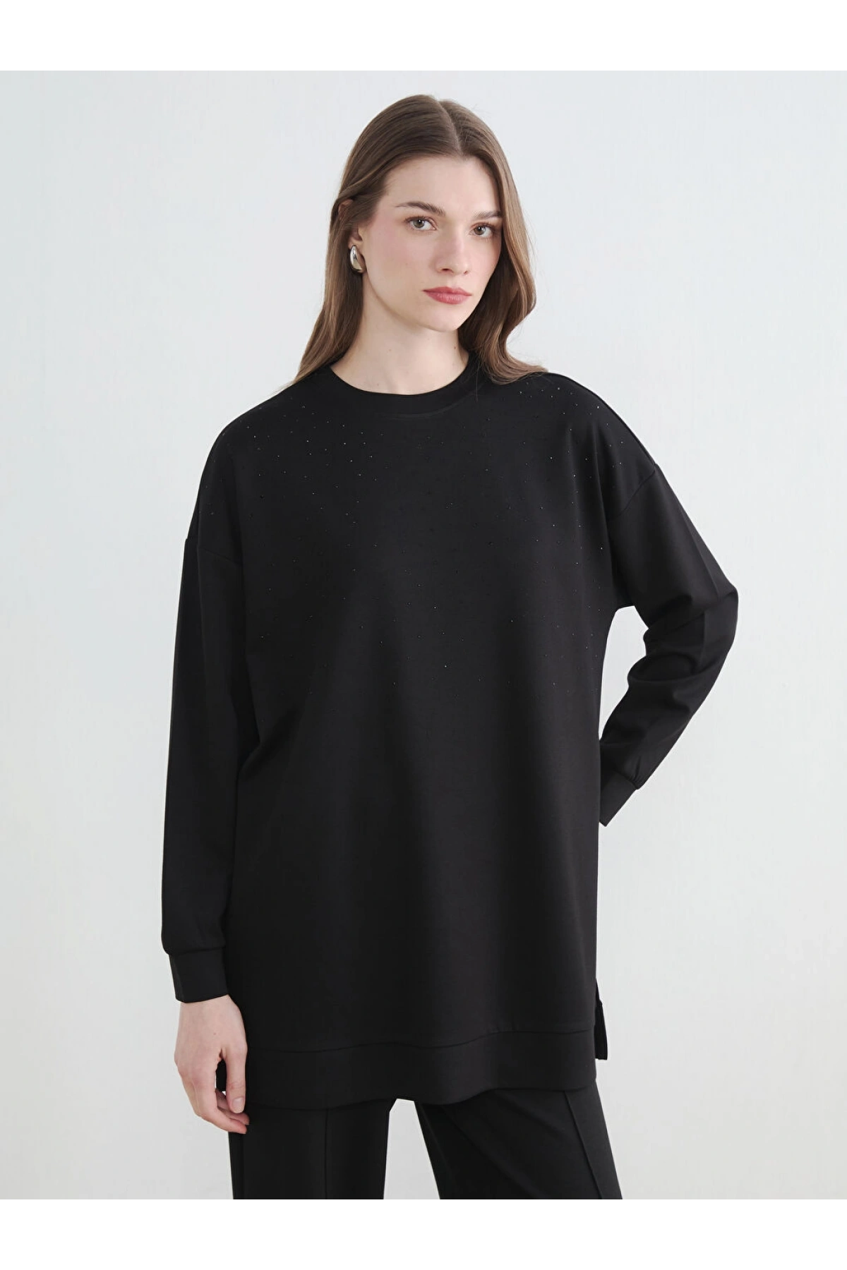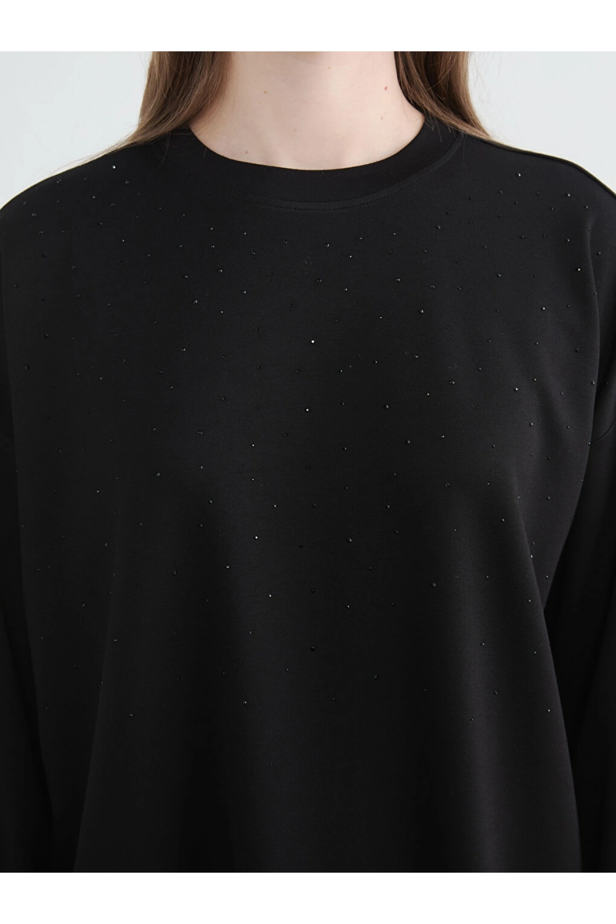 LCW Modest Siyah Bisiklet Yaka Kadın Sweatshirt Tunik