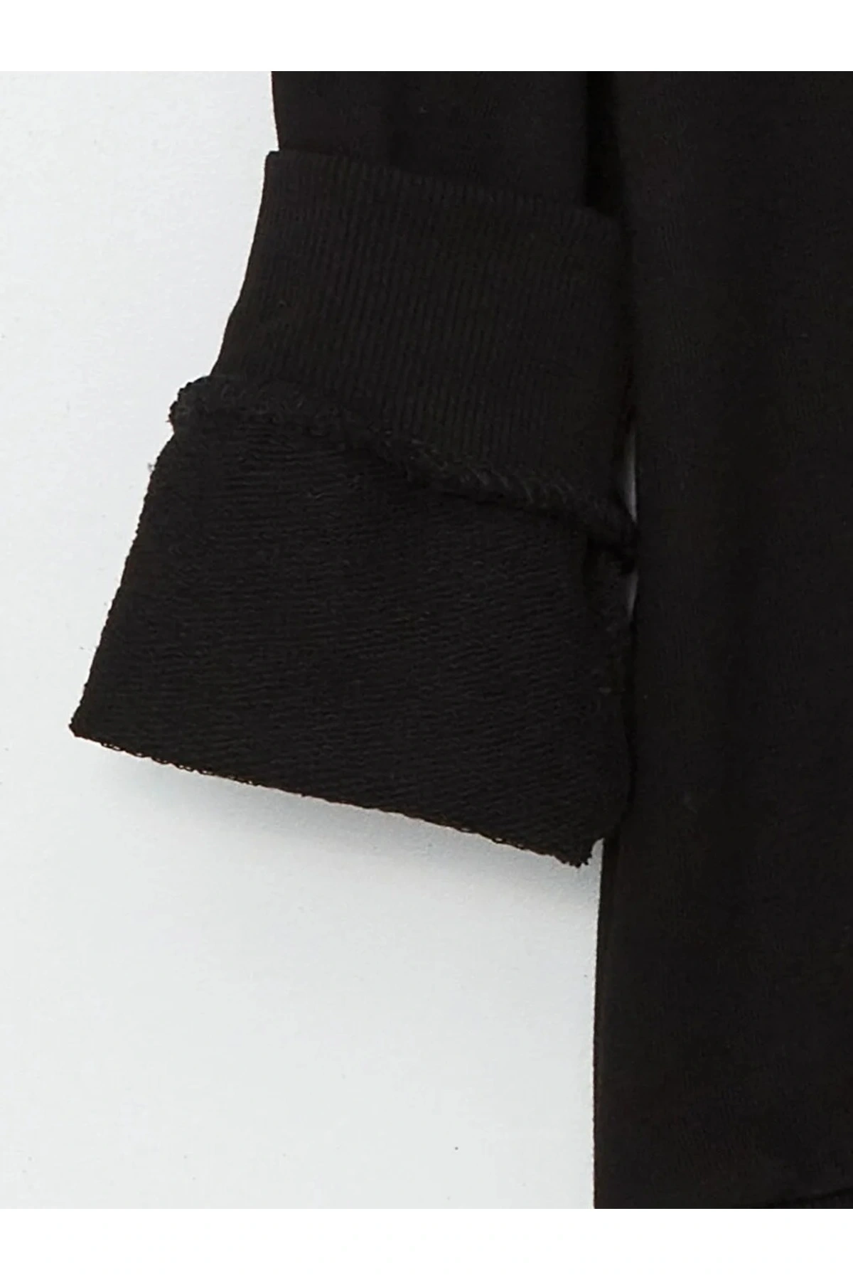 LCW Kids Siyah Bisiklet Yaka Kız Çocuk Kalın Sweatshirt